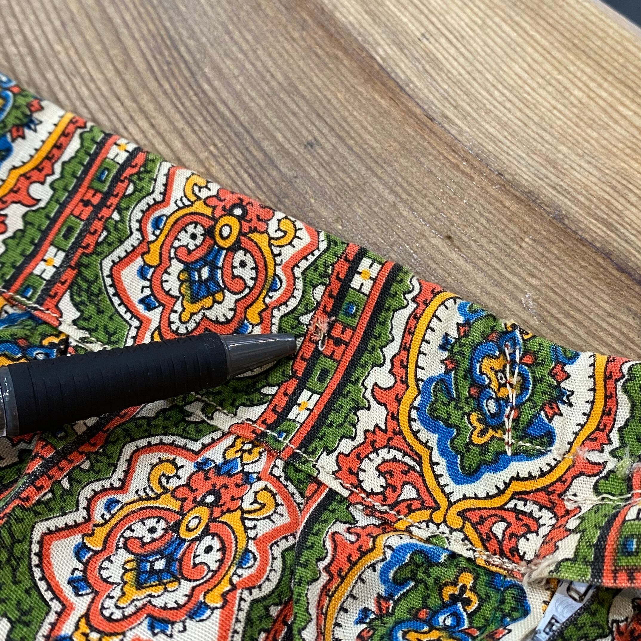 またウエストに軽いダメージやうっすらとしたシミが見受けられますが、柄に紛れてあまり目立ちません。