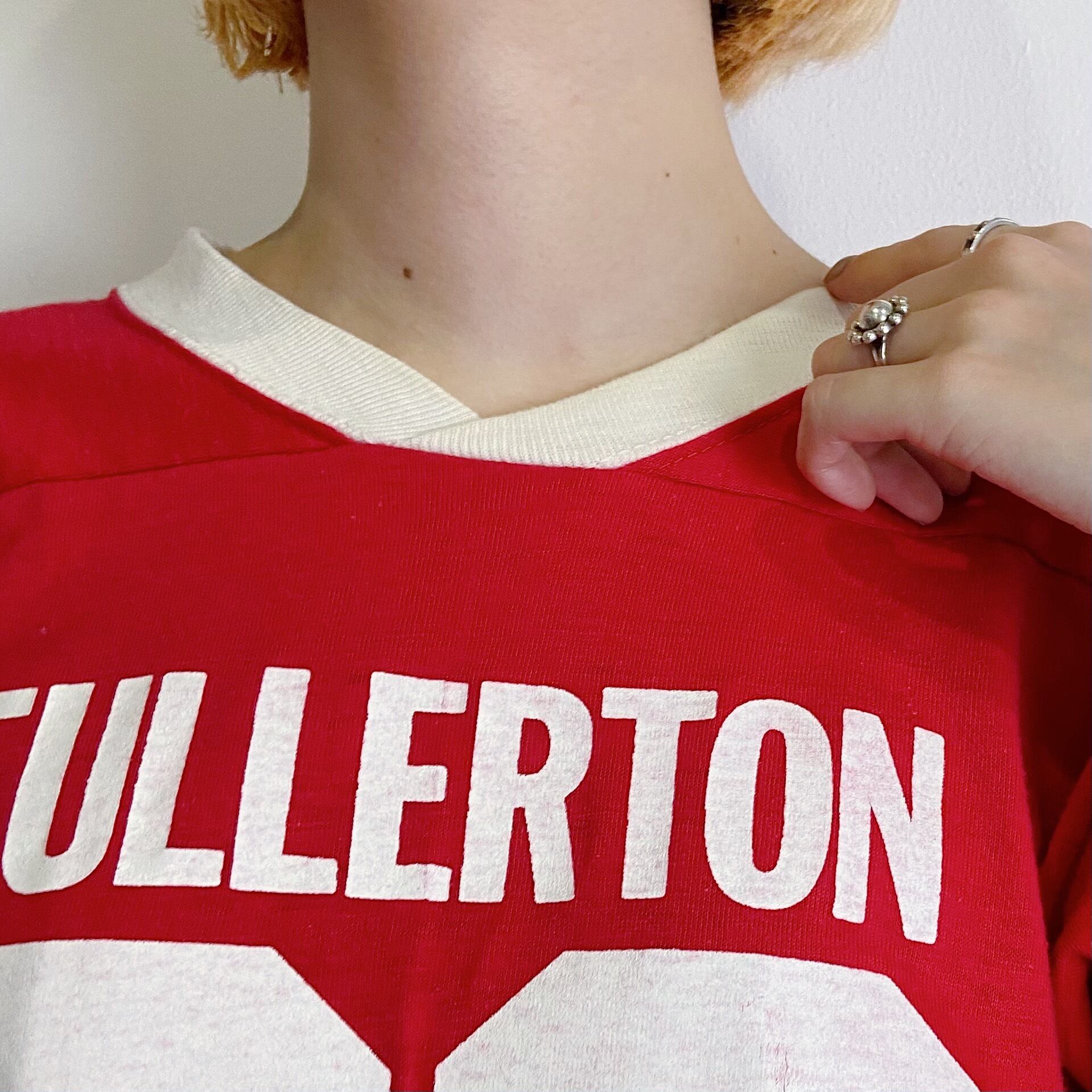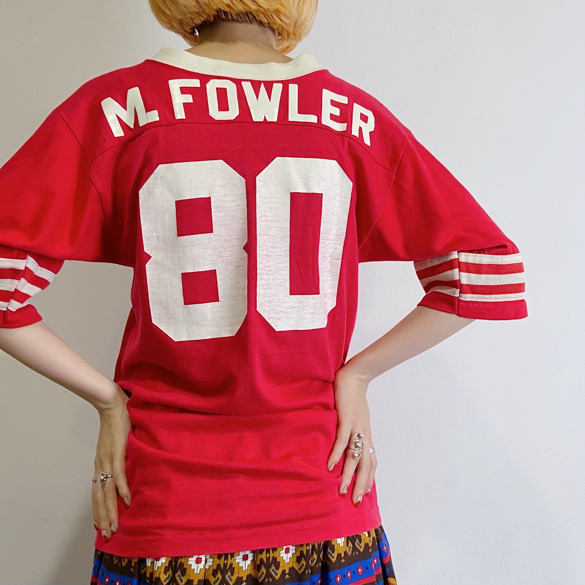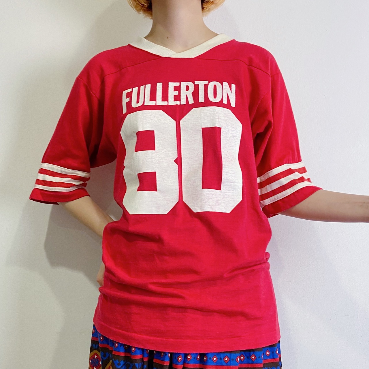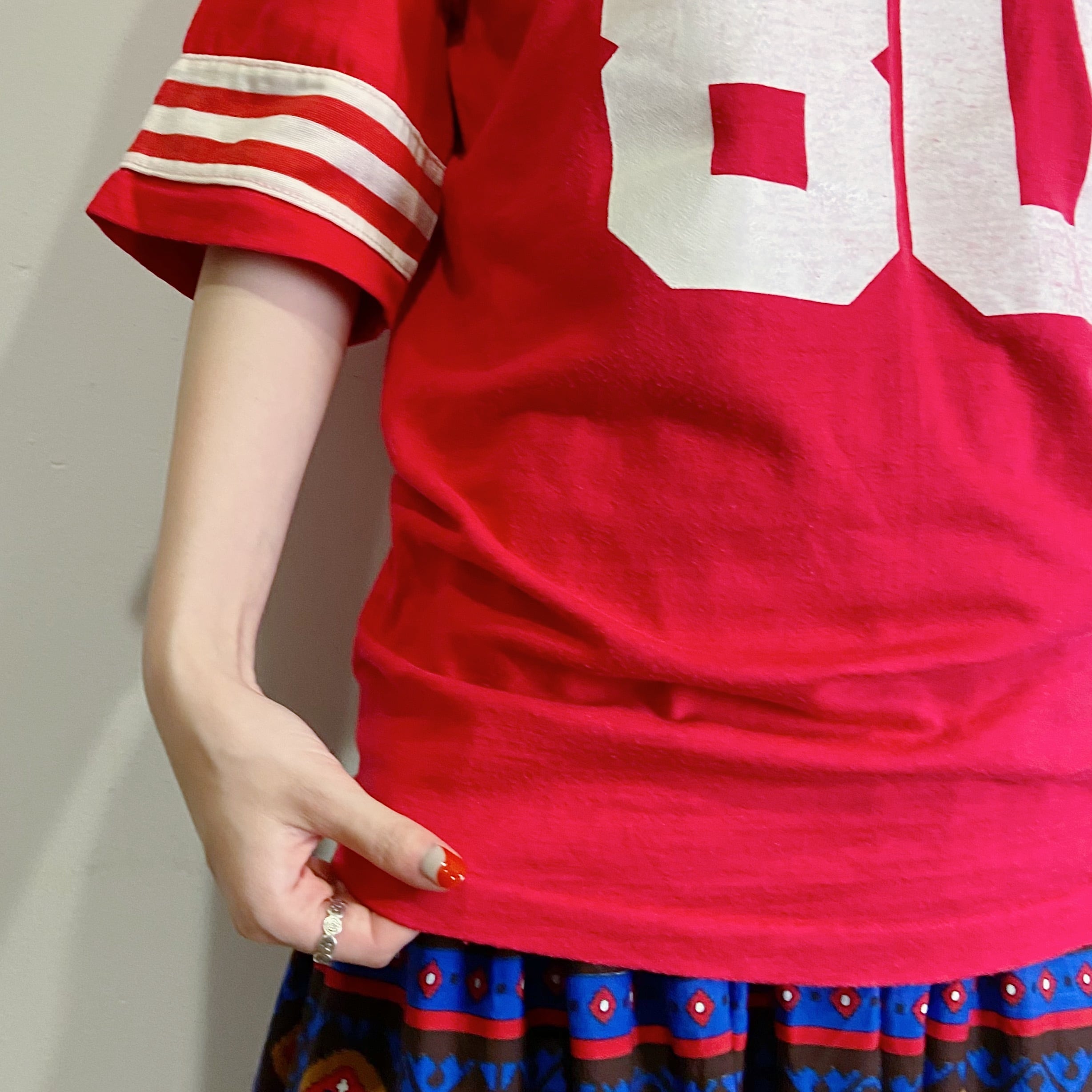 赤に白のナンバリングが可愛い80年代頃のTシャツです。