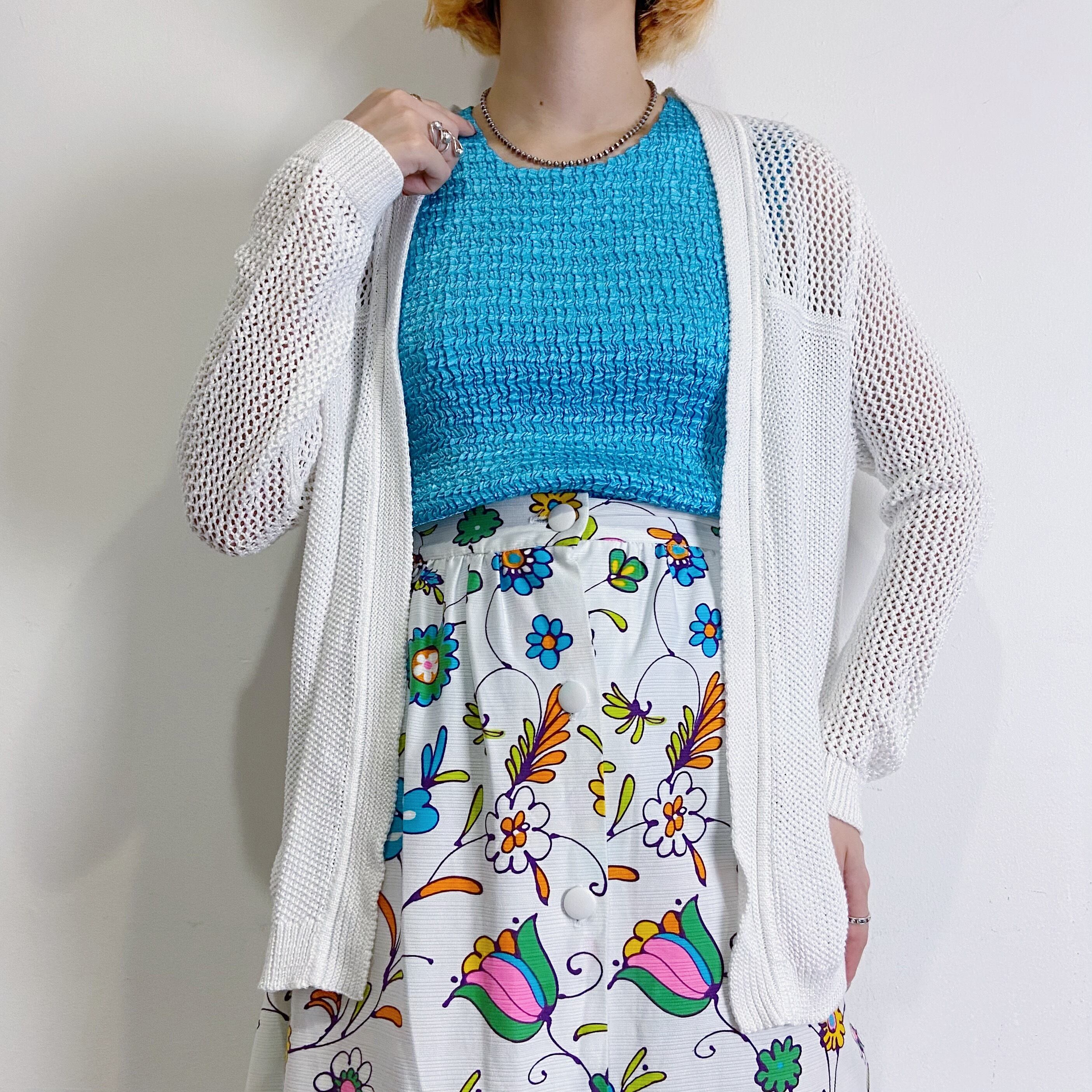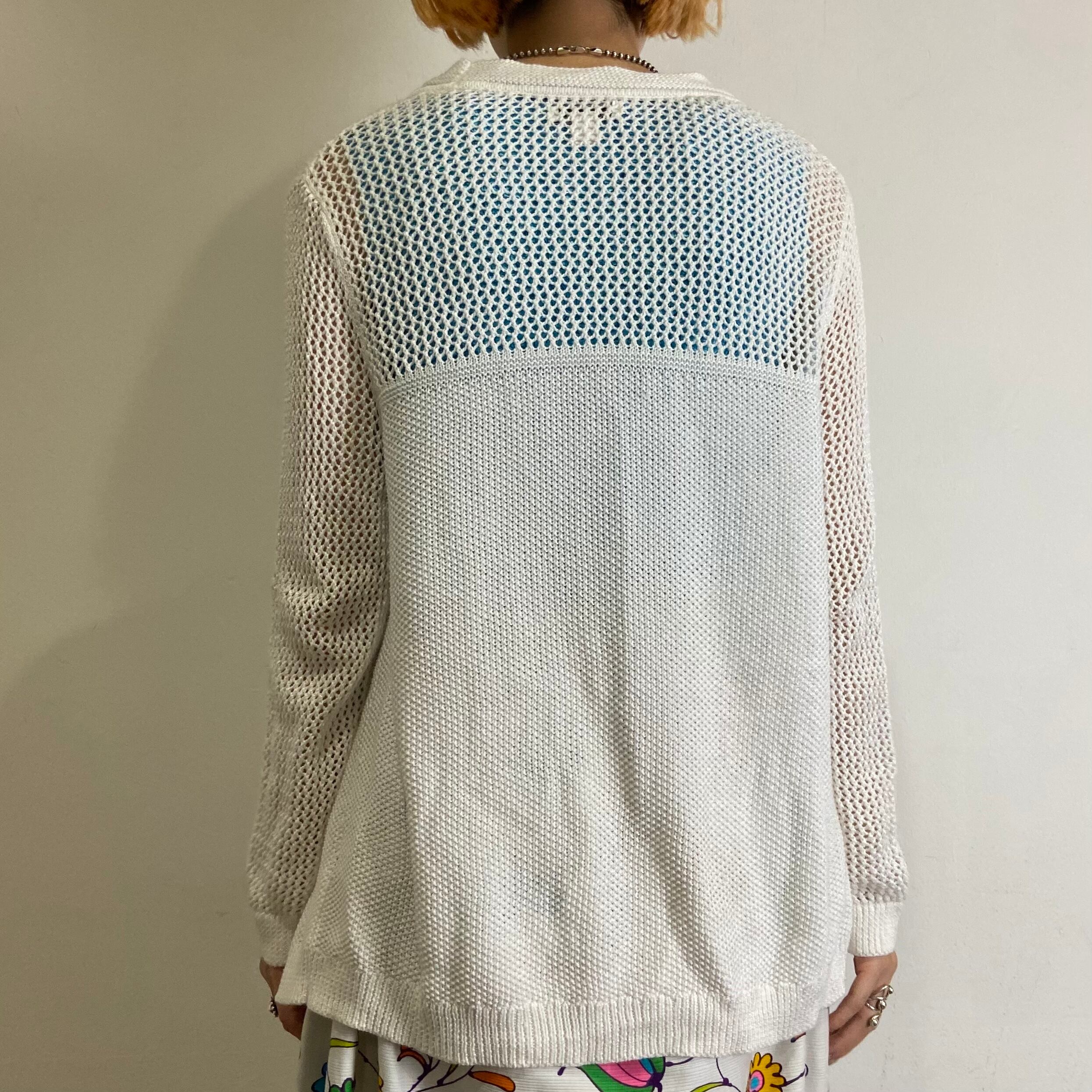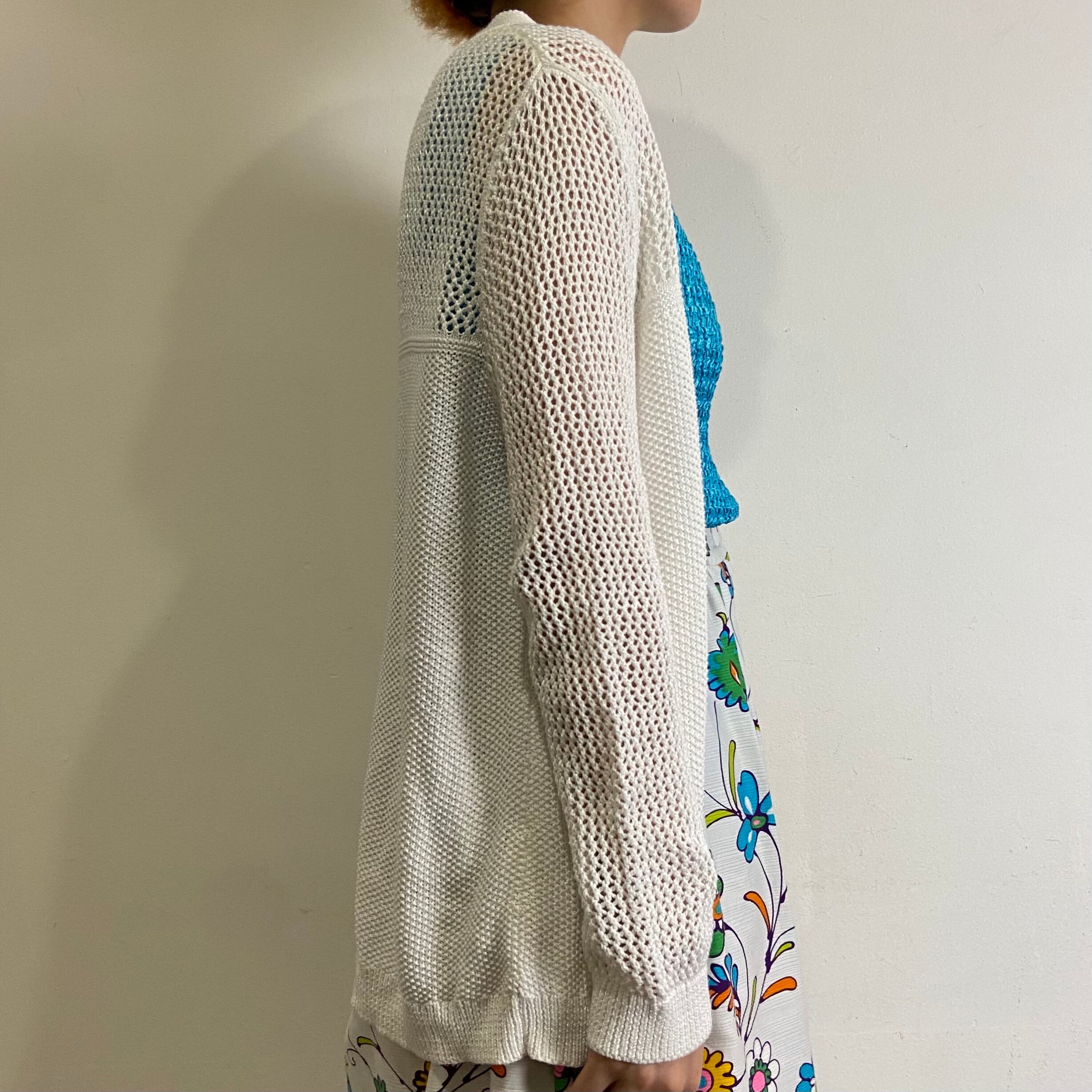 春夏の軽い羽織にぴったりな、涼やかなメッシュニットカーディガンです。