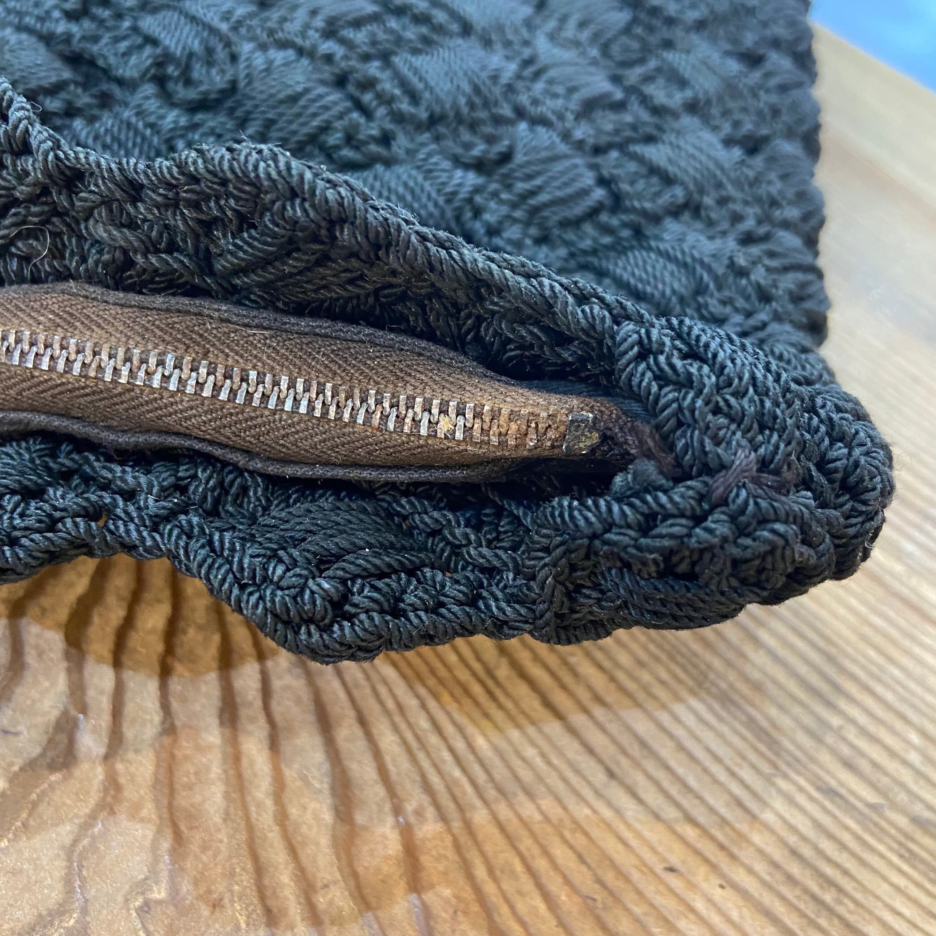 ブラックカラーで使いやすい、40年代の手編みのクロシェバッグです。
