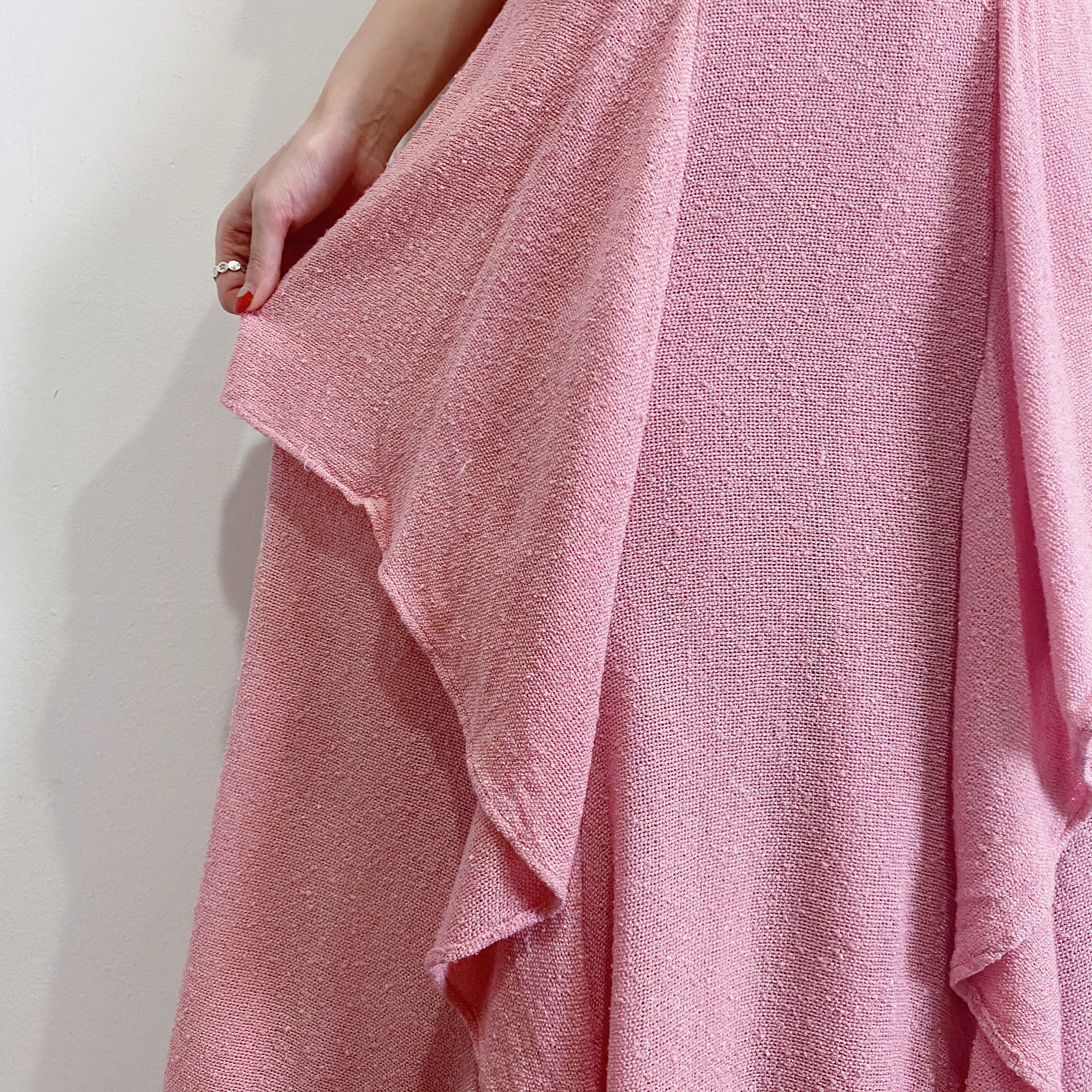 いわゆるネップ風の素材感になっており、ドレープのようになったお袖やスカートのデザインとマッチしています。
