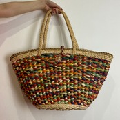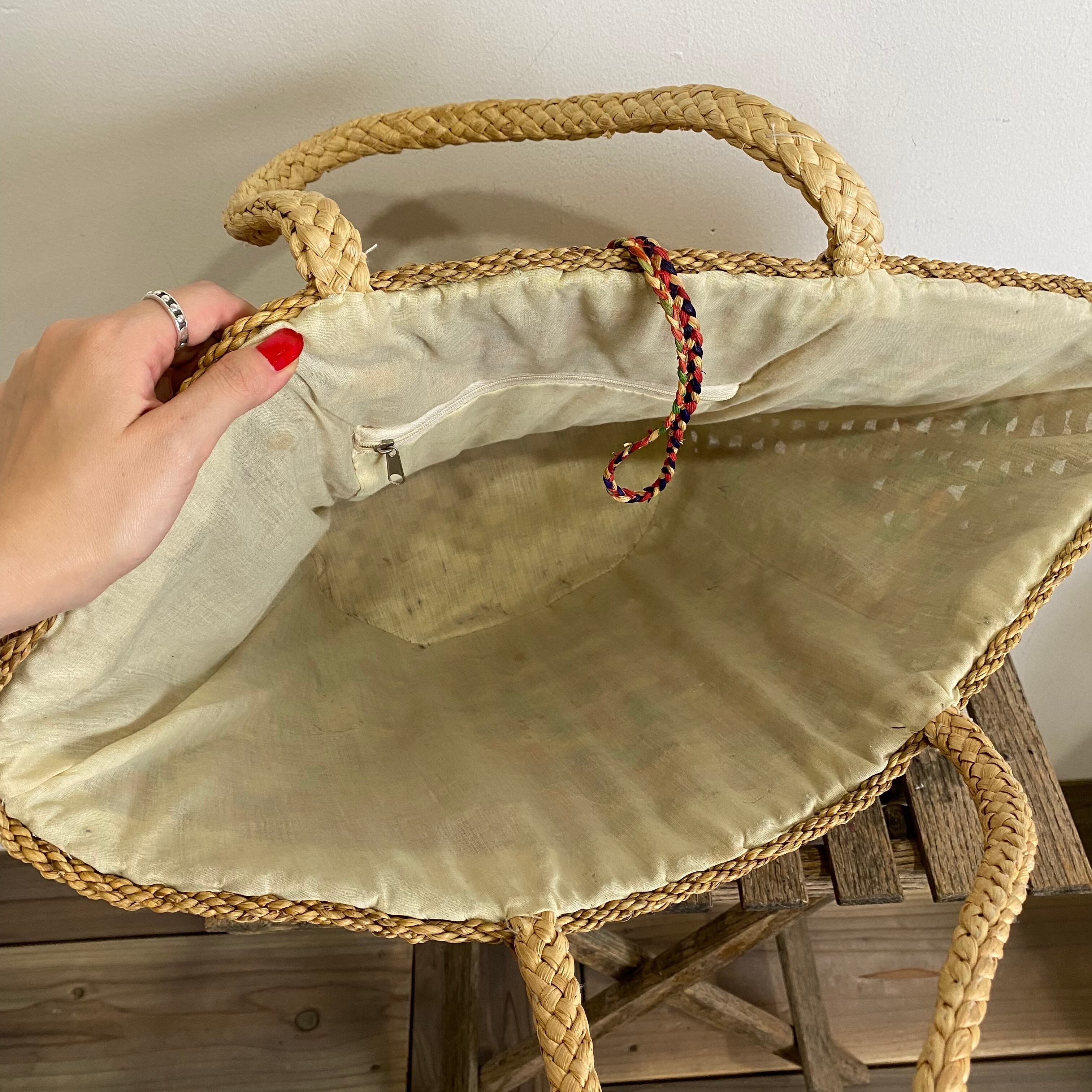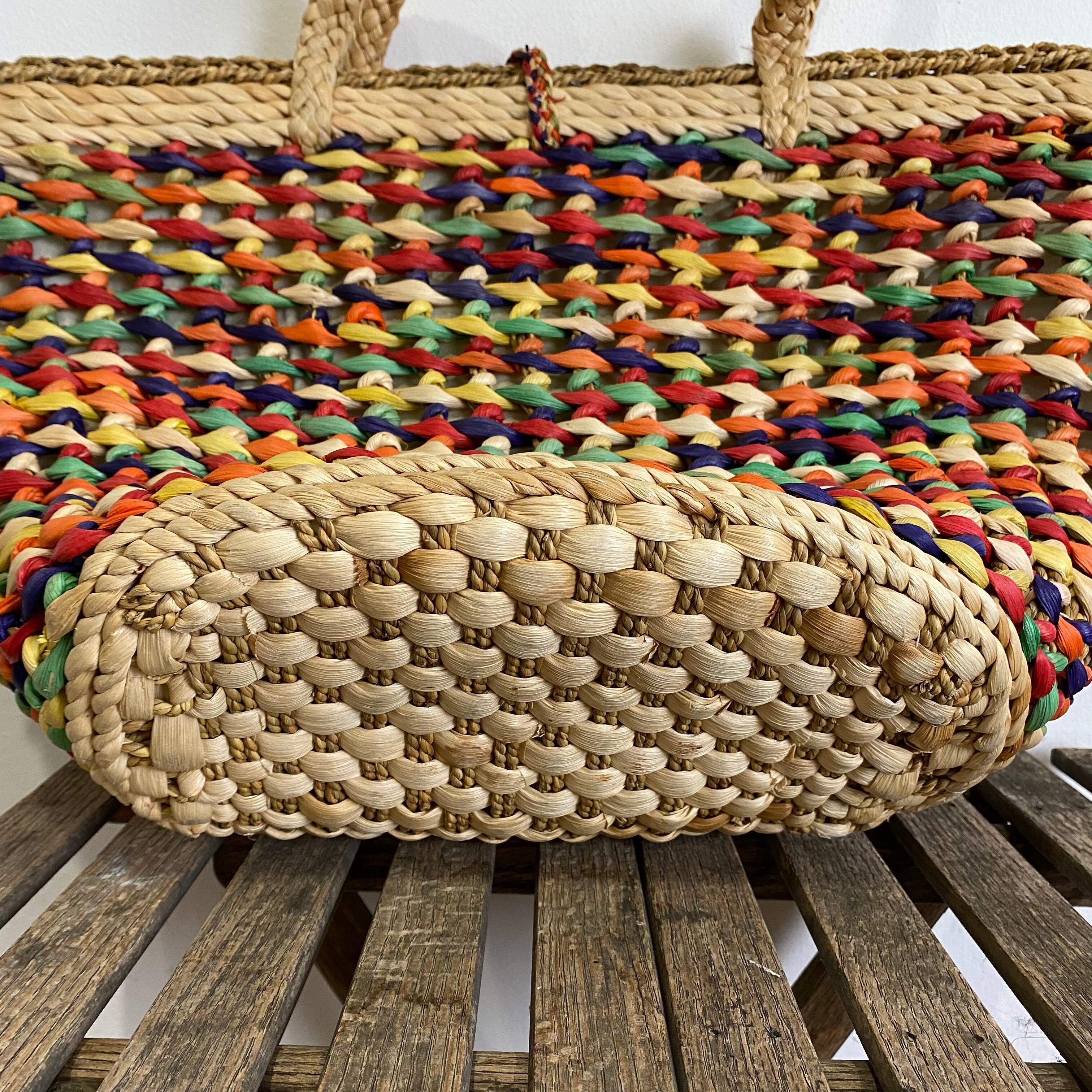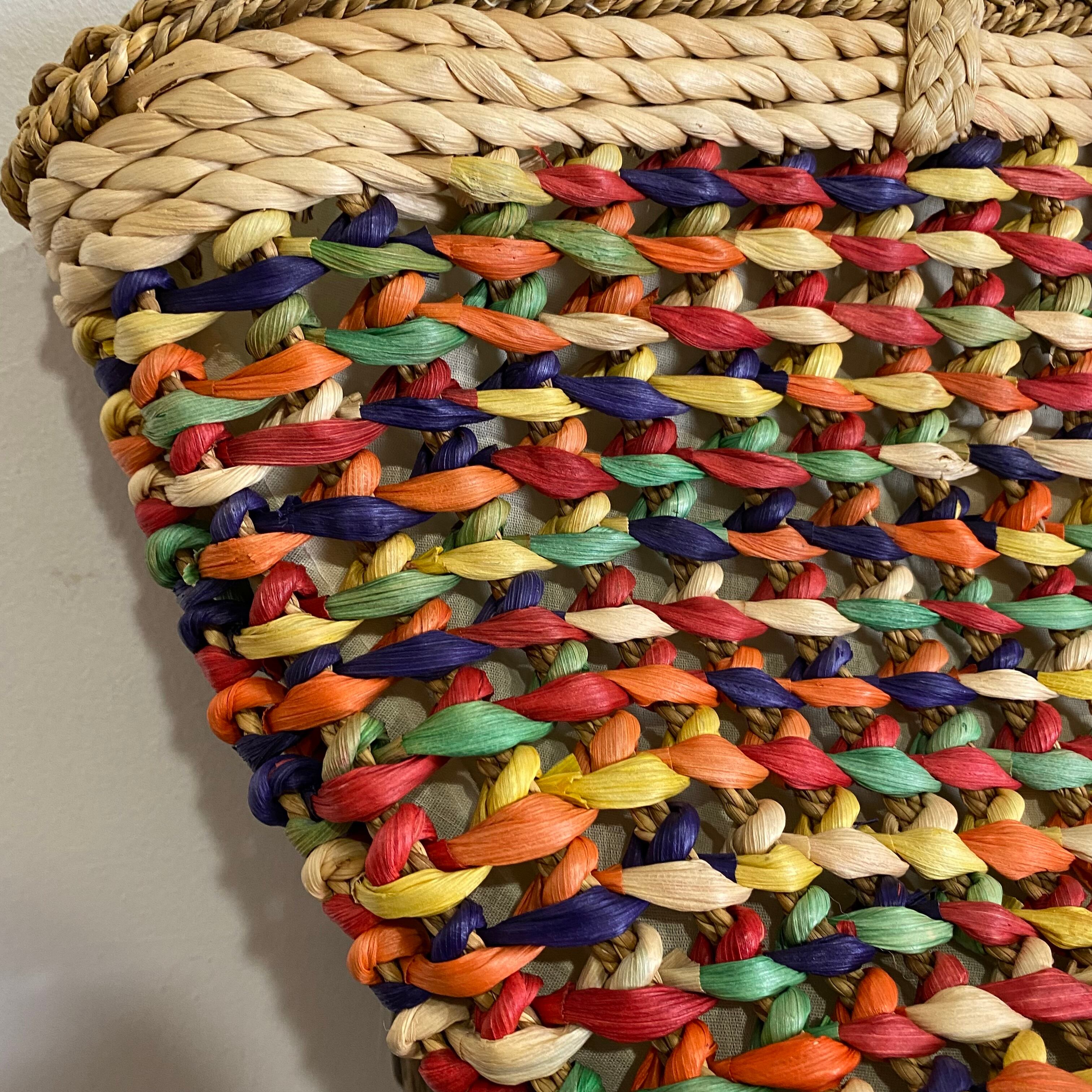 レインボーカラーが可愛い、70年代頃のストローバッグです。