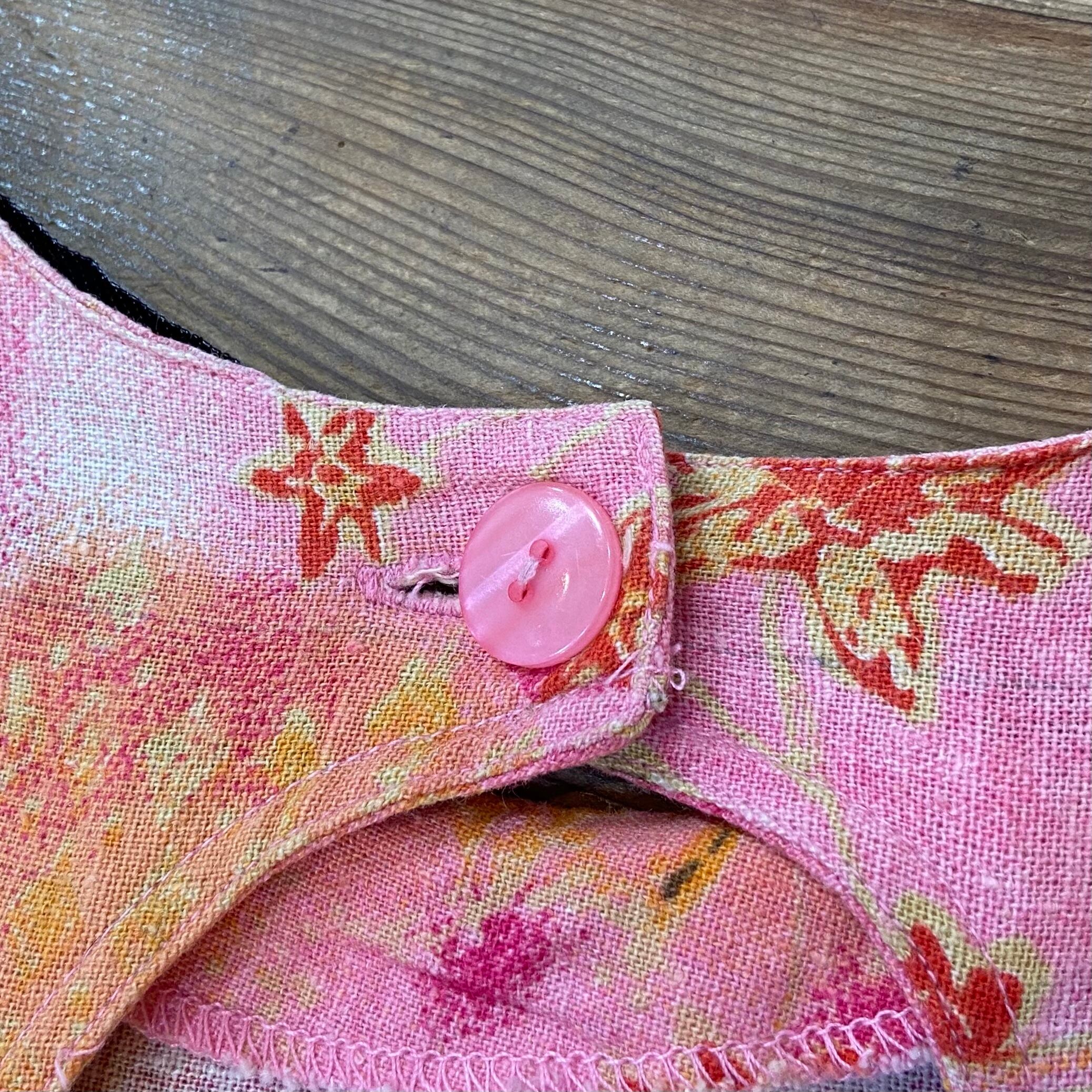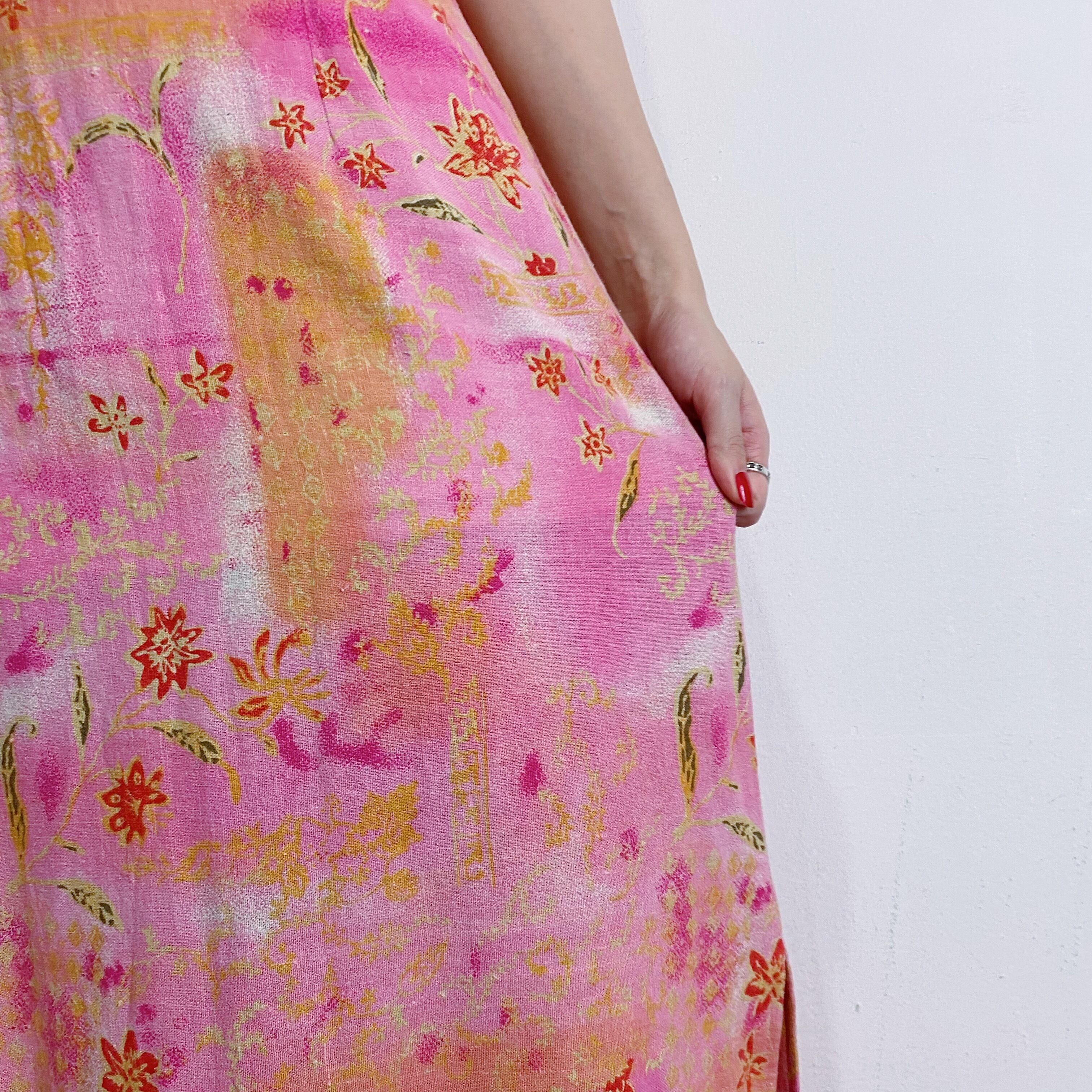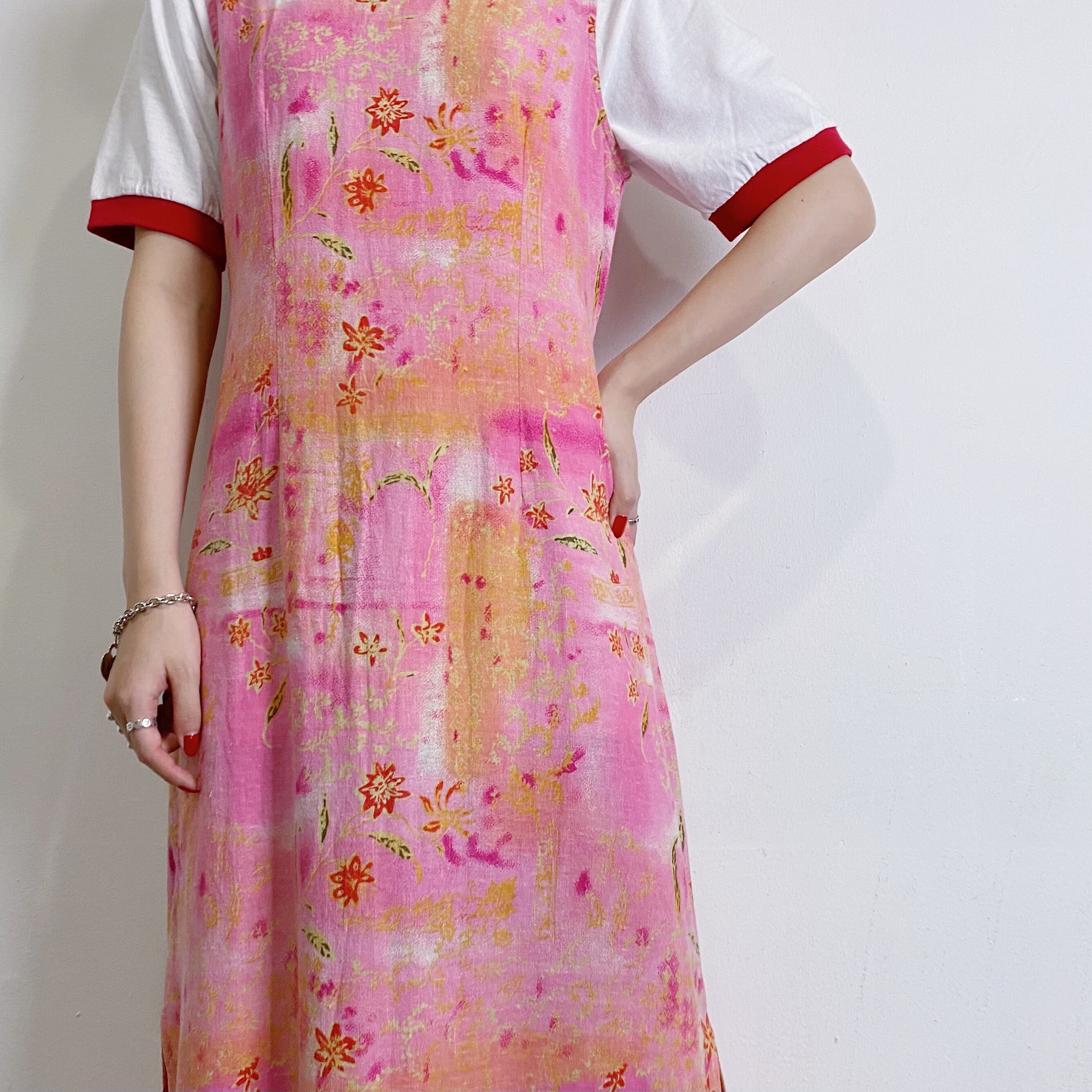 少しオリエンタルな柄が可愛い一枚で、こっくりピンクとオレンジのカラーリングもキュート。