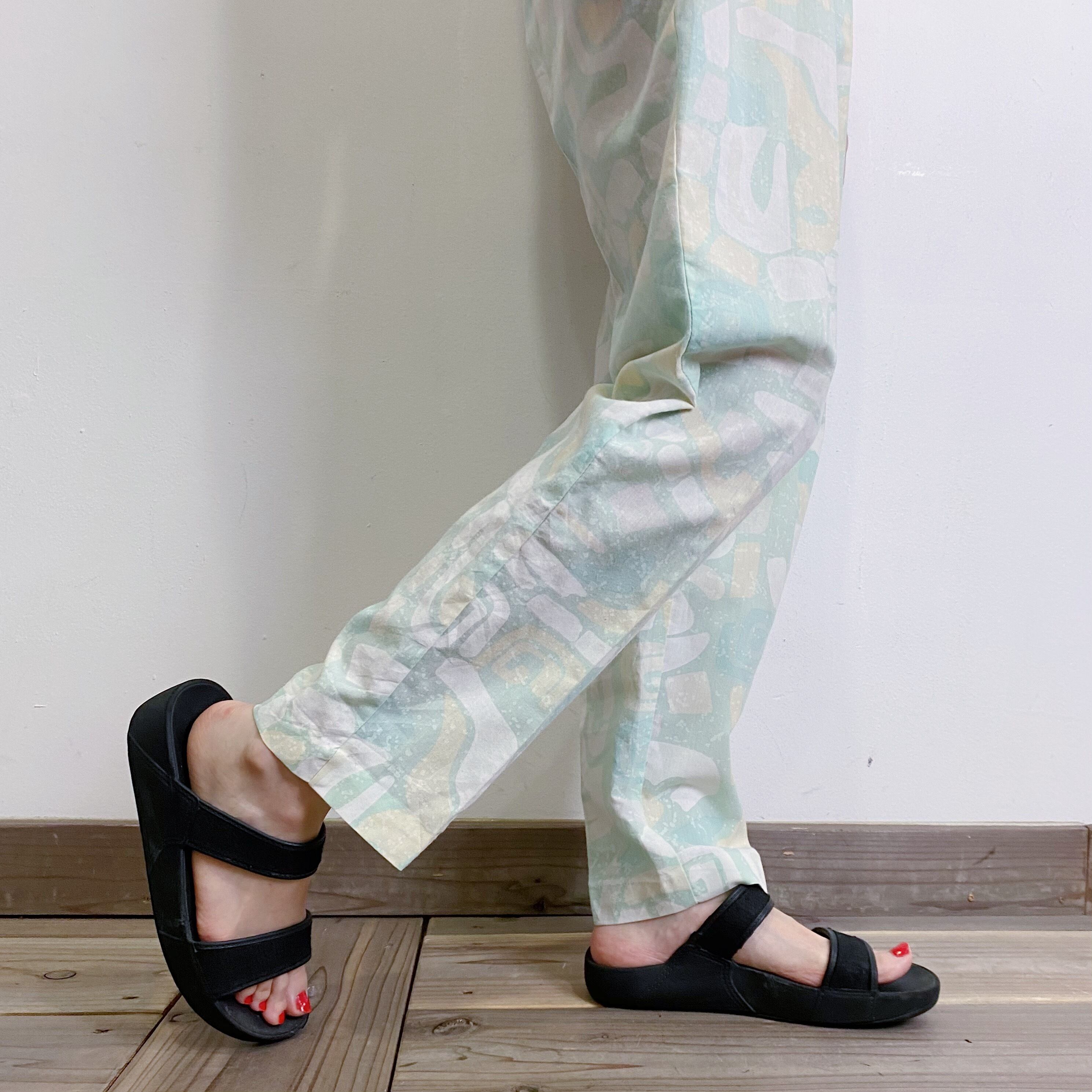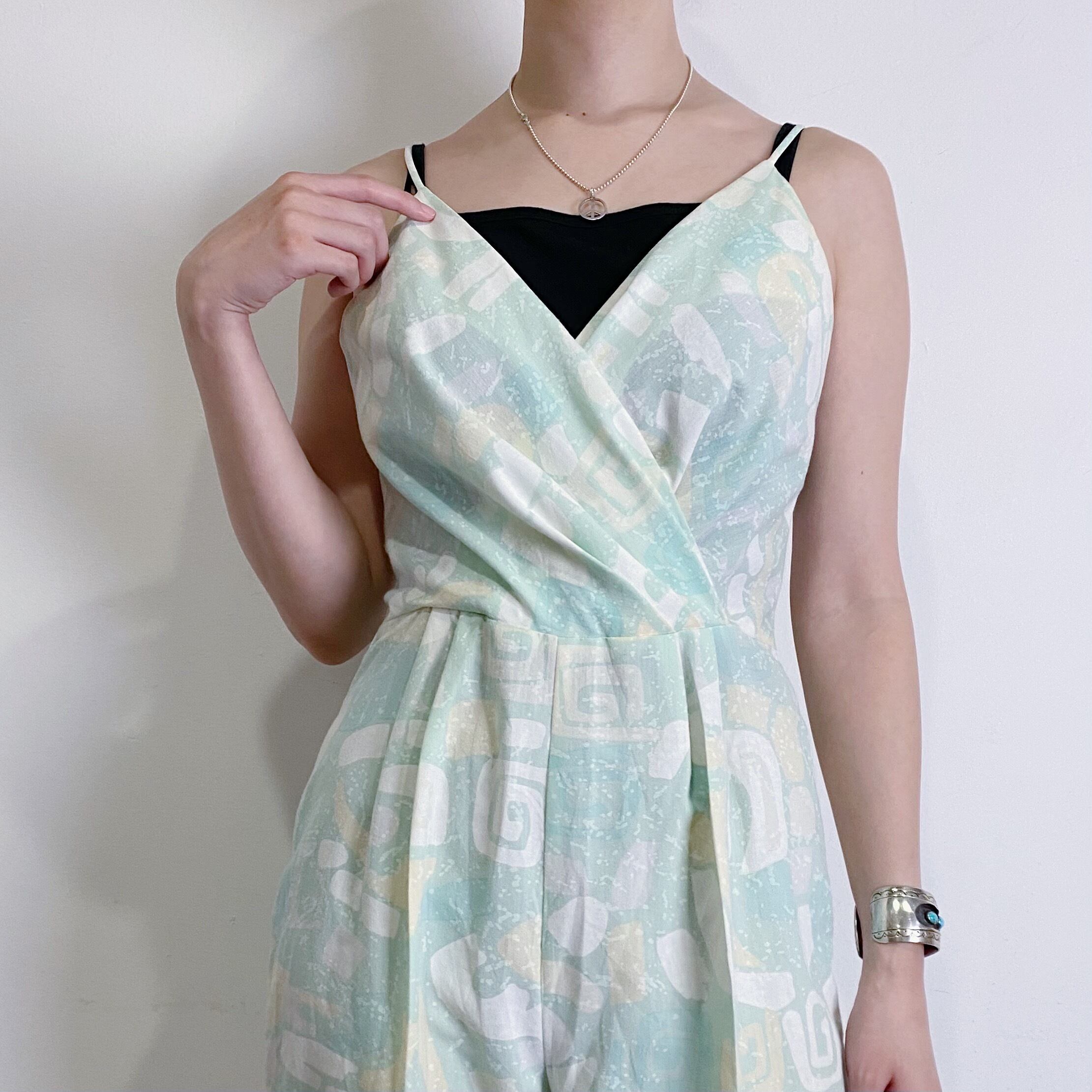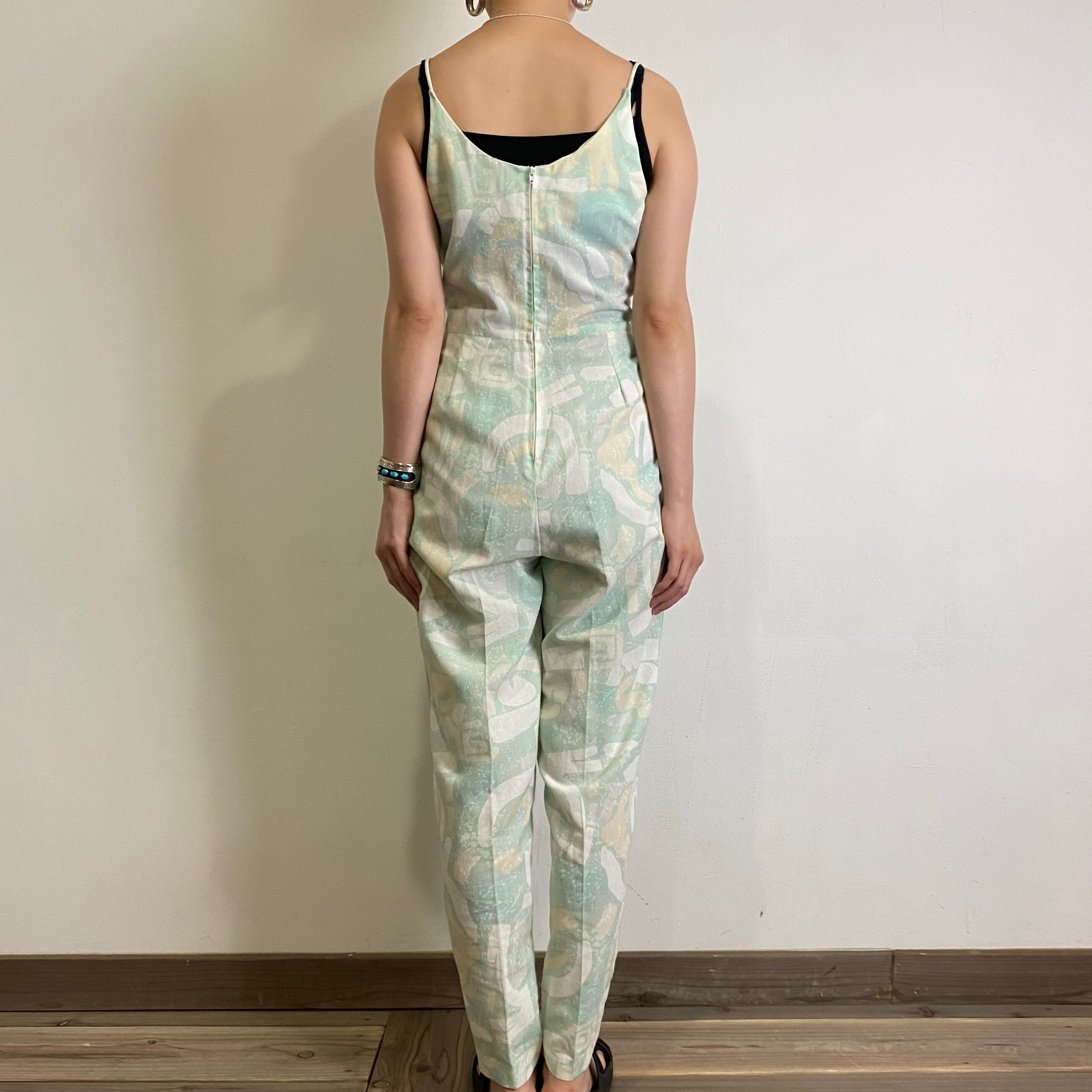 爽やかなグリーンカラーと不思議な柄が可愛い80年代のジャンプスーツです。
