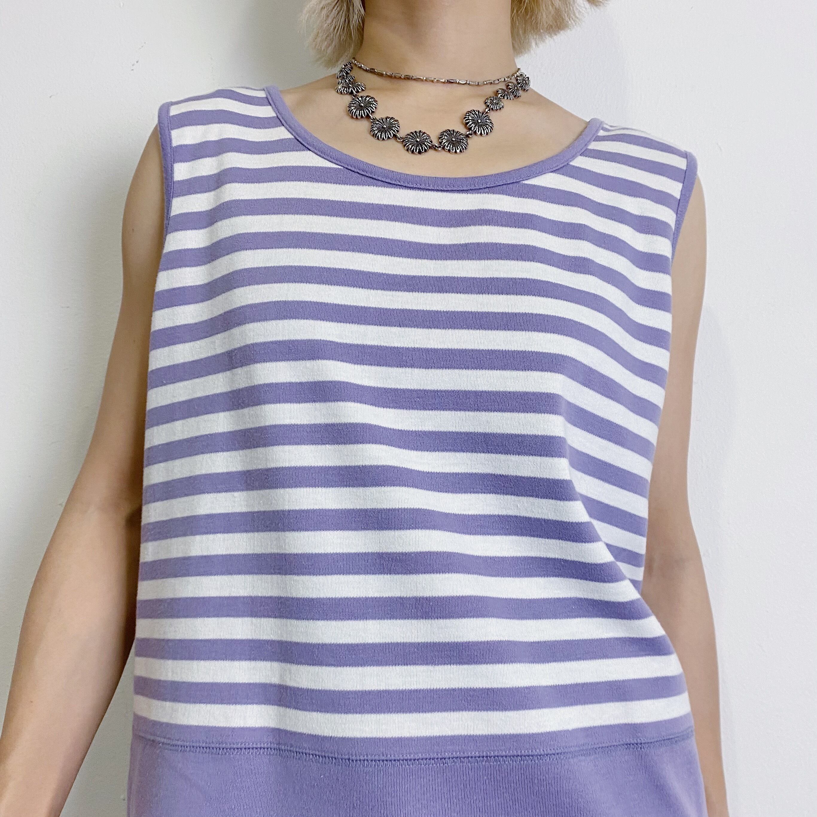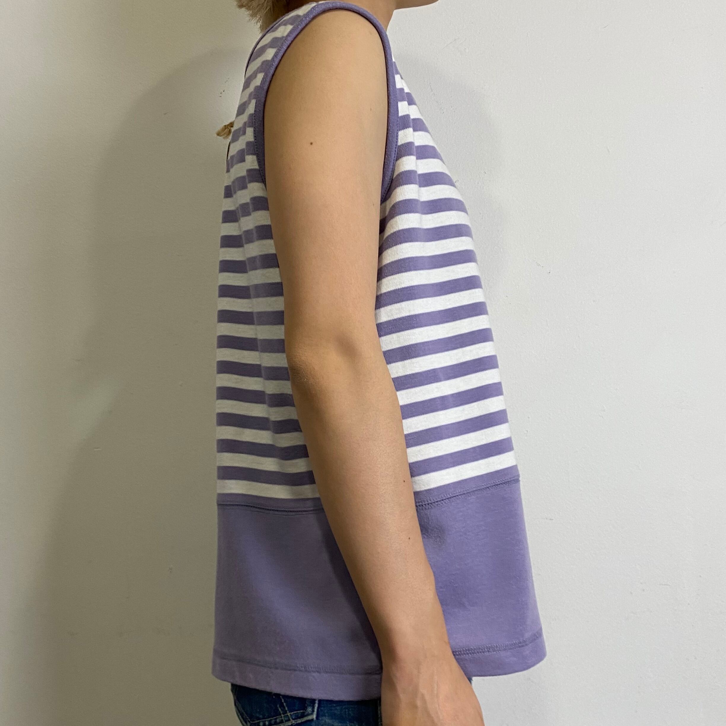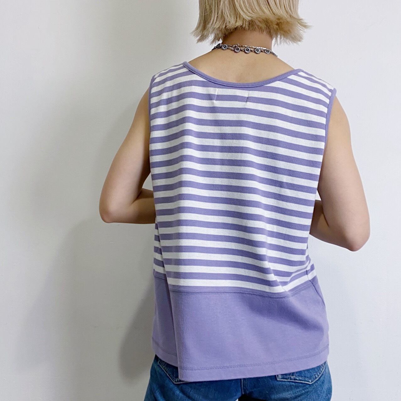 肌触りの良いコットン素材の、ラベンダーカラーが可愛いノースリーブトップスです。