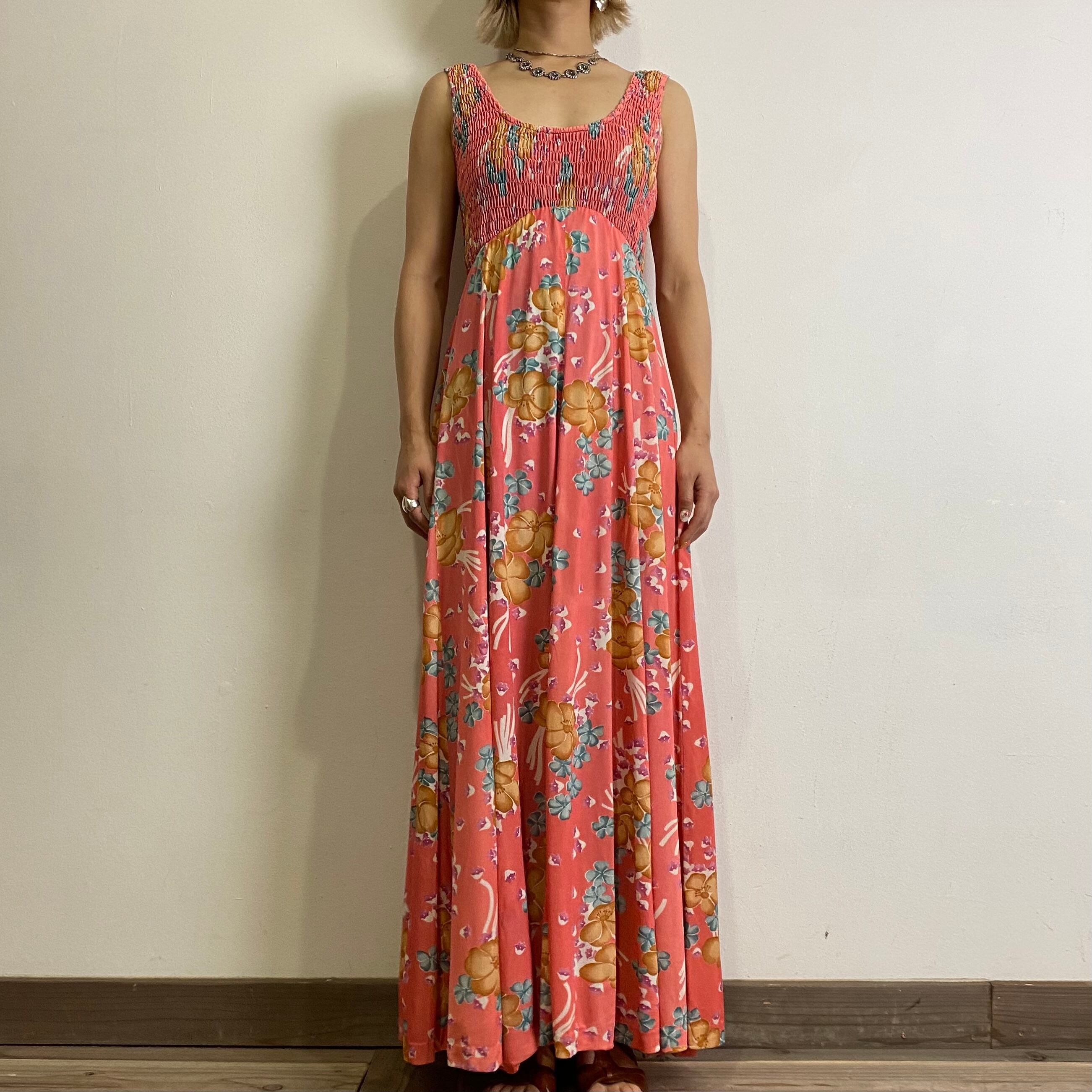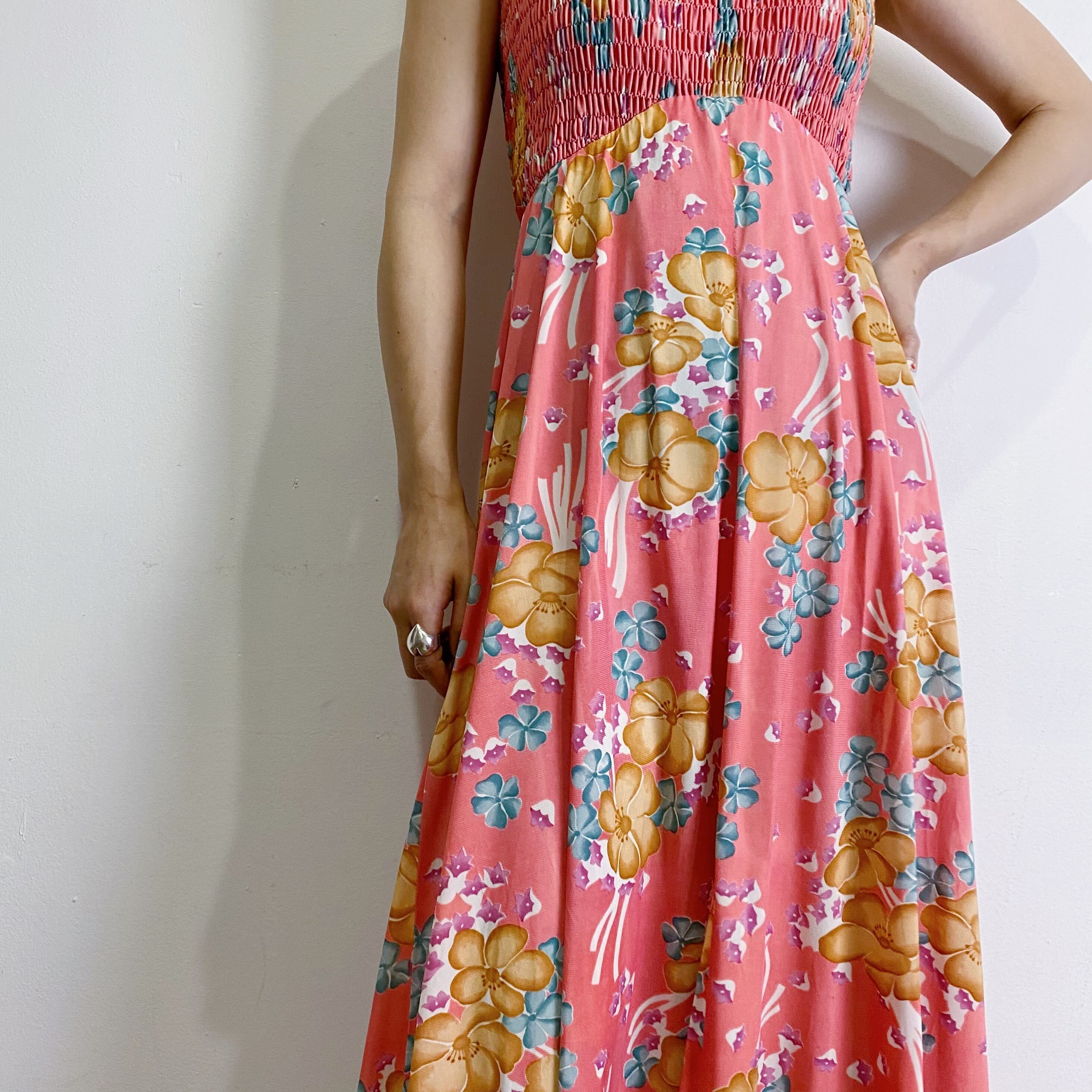 70年代のこっくりピンクが可愛いノースリーブワンピースです。