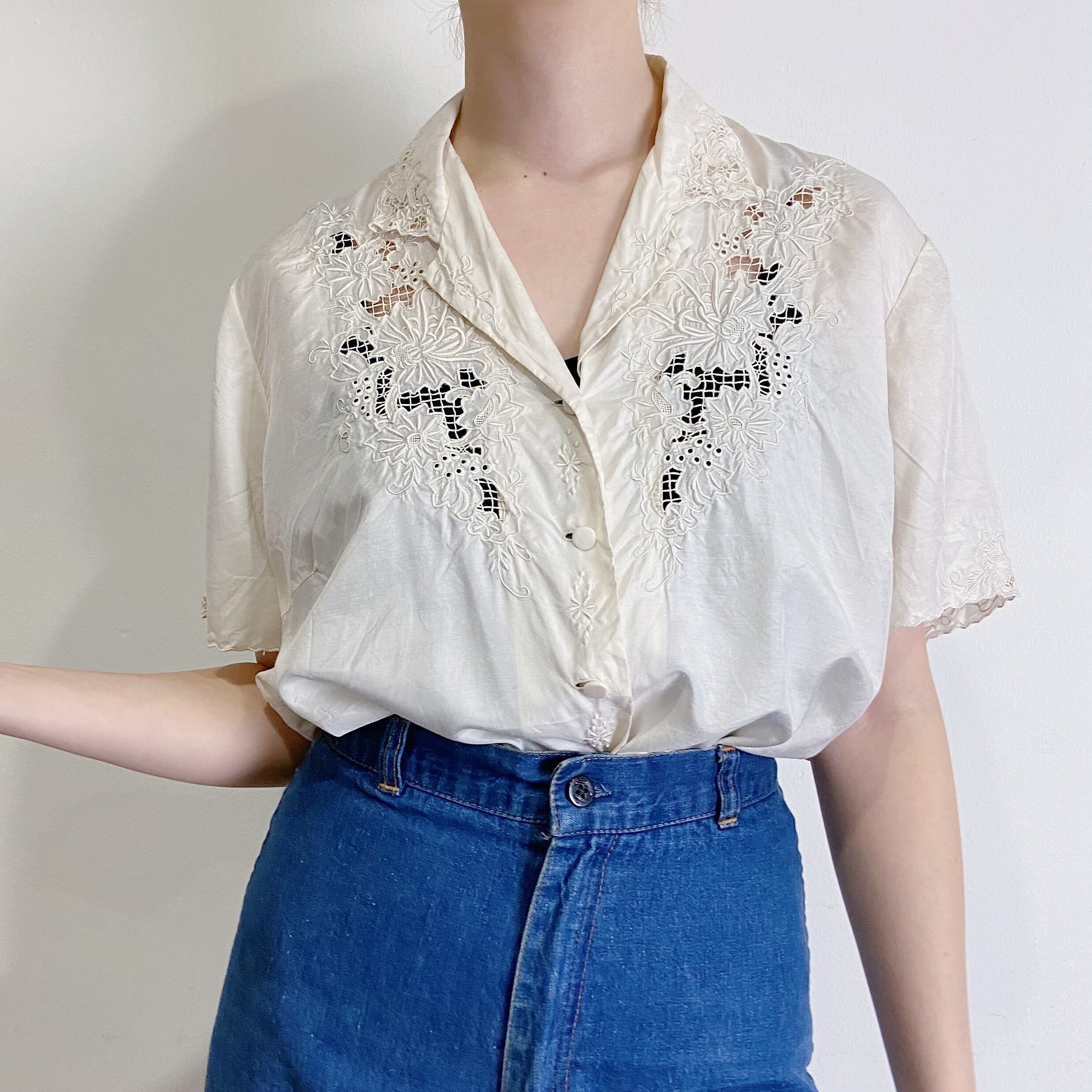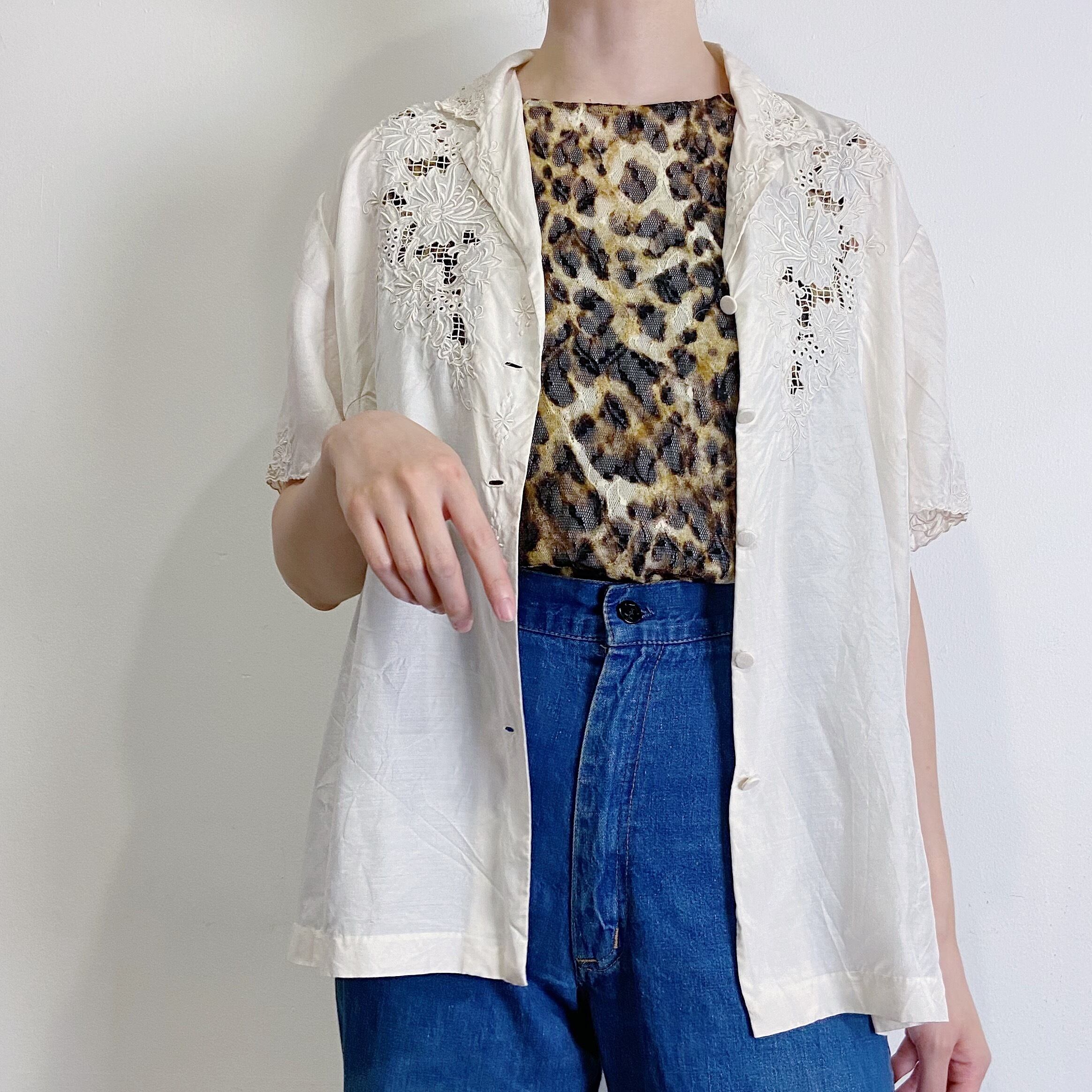 繊細な透かし刺繍が素敵な一枚で、ボックスシルエットなので羽織として着こなしても優秀です。