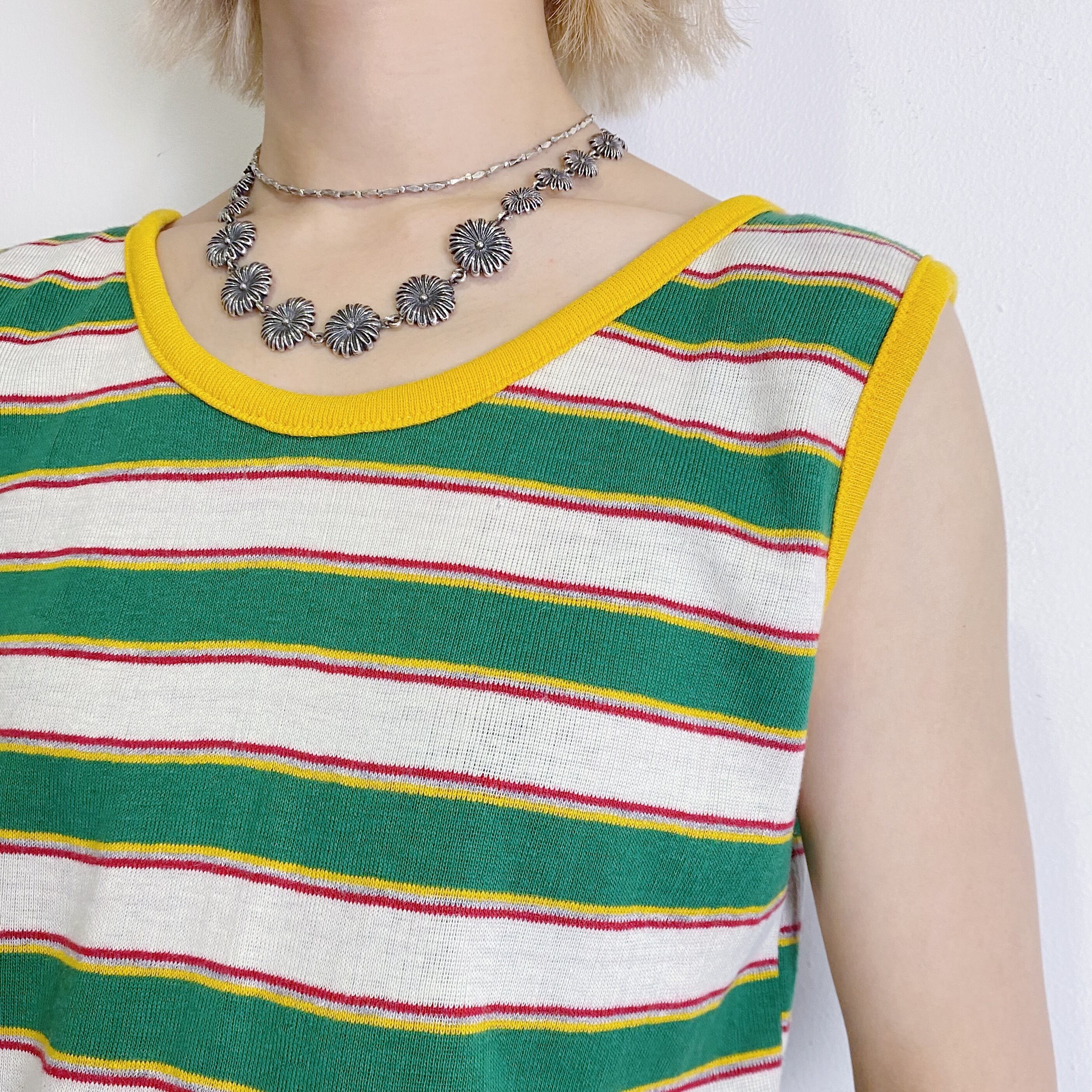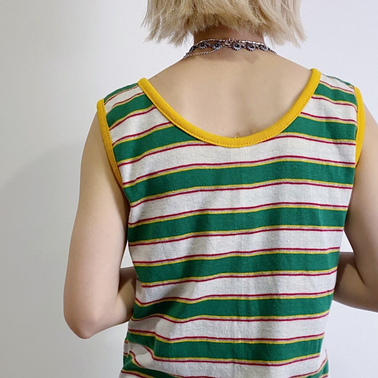 グリーンとイエローの色合いが可愛い、70年代のボーダー柄タンクトップです。