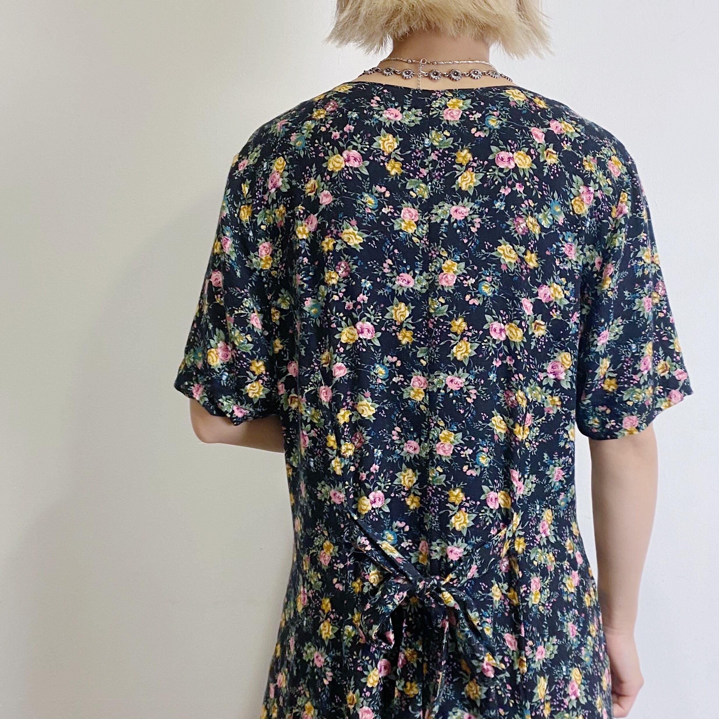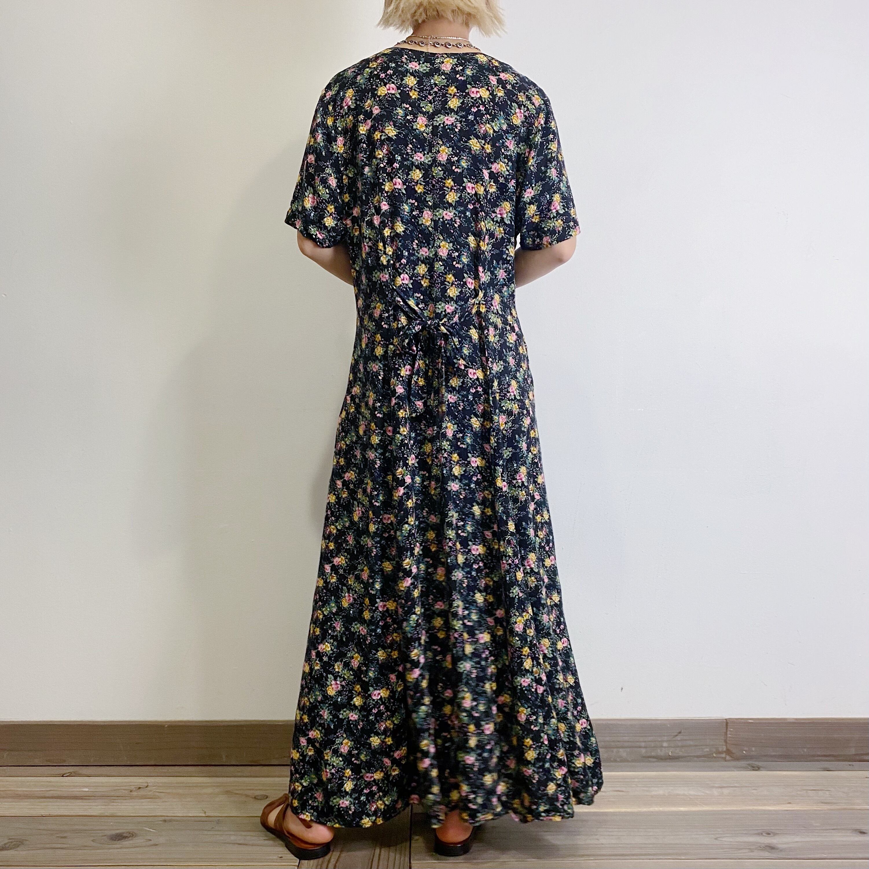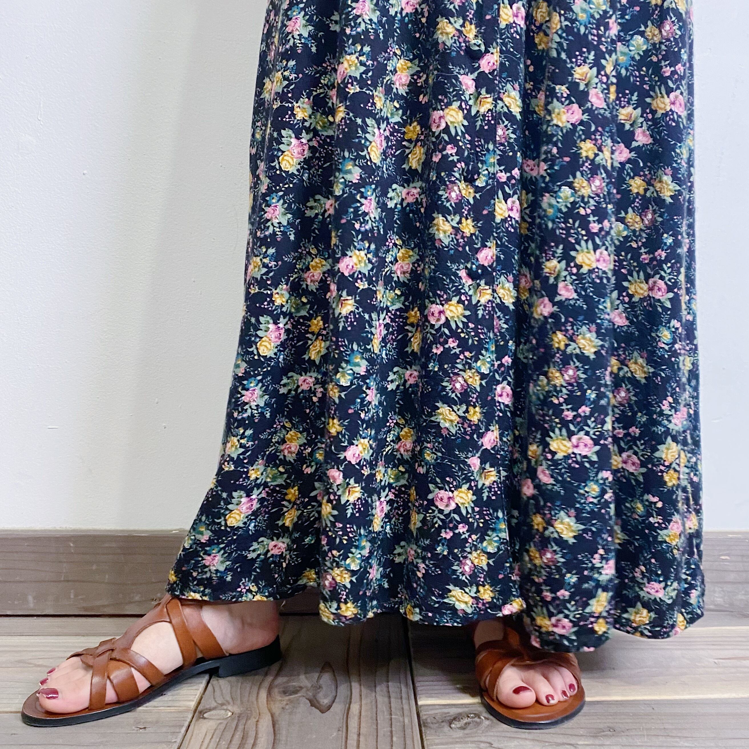 黒ベースに花柄が可愛いレーヨン素材のロングワンピースです。