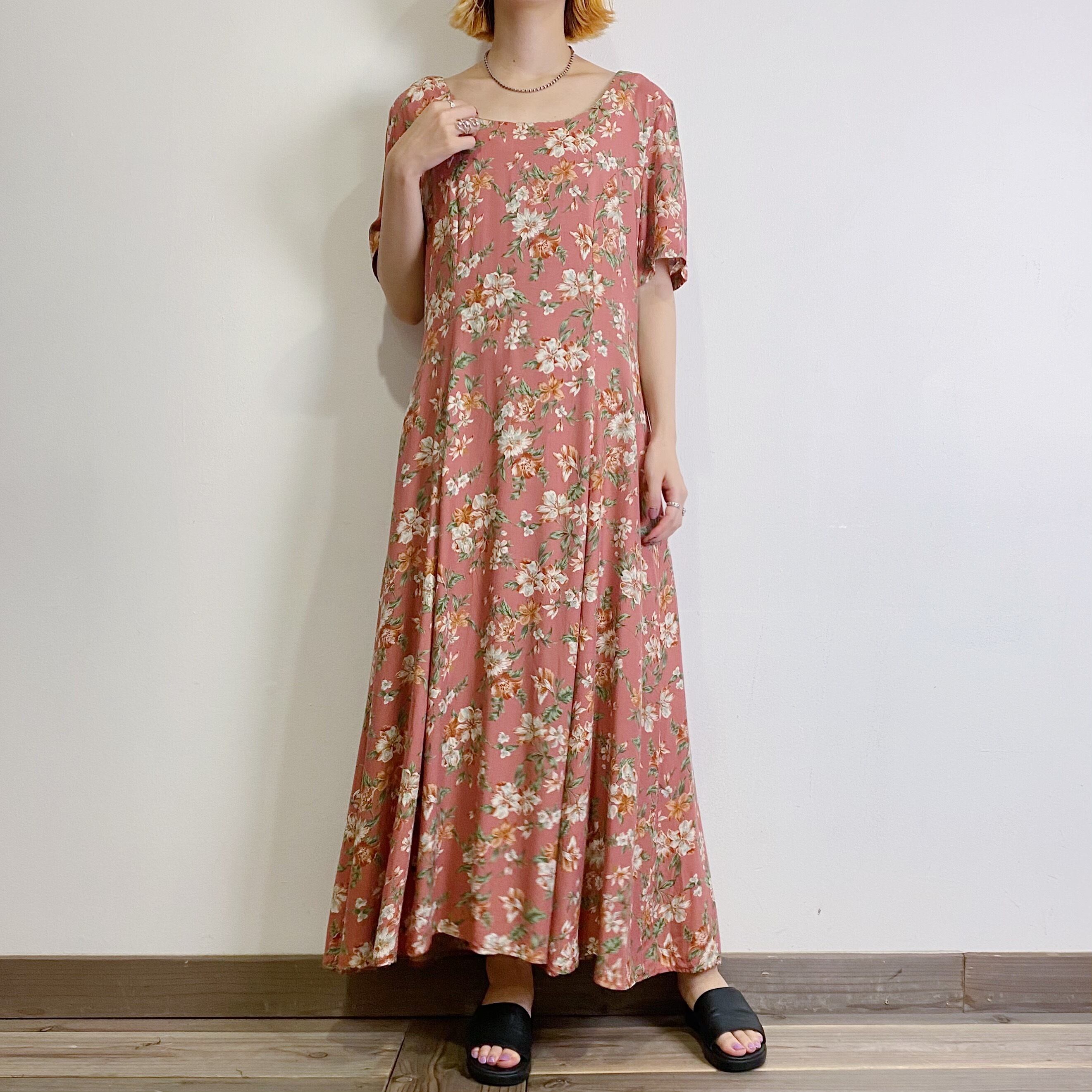 スモーキーなピンク色が可愛い、レーヨン素材のロングワンピースです。