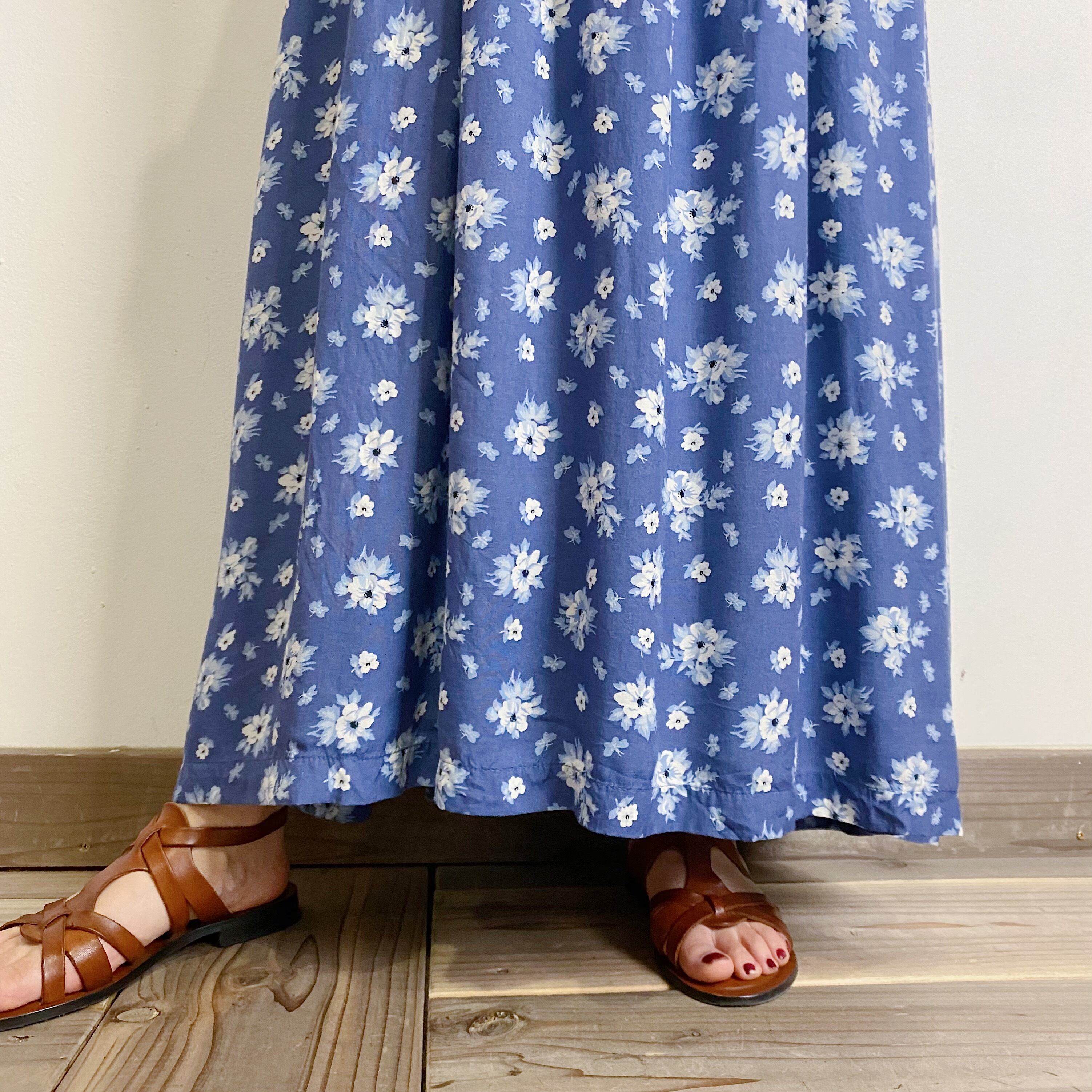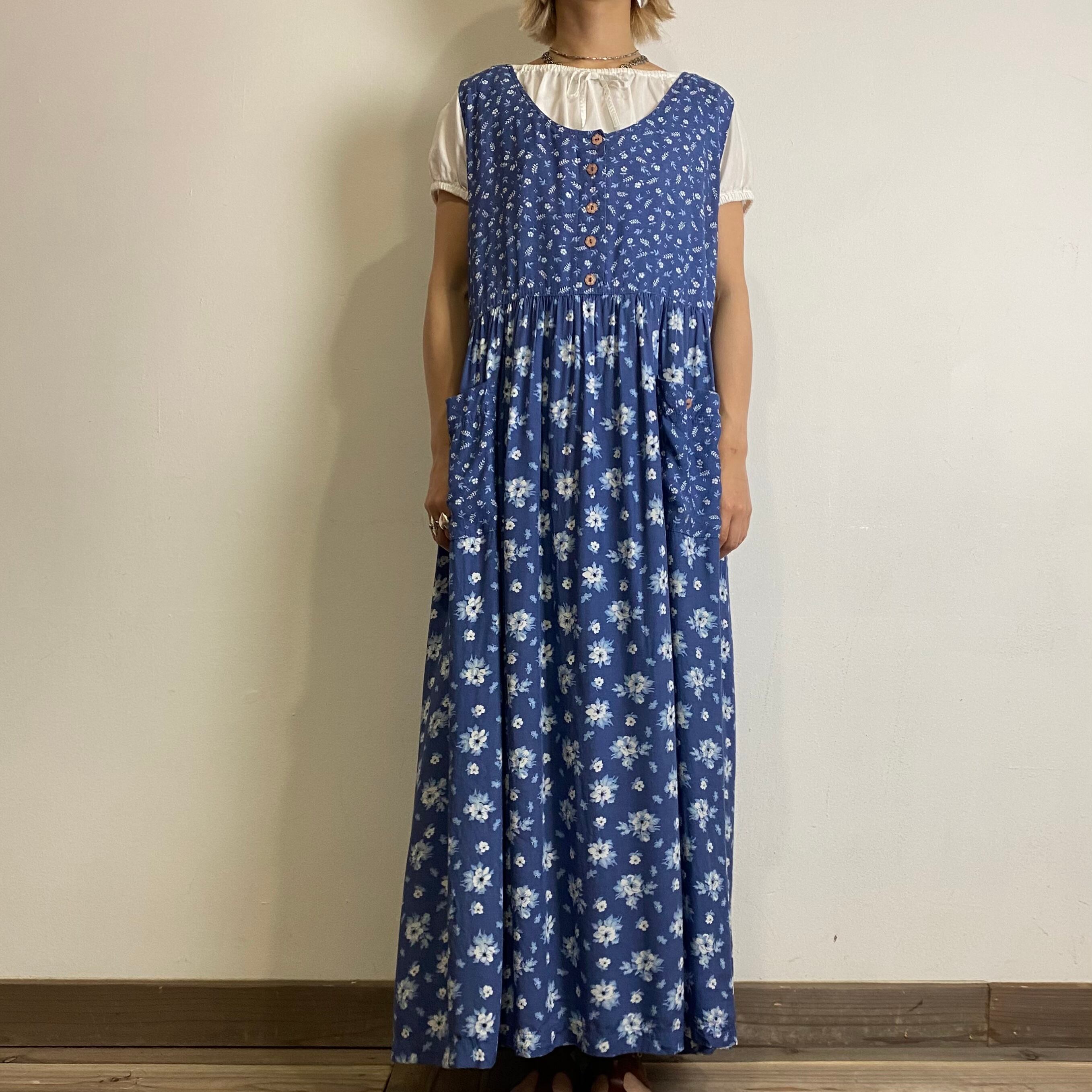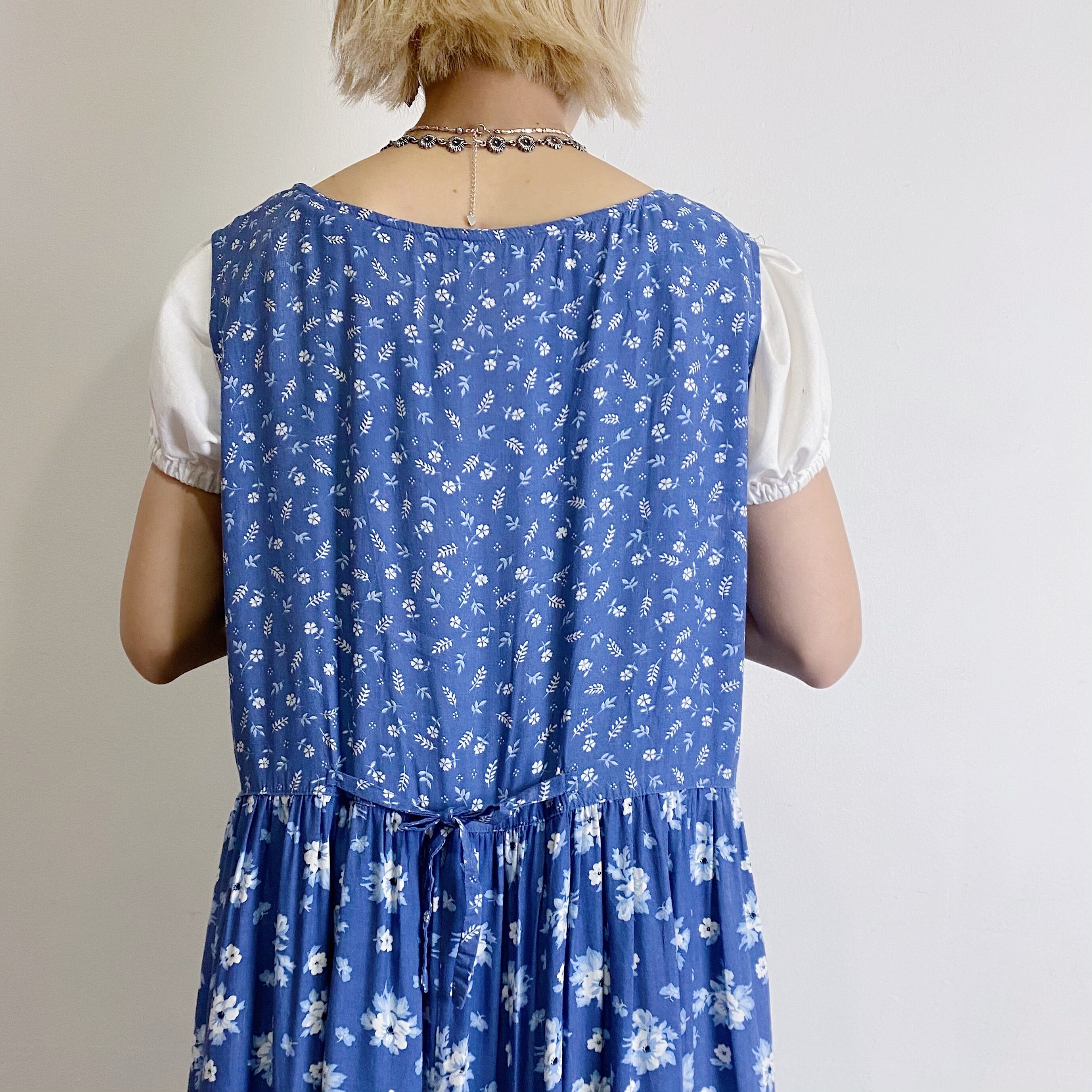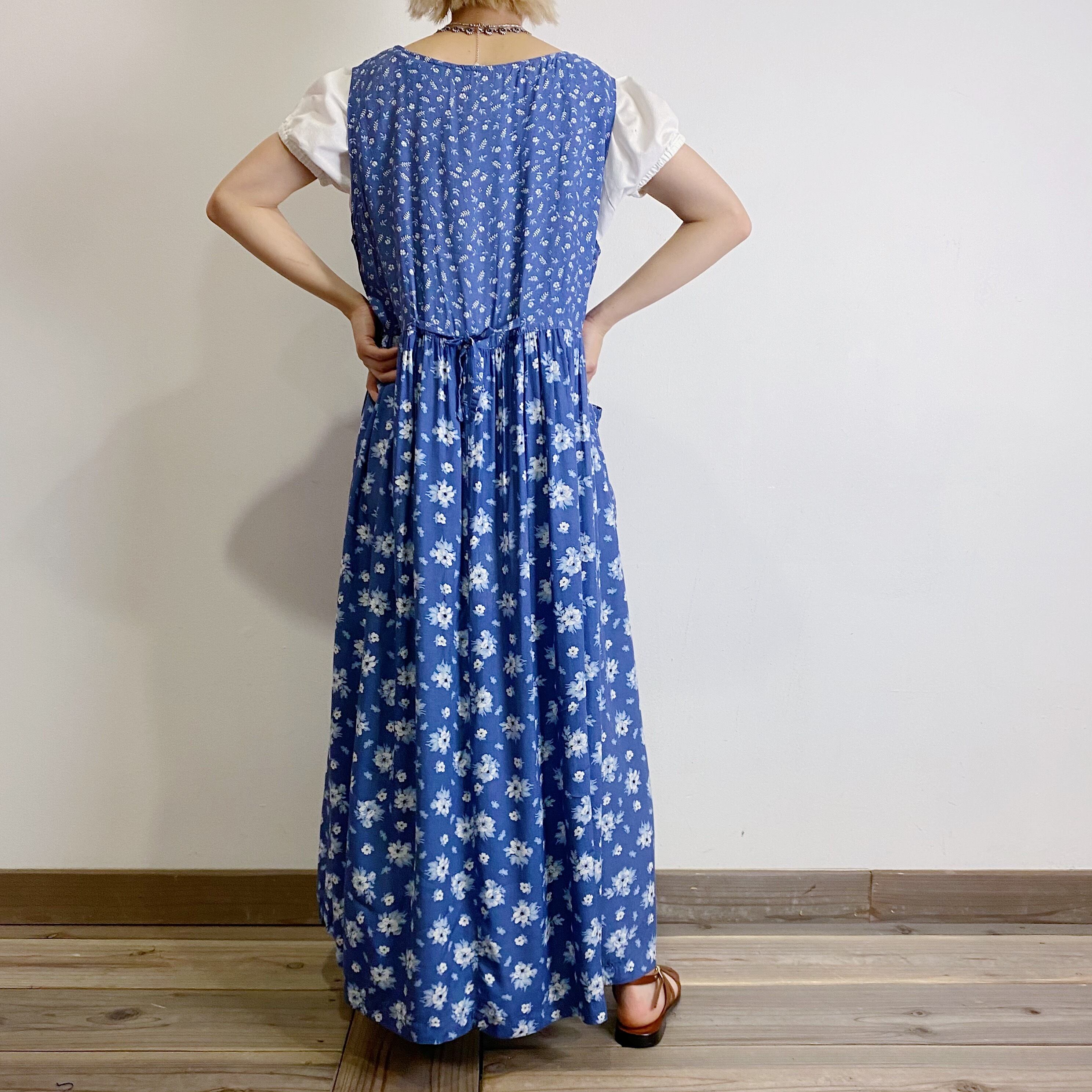 blue flower rayon jumper long dress