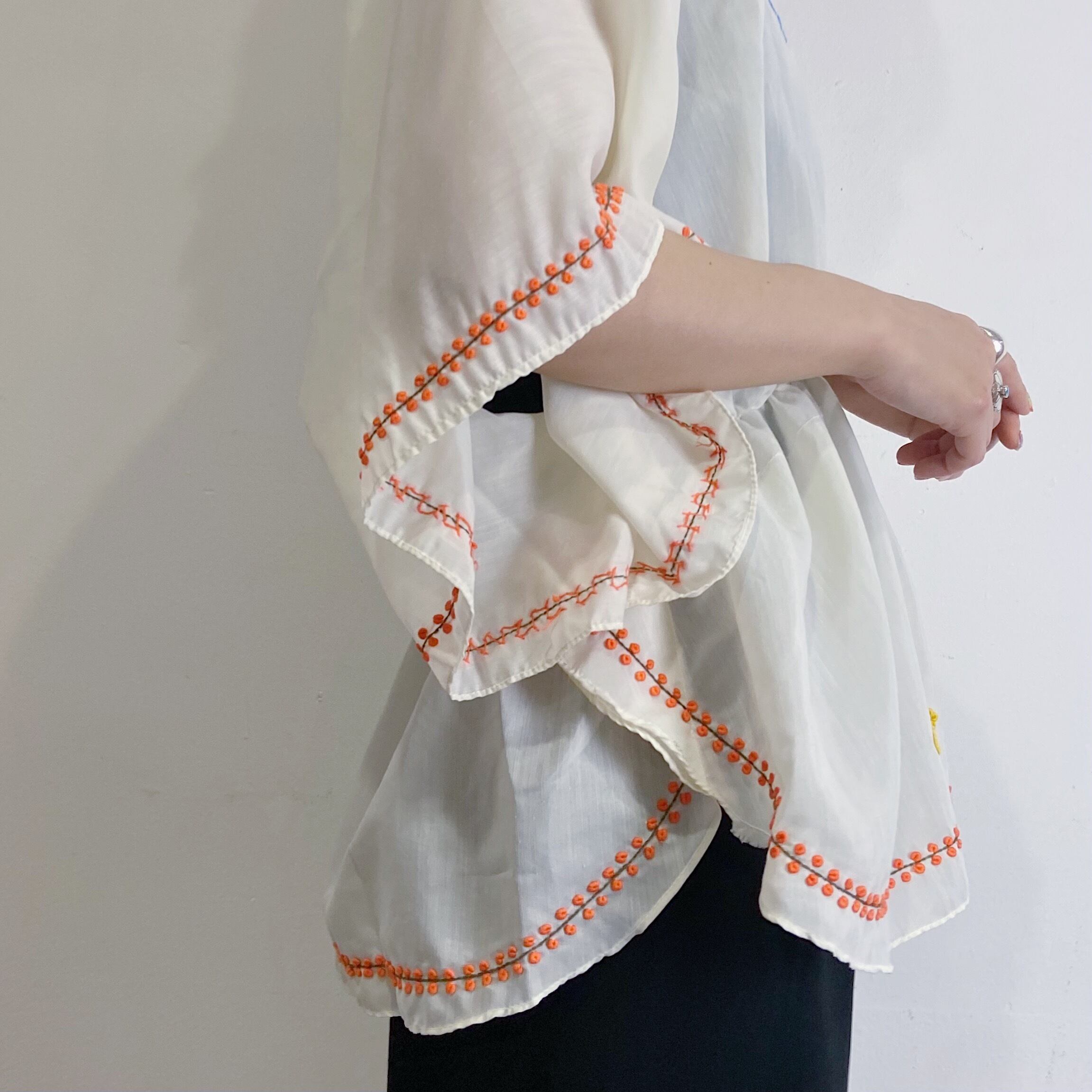袖や裾にも入った刺繍がいいアクセントになっており可愛いです。