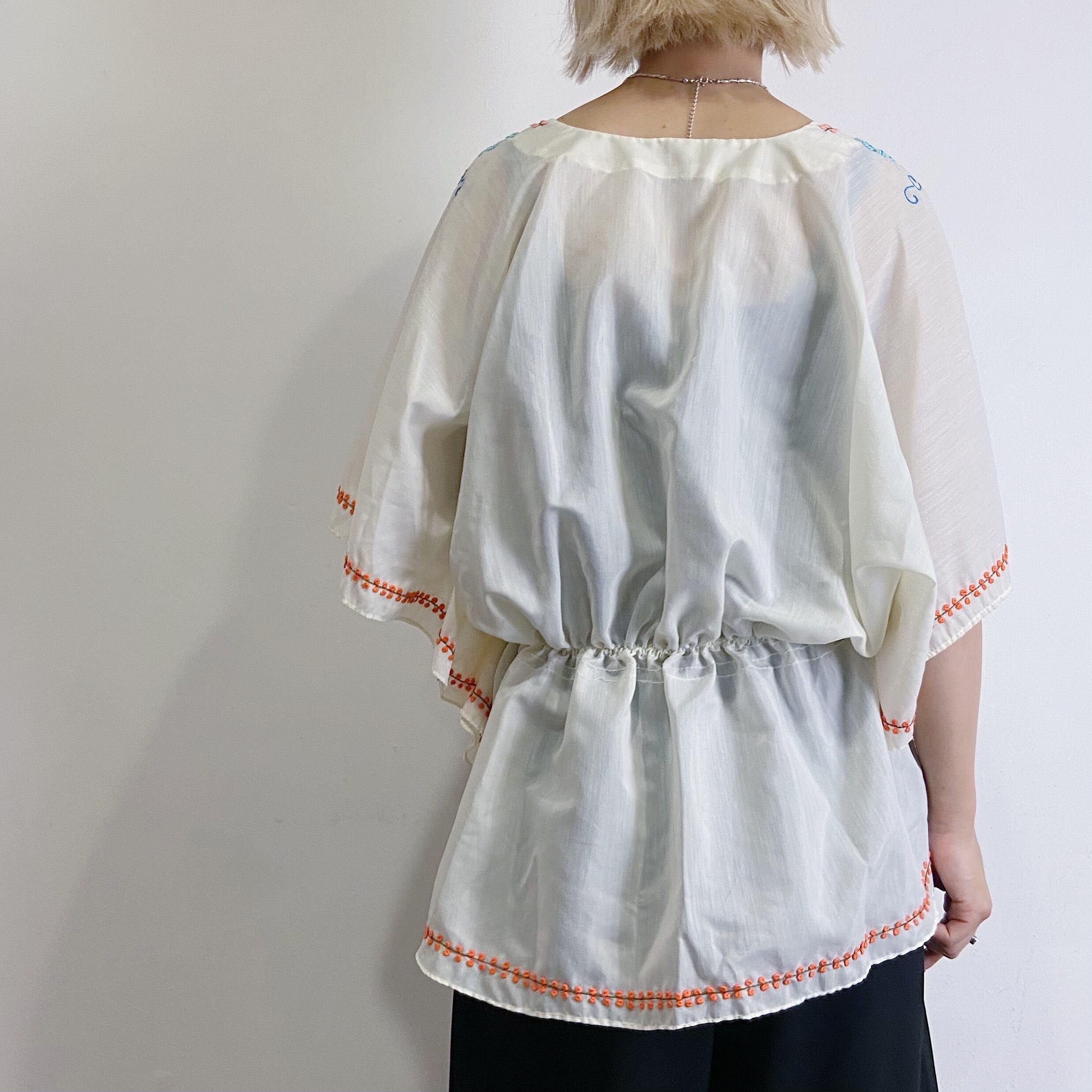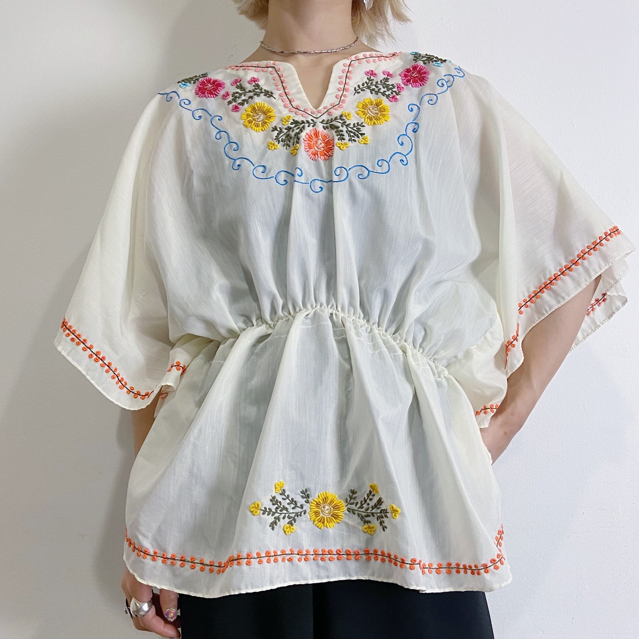 70s flower embroidery tunic top