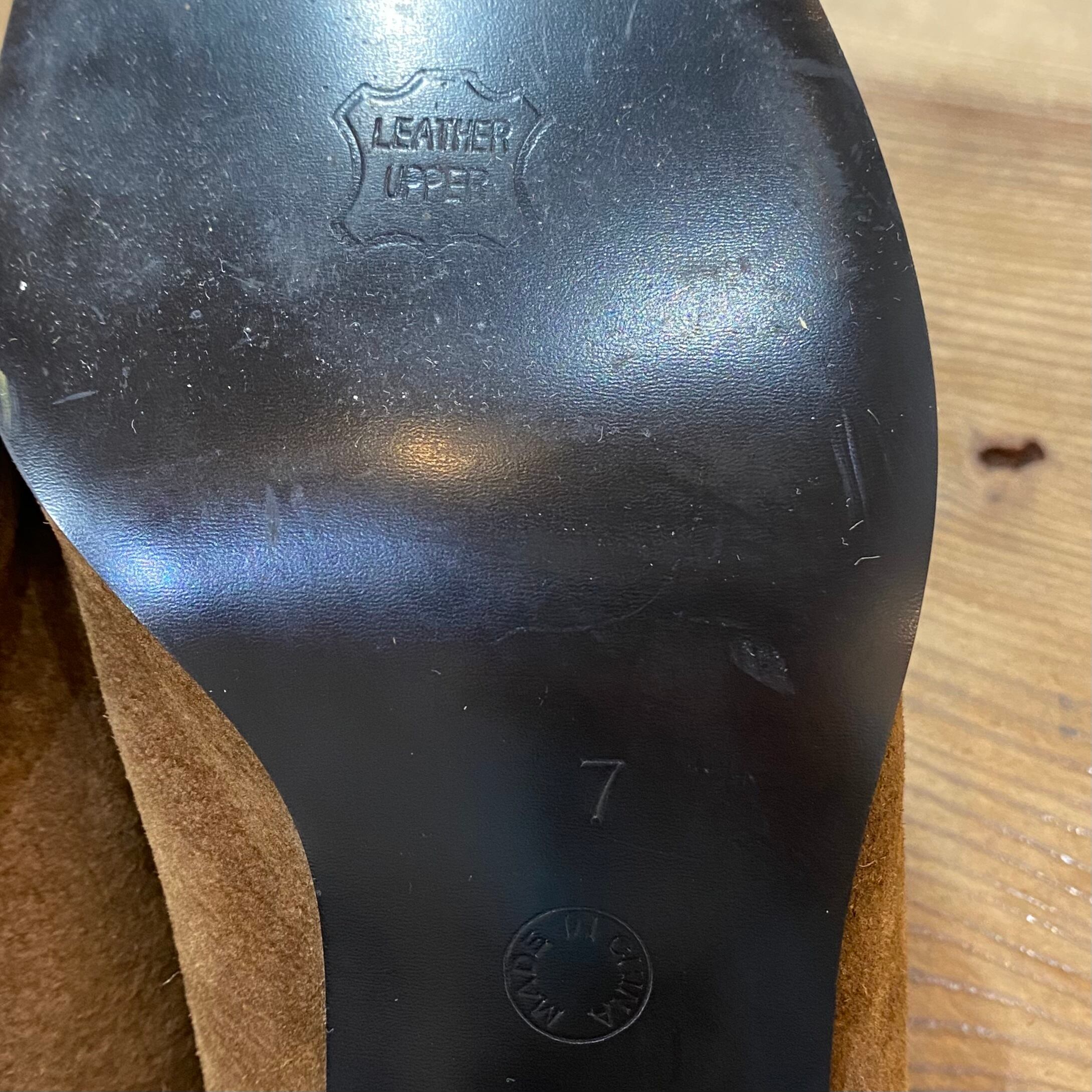 踵などにスエード特有の軽い毛羽立ちや軽いヨゴレが見受けられますが、あまり気にならない程度かと思われます。