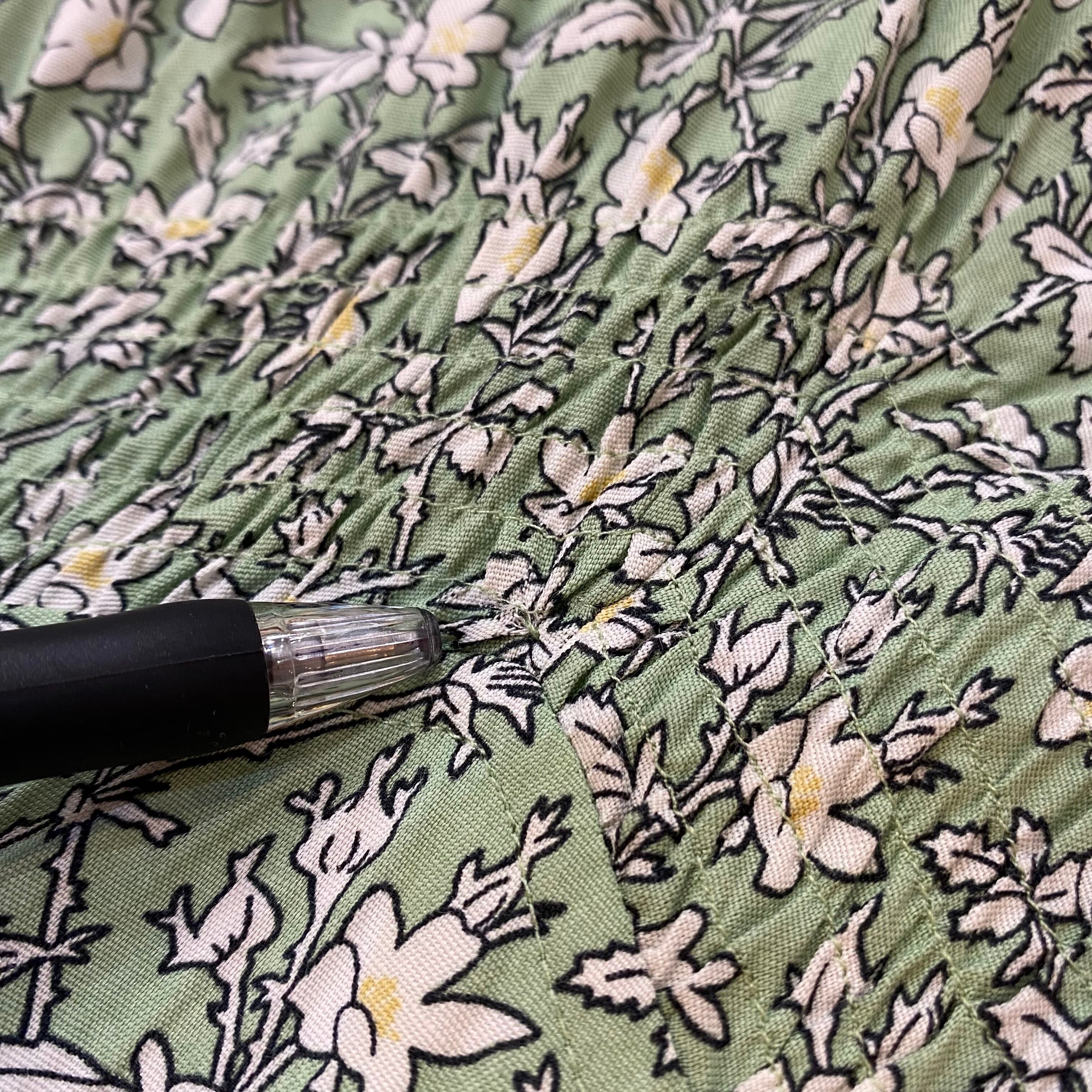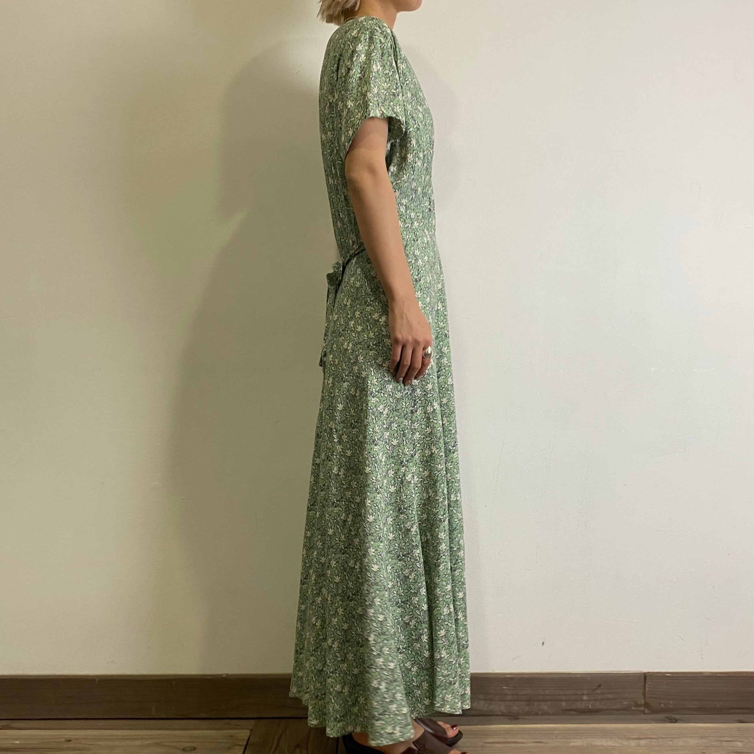 ミントグリーンに白い華憐な小花柄がキュートな、レーヨンワンピースです。