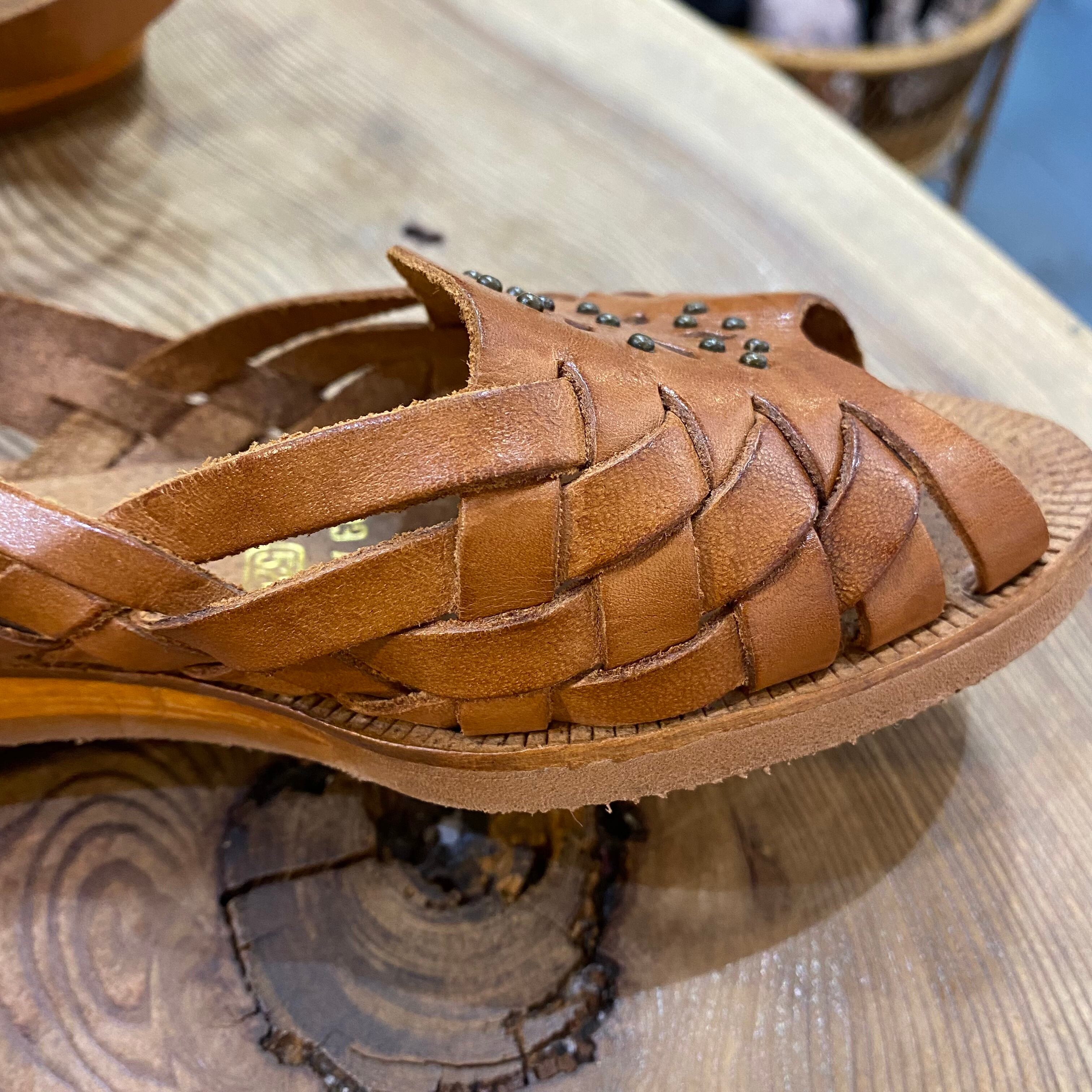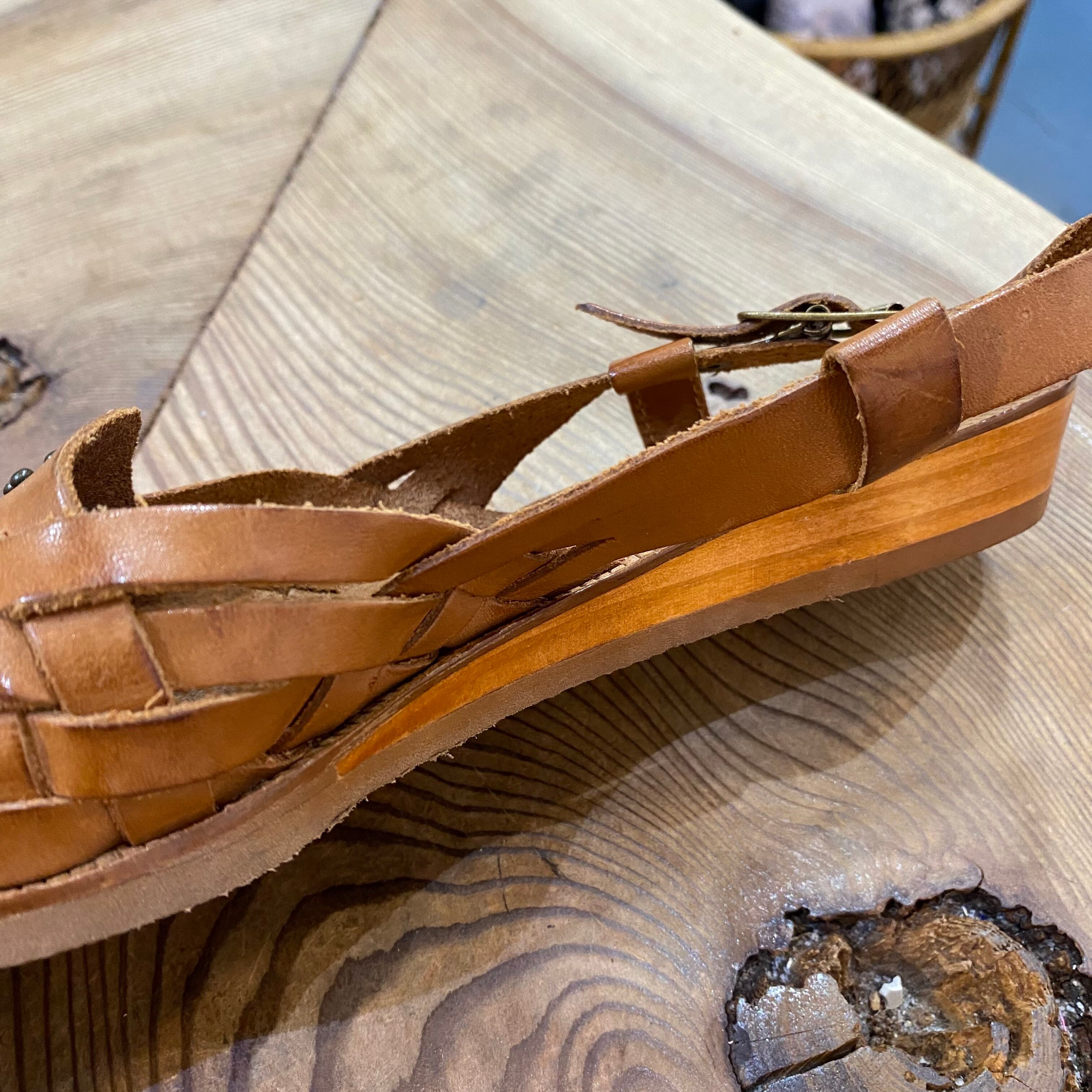 70年代の、甲のカットワークとスタッズが可愛いレザーサンダルです。