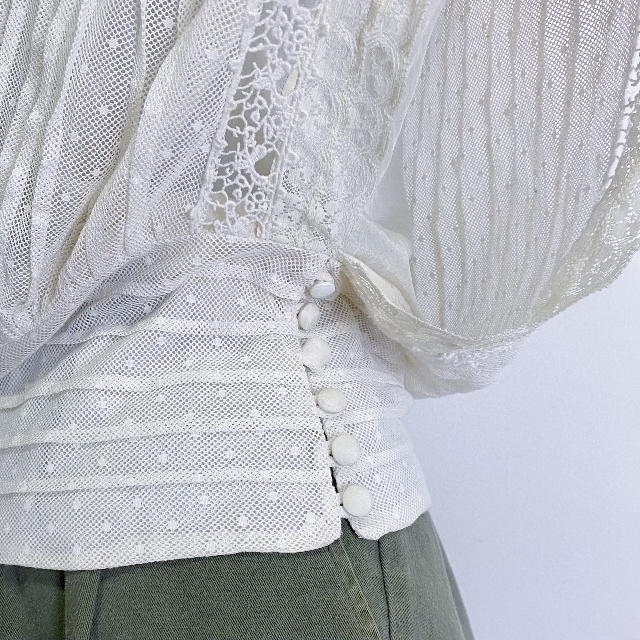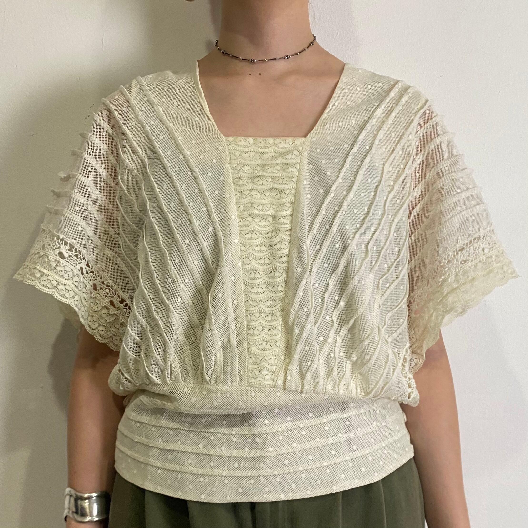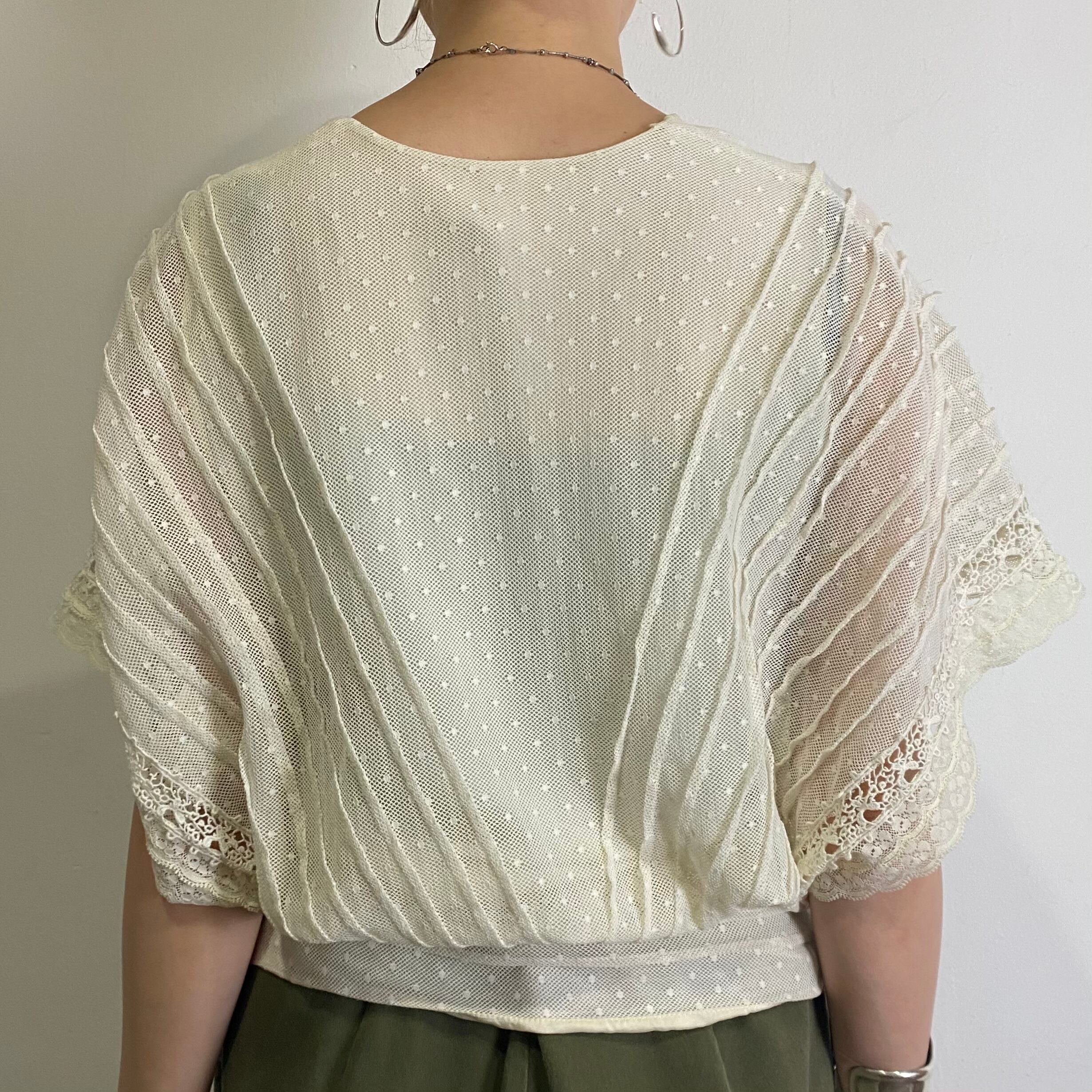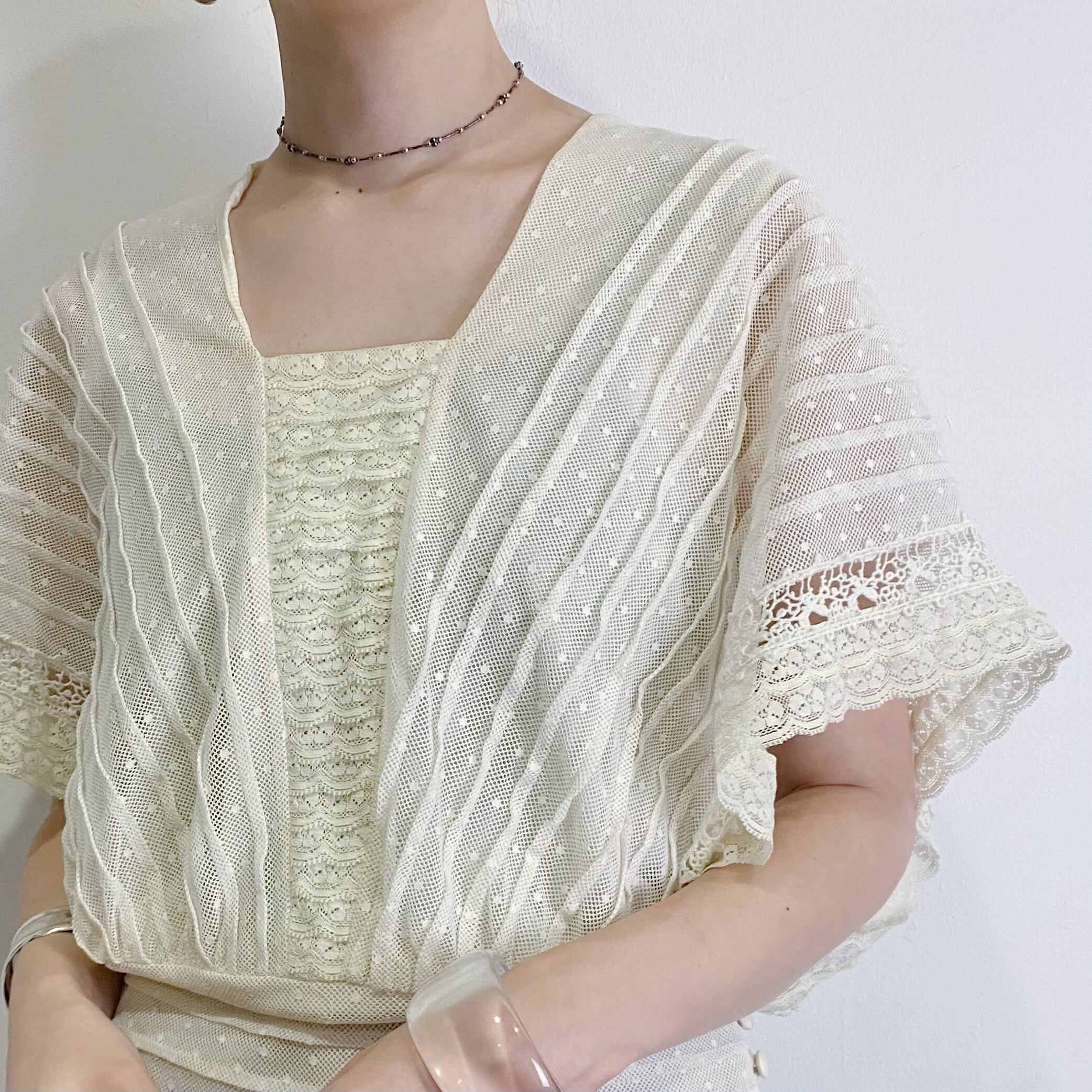 繊細なタックや細かいドットレースなどガーリーな雰囲気と、ボヘミアンな形のギャップが可愛い。