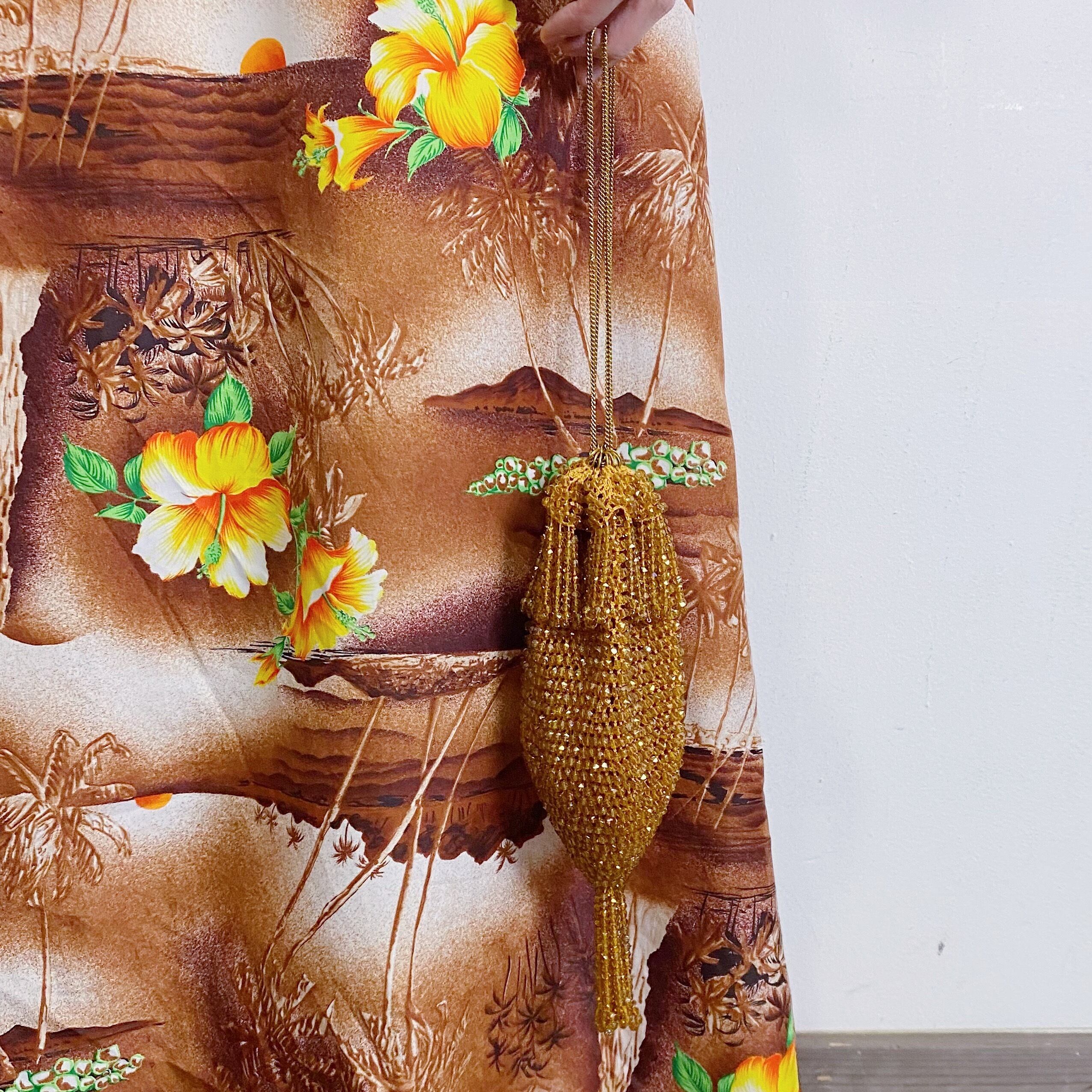 カラシキラキラビーズが可愛い、小さな巾着バッグです。