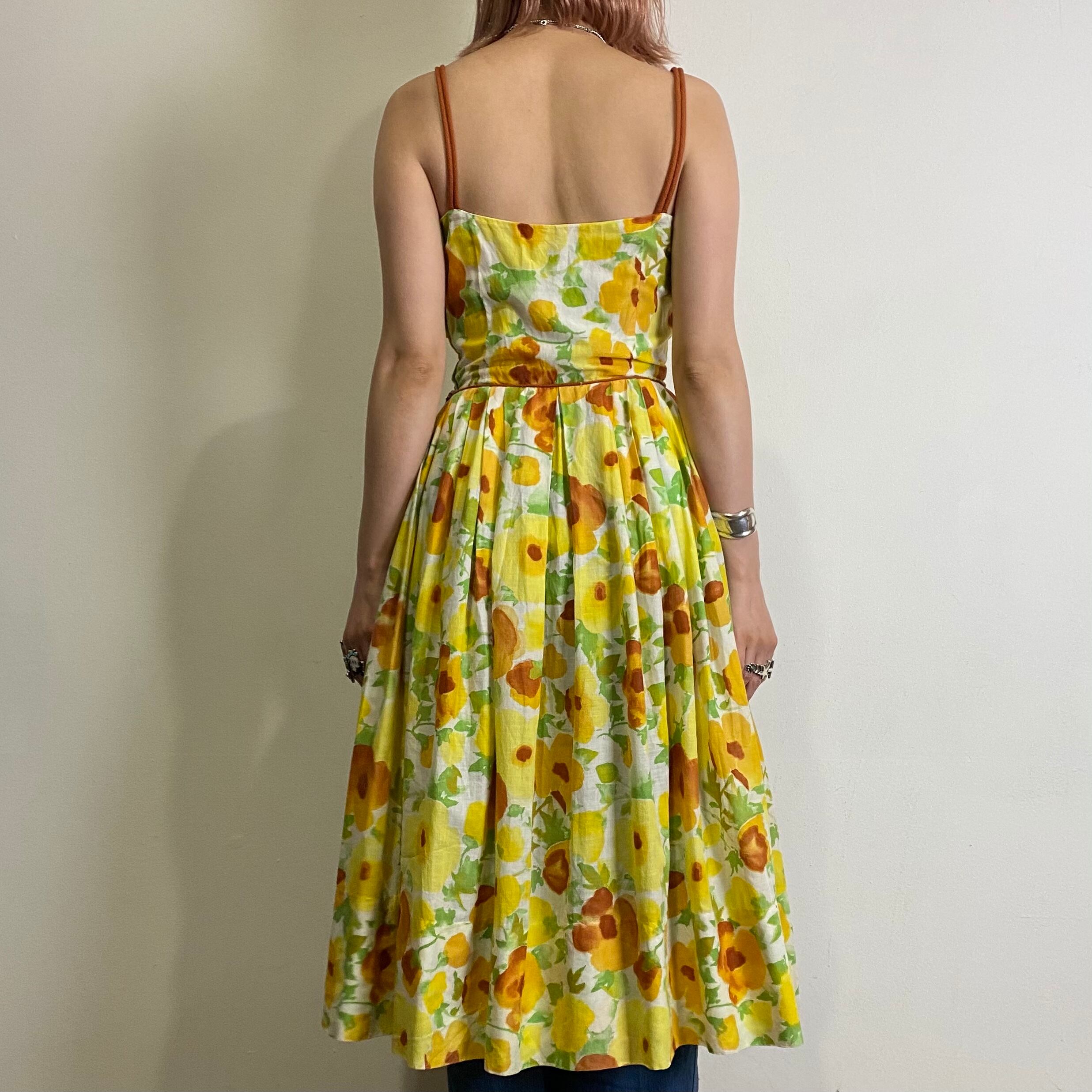 50s yellow flower cotton cami dress
