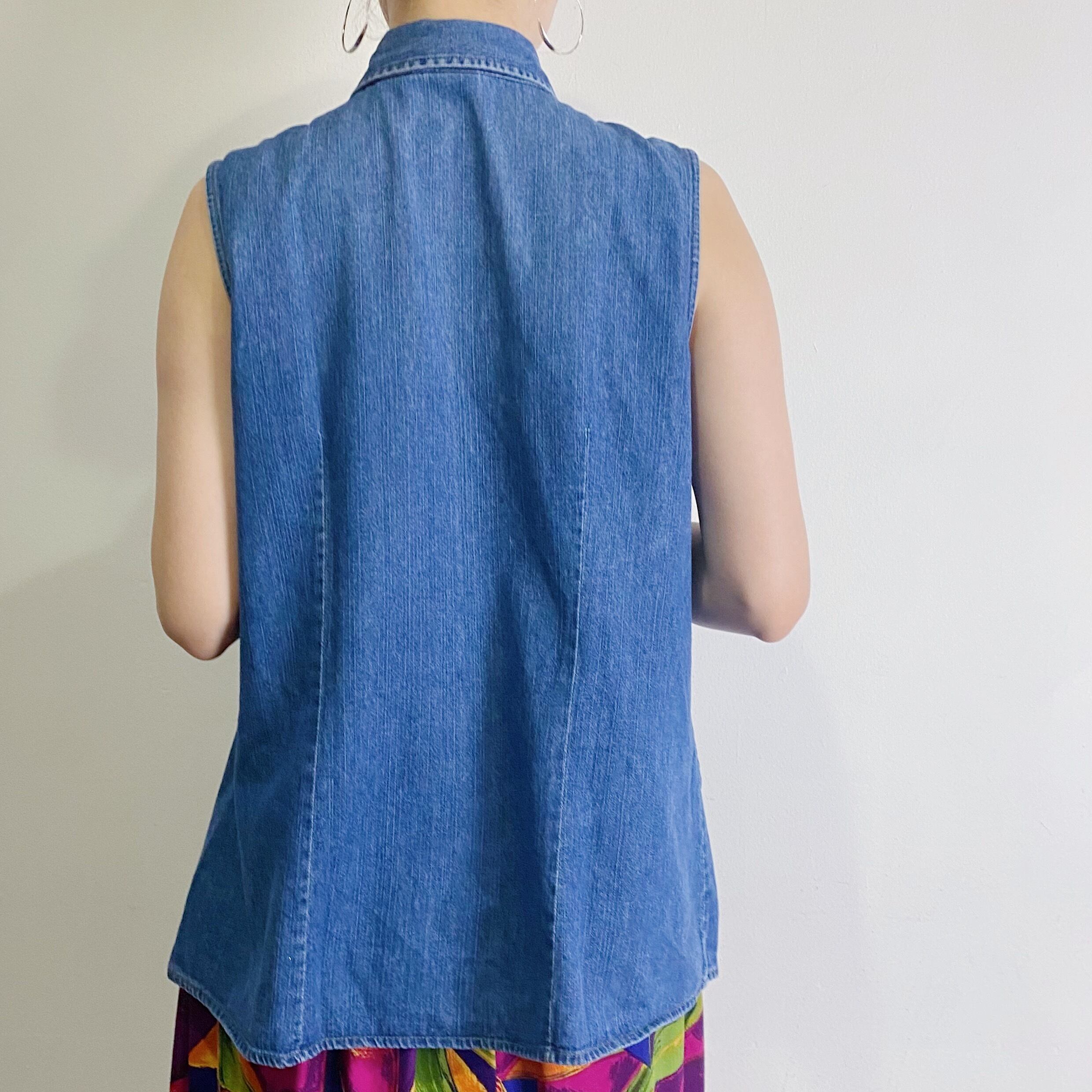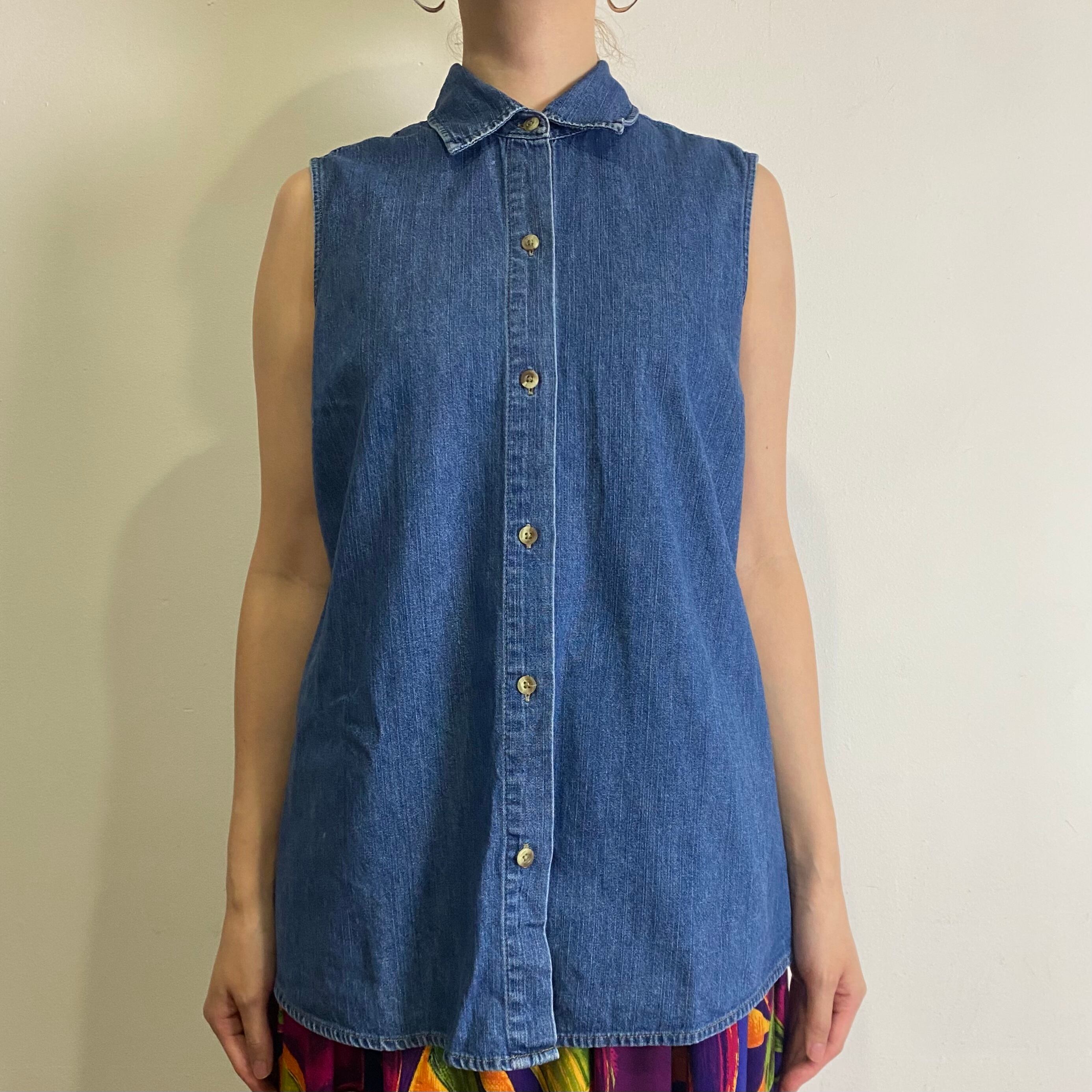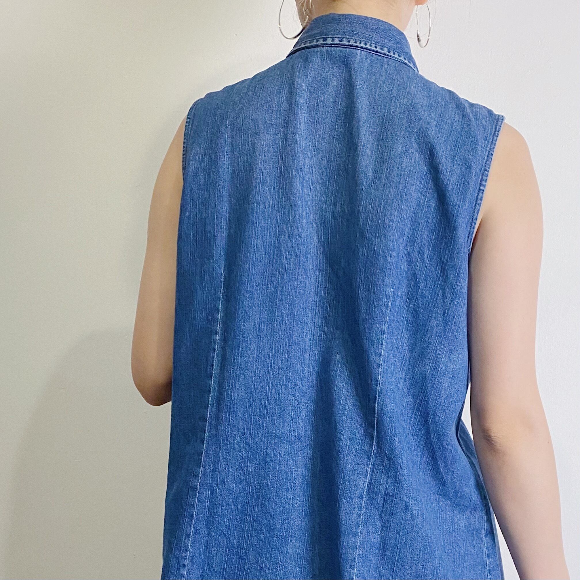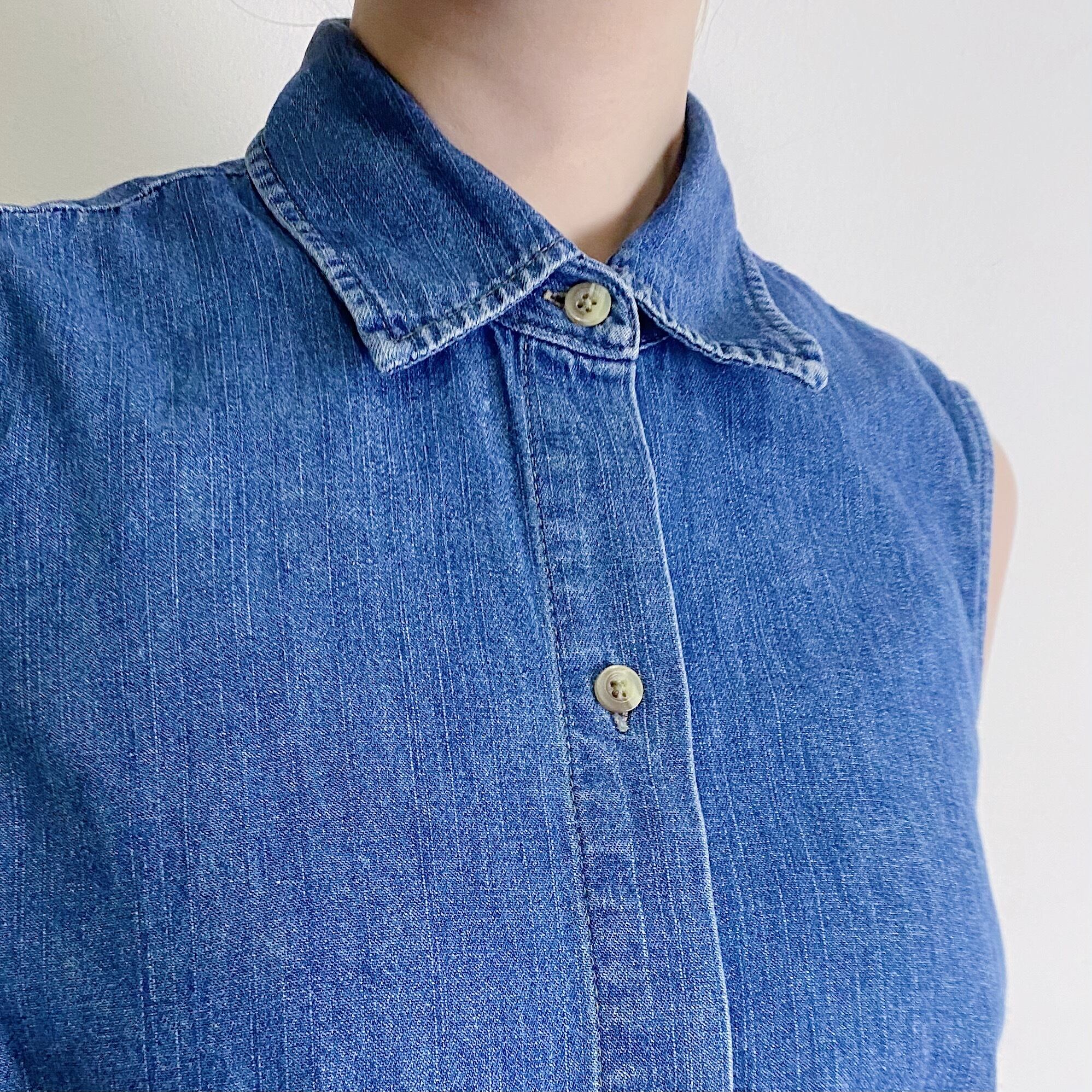 ノースリーブでデニム生地が可愛いシャツトップです。