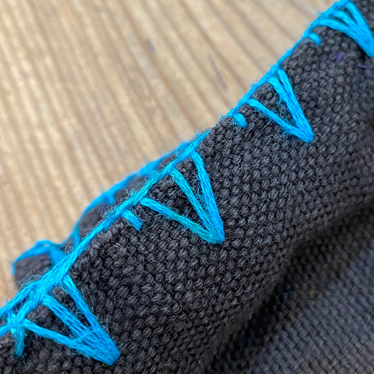 擦れて色のうっすらと薄くなっている箇所や刺繍糸にうっすらとしたシミが見受けられます。いずれもあまり気にならない程度かと思われます。
