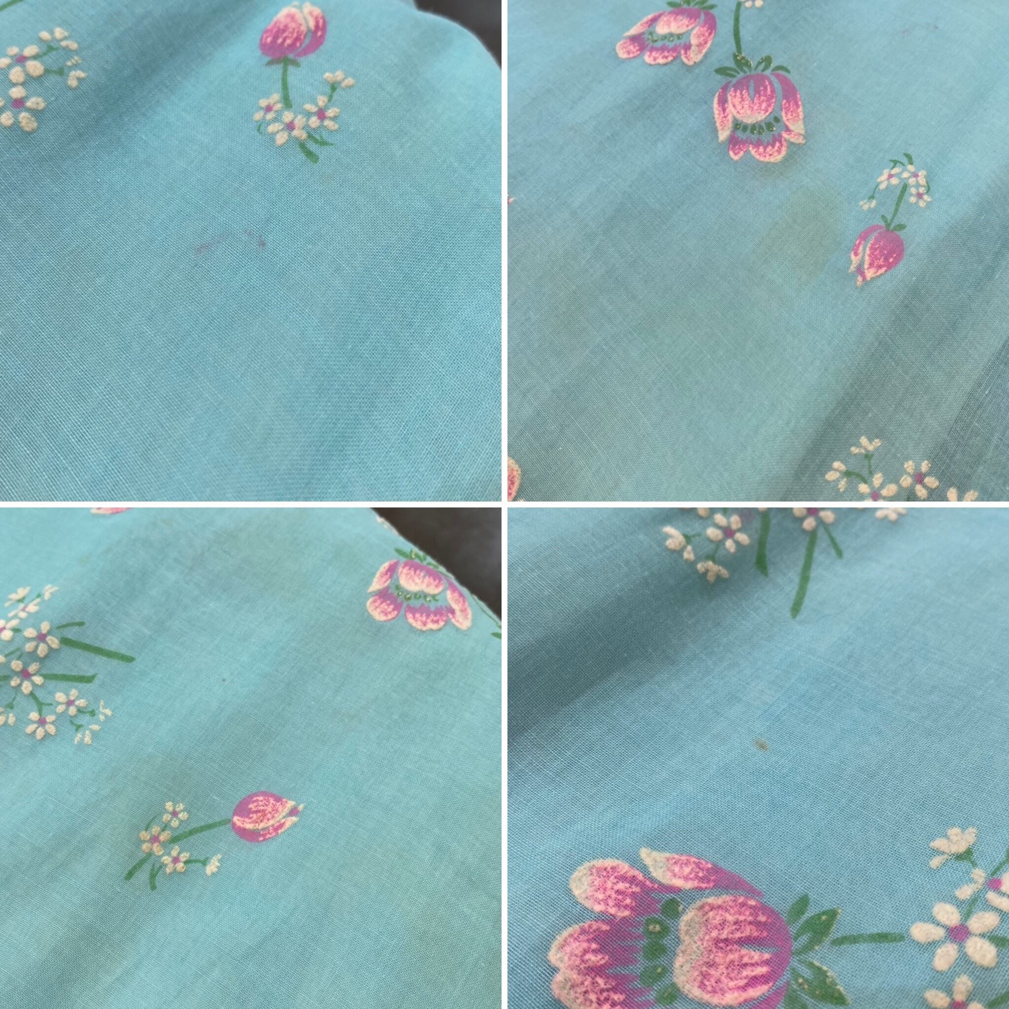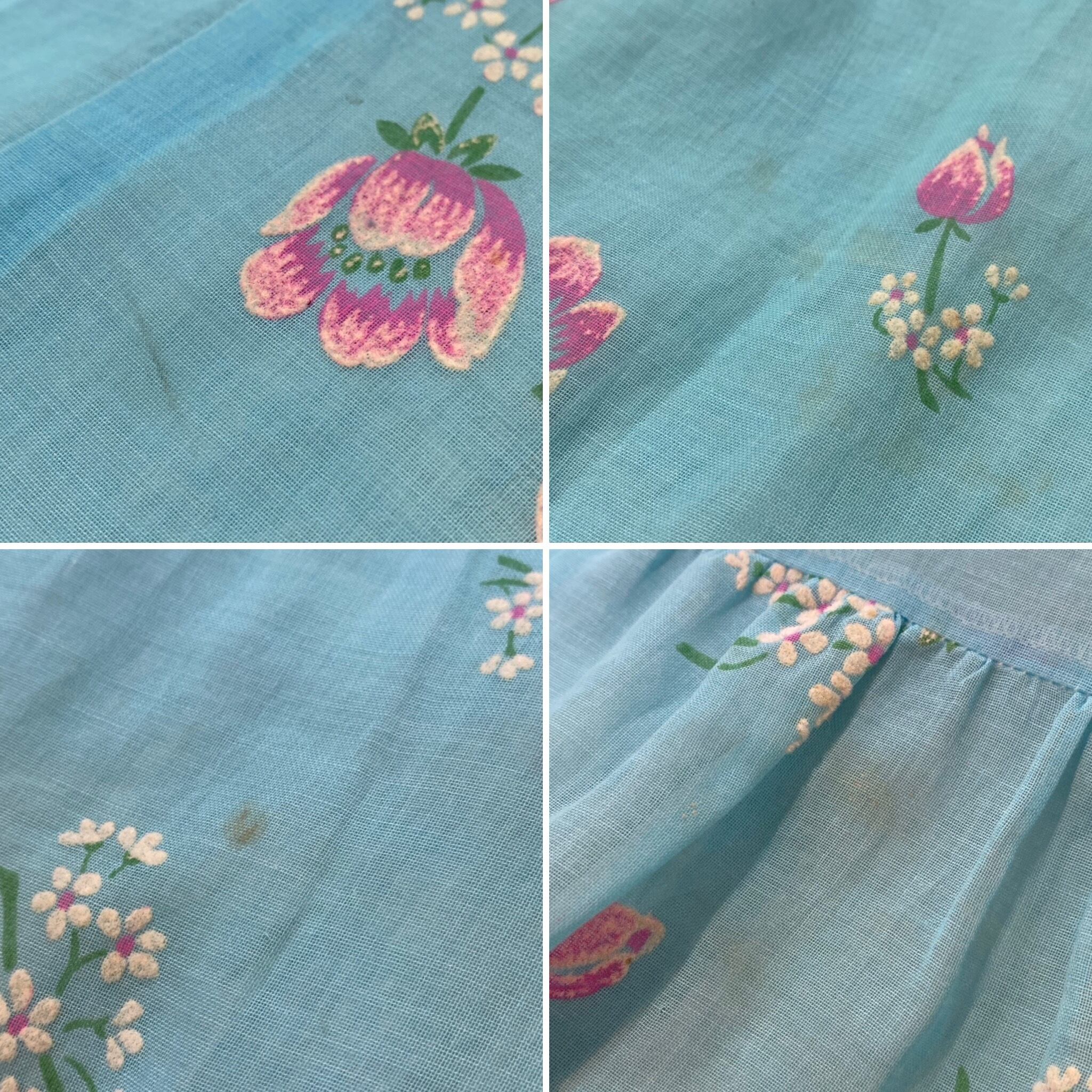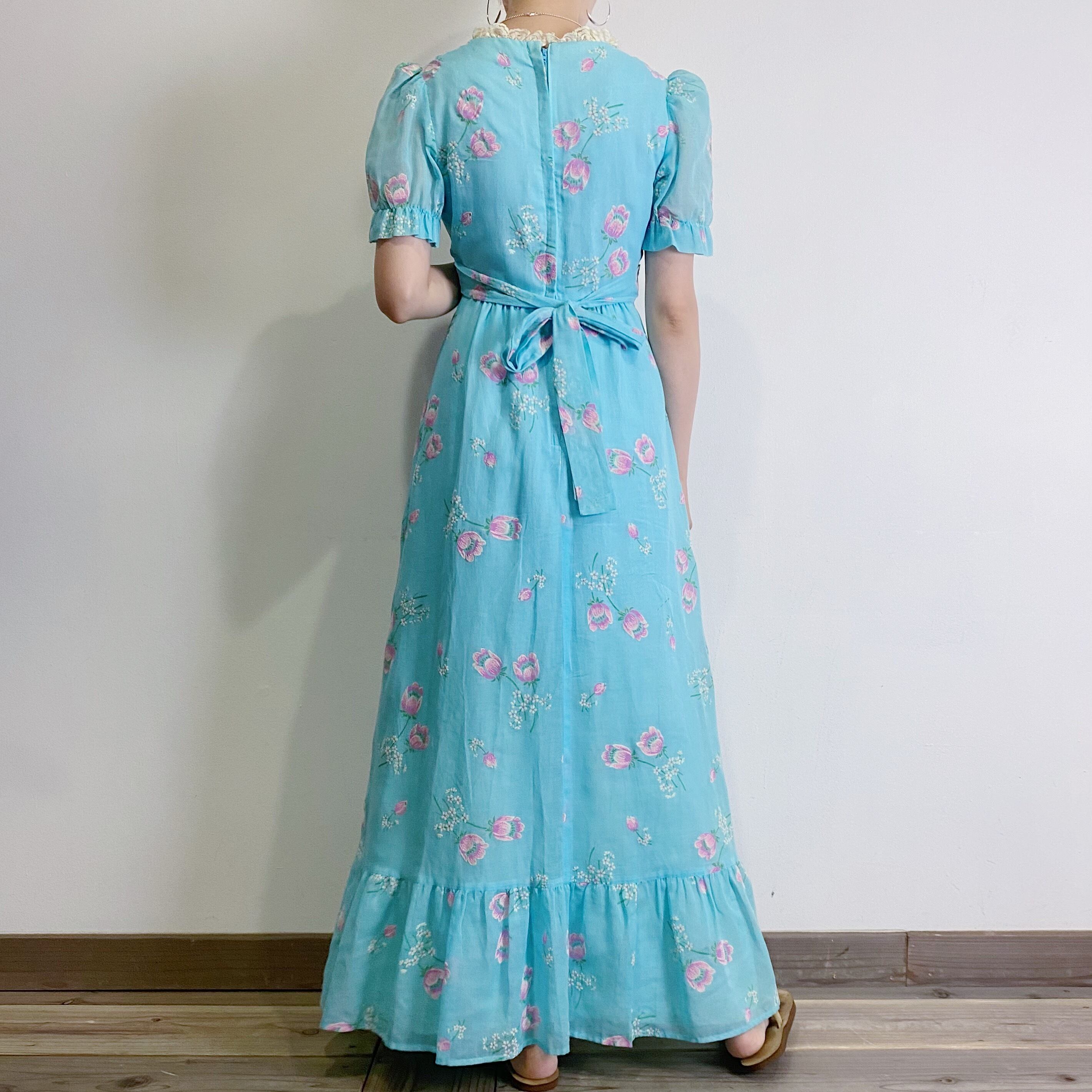 水色にピンクのお花柄が可愛い70年代ワンピースです。