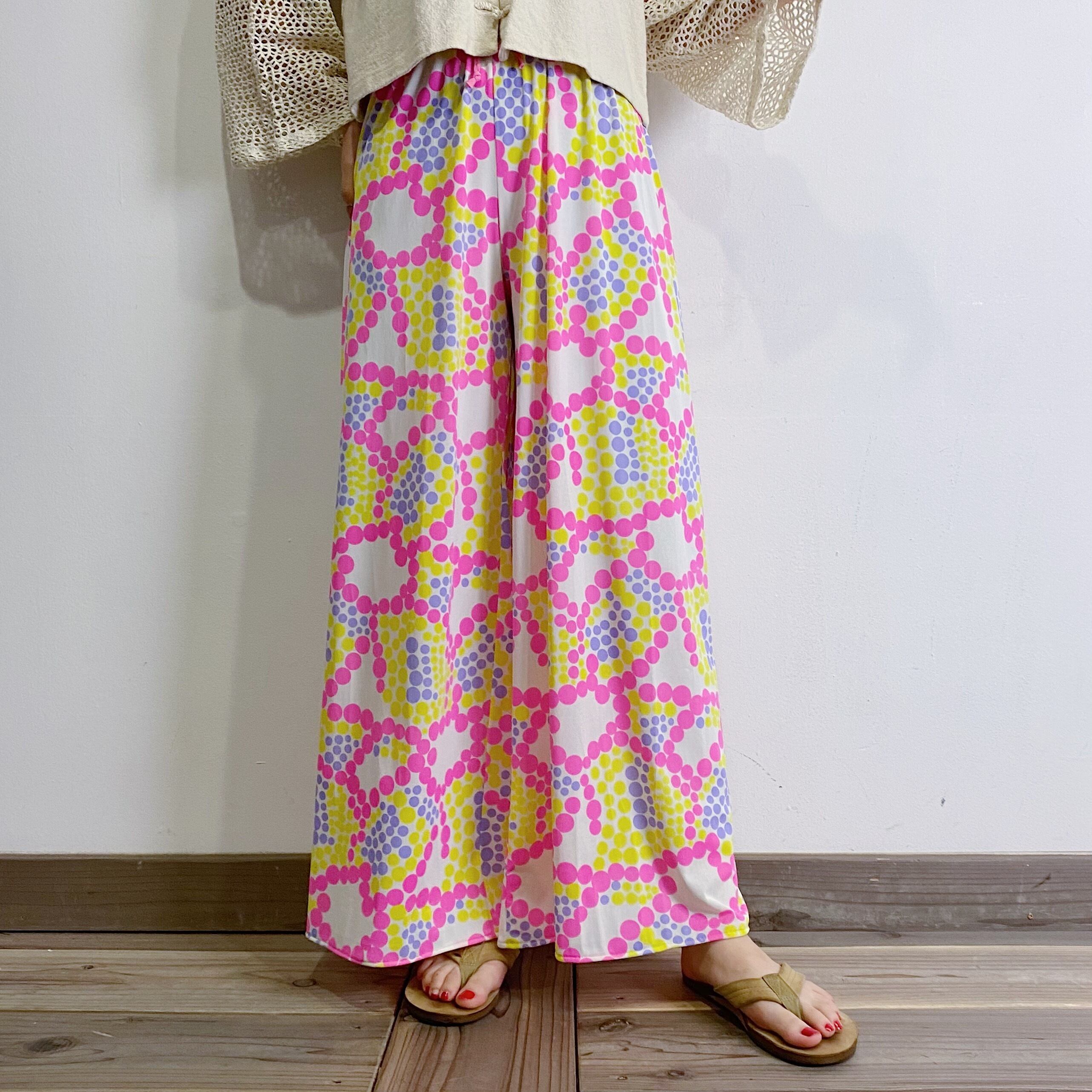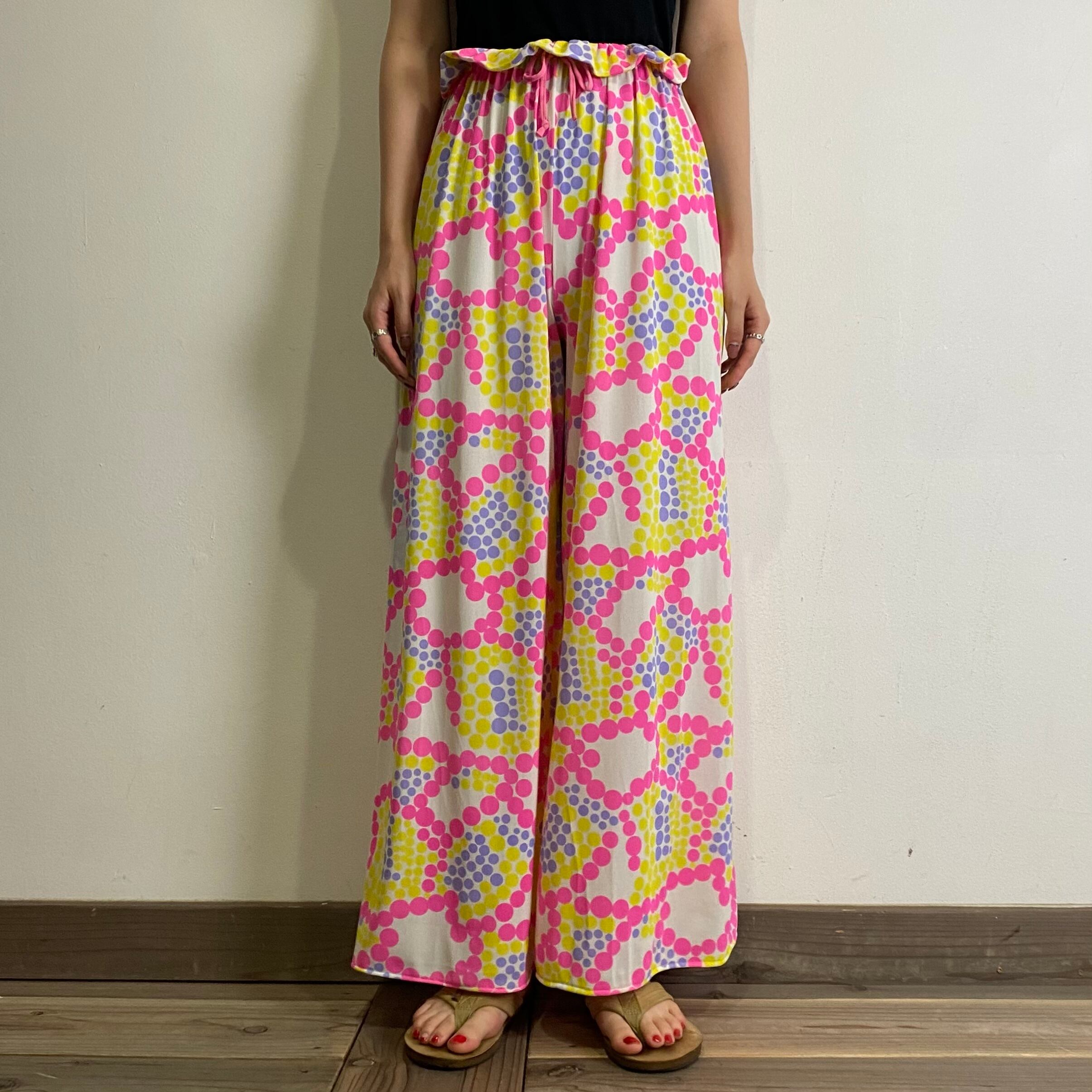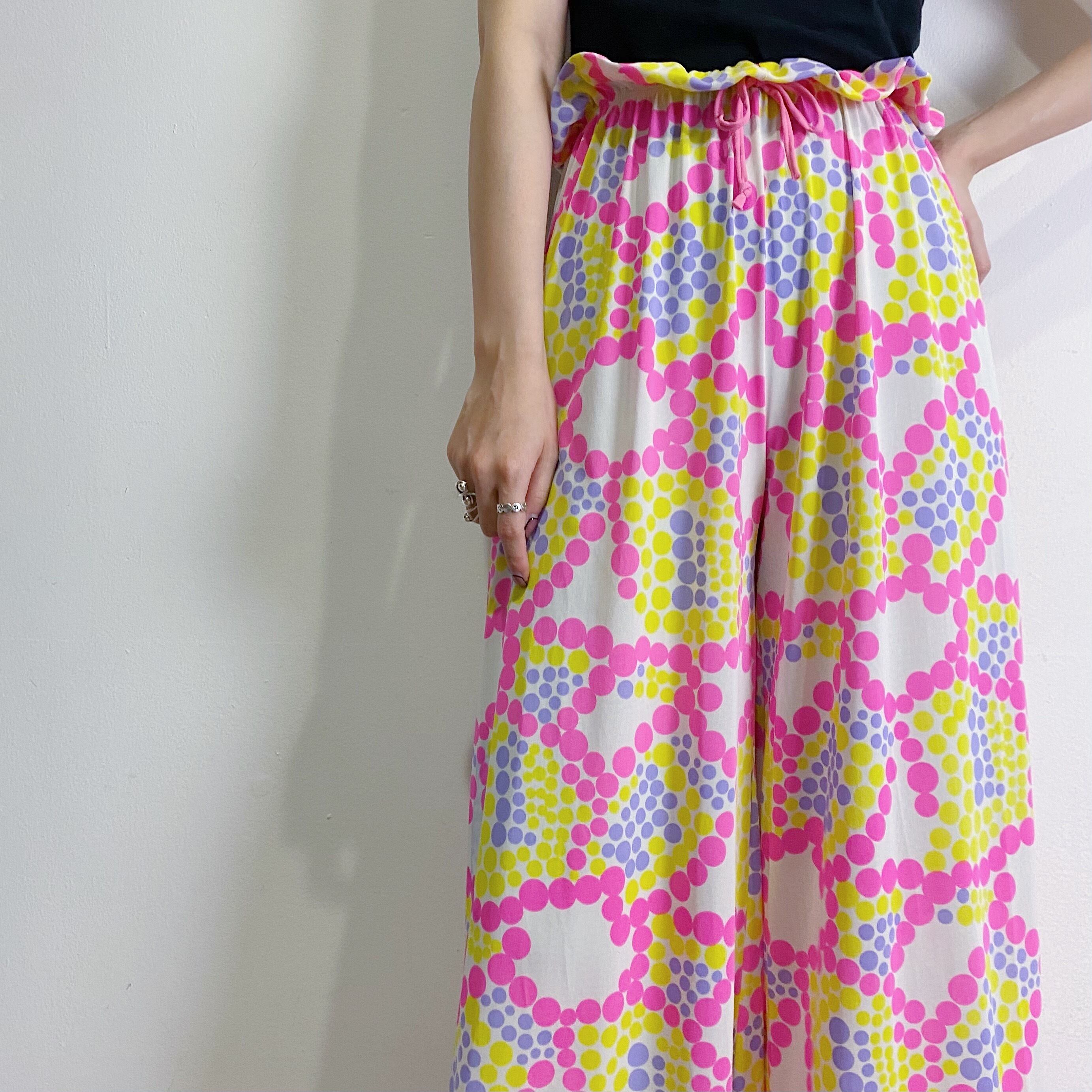 カラフルなドットのようなサイケプリントが可愛い、60~70年代のワイドパンツです。