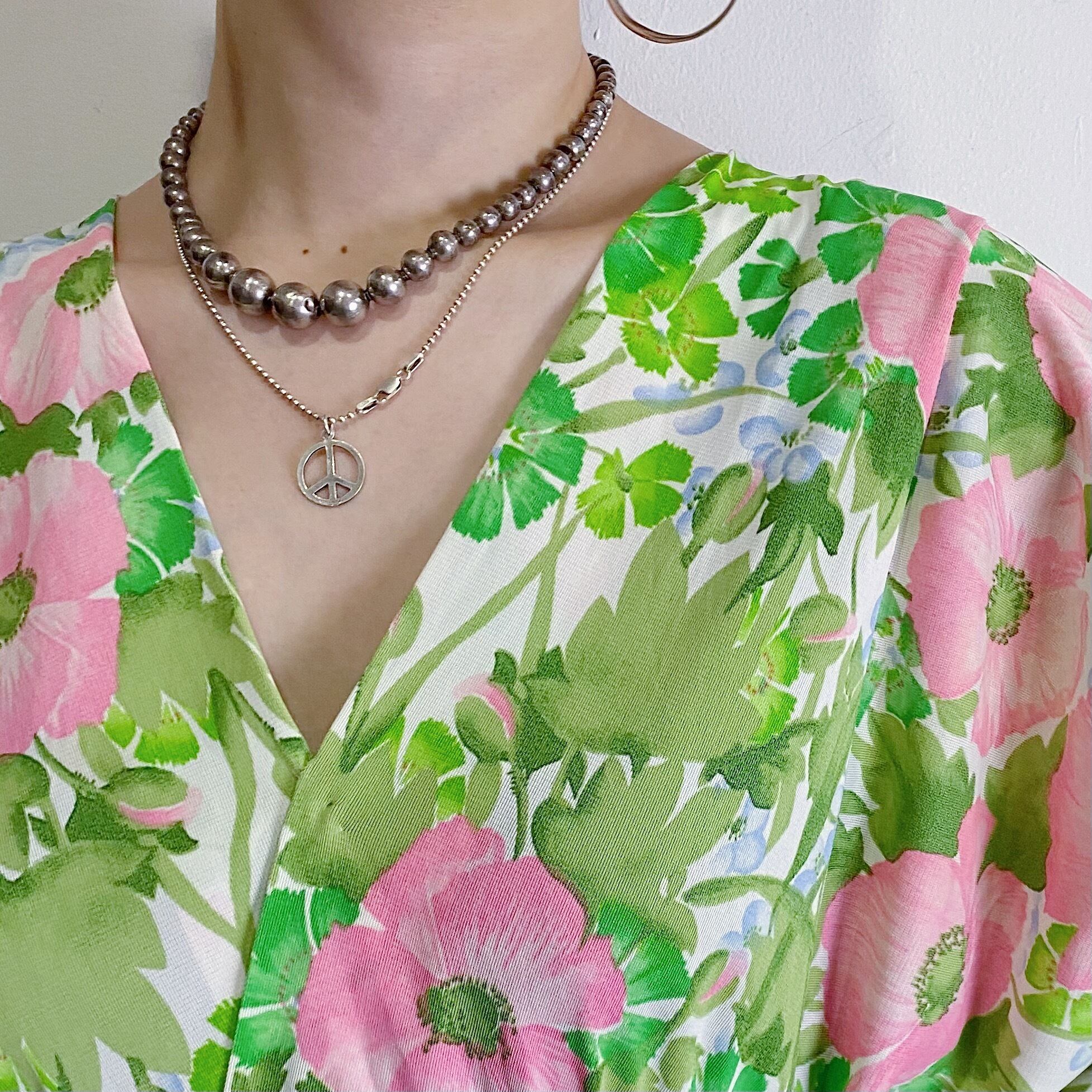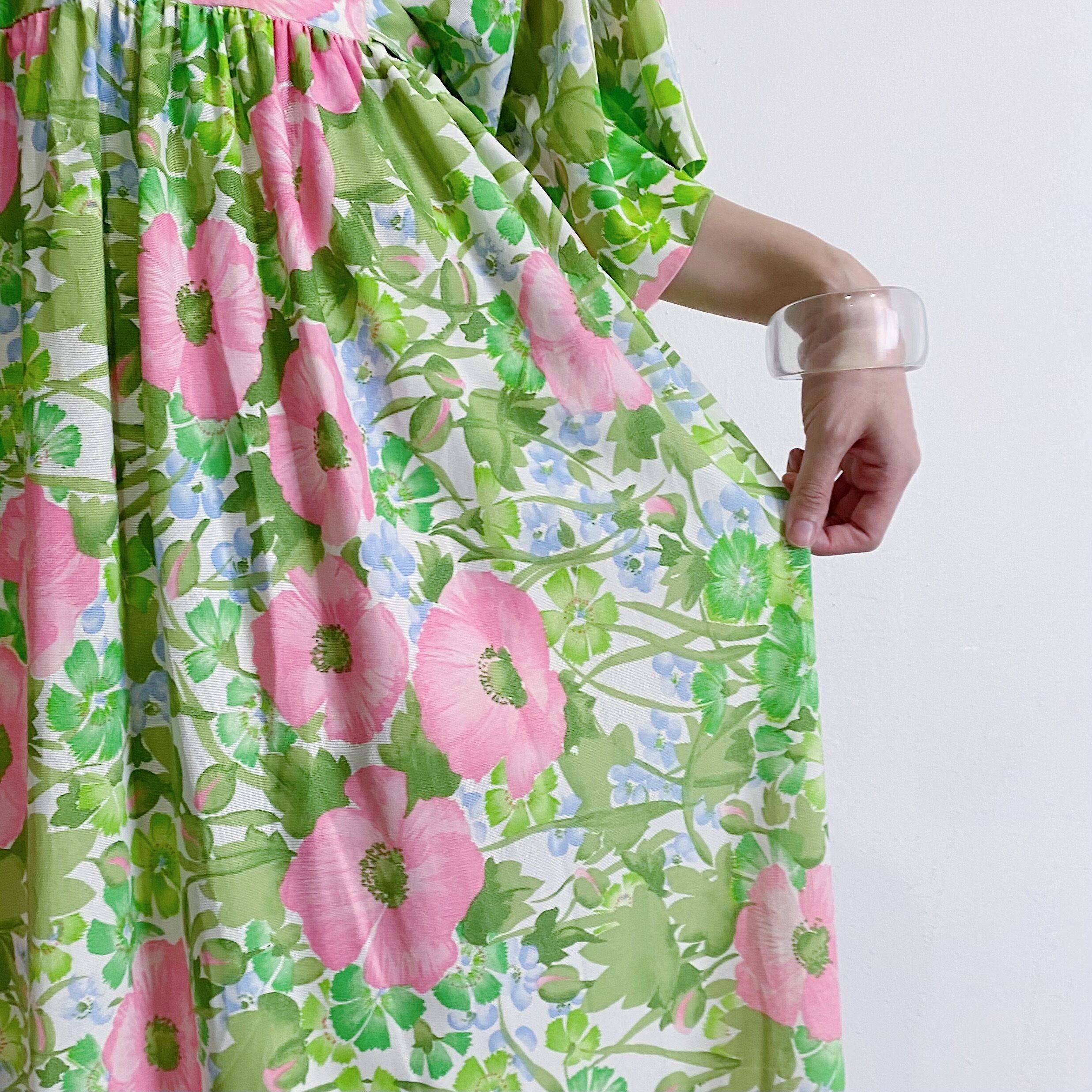 グリーンとピンクの色合いが可愛い、60~70年代のロングワンピースです。