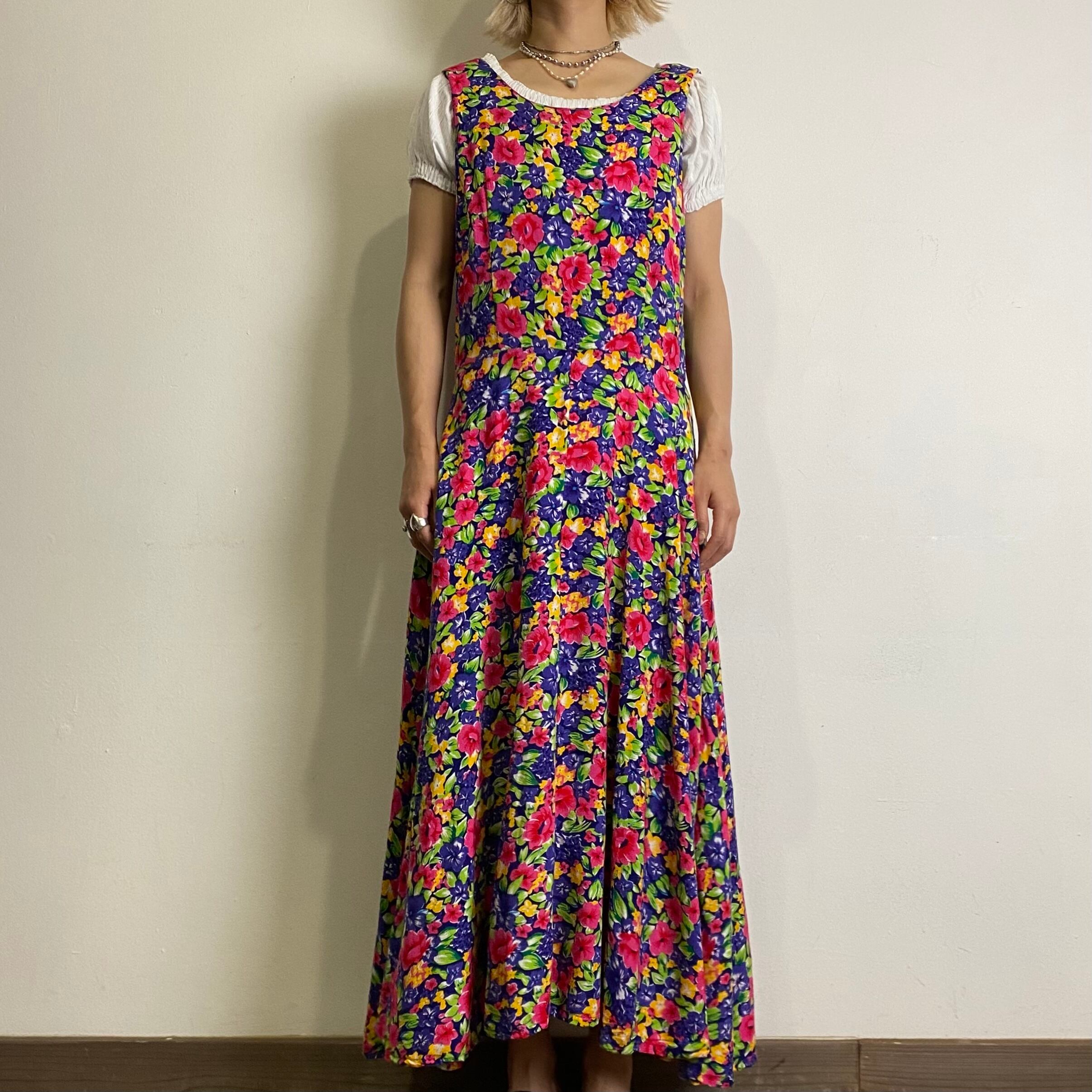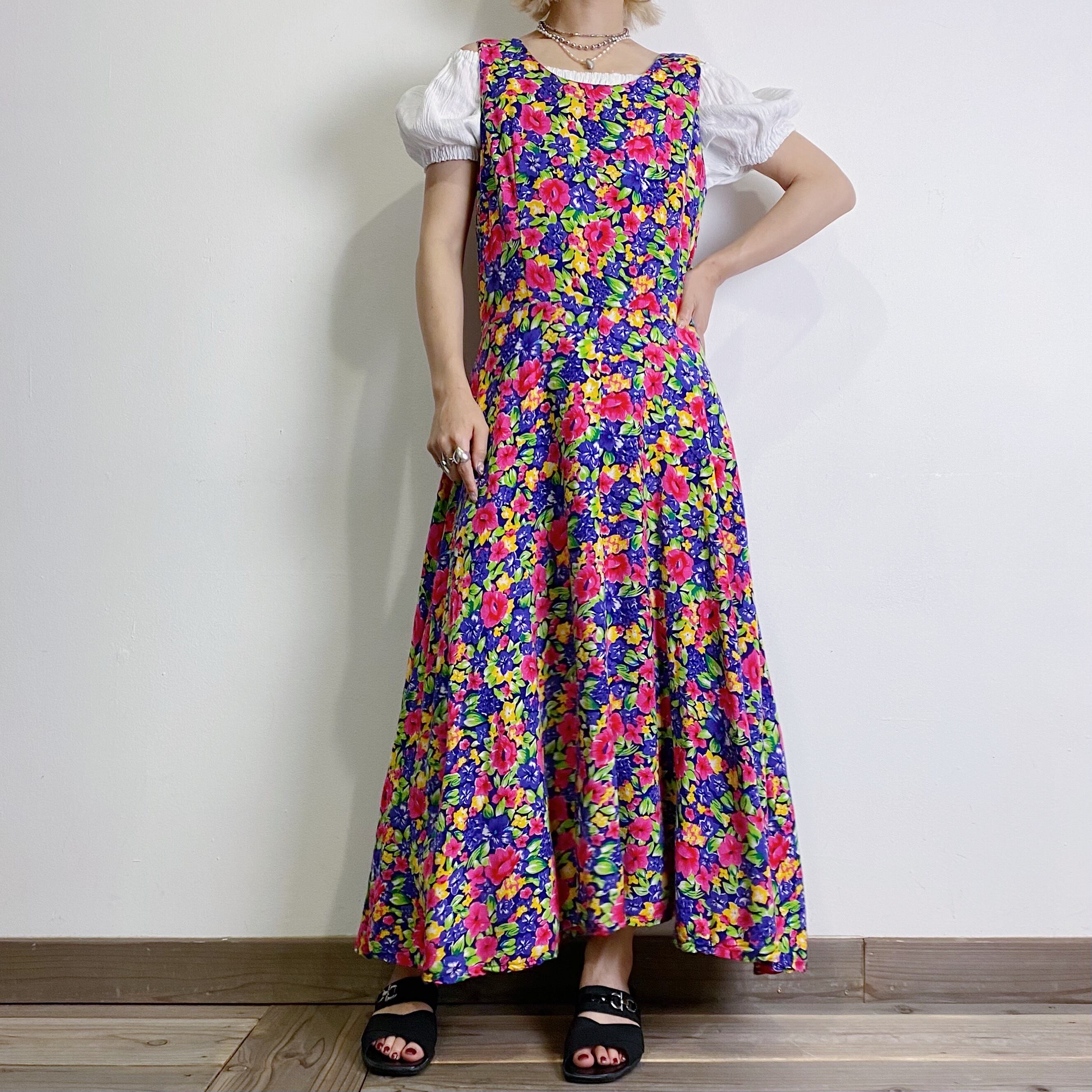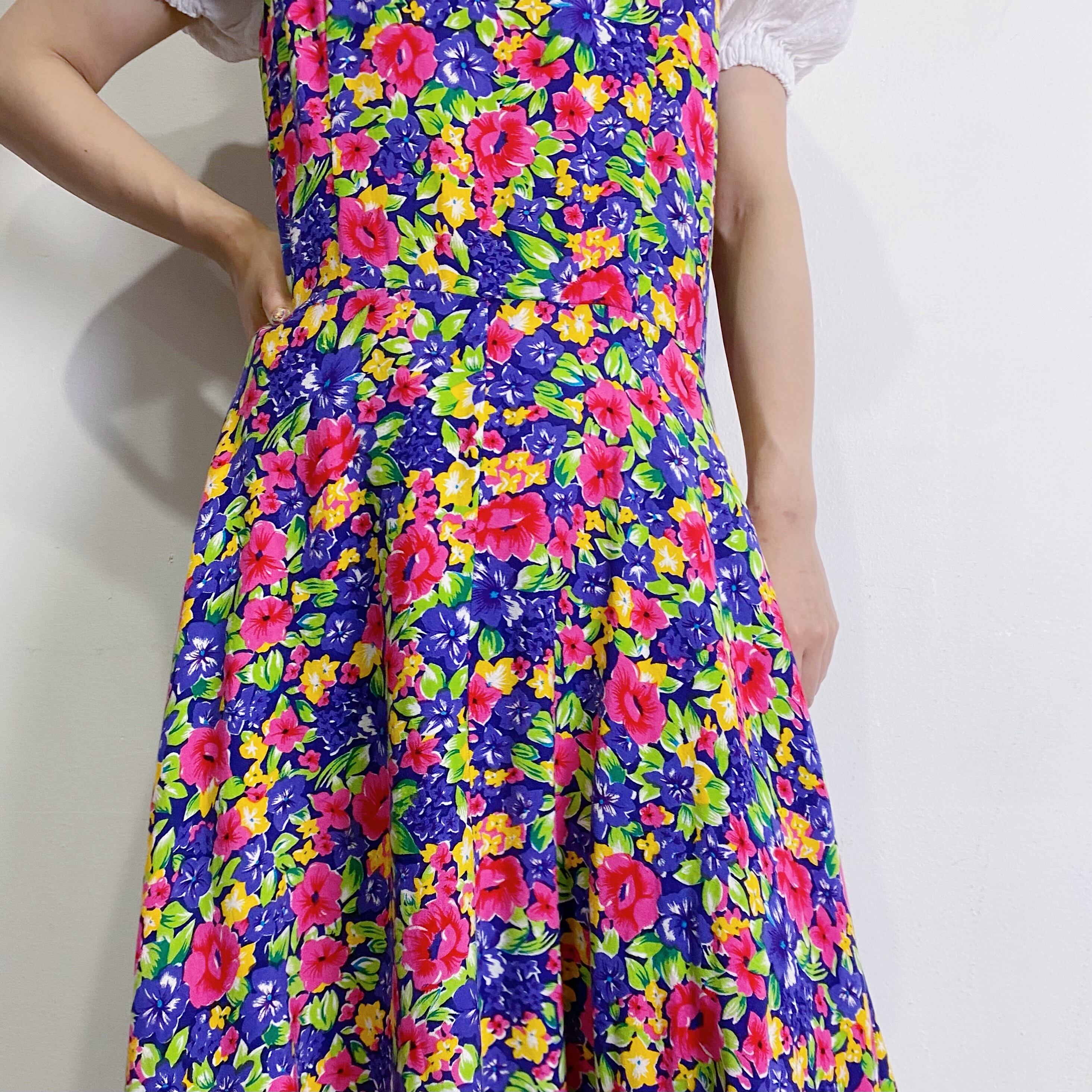 カラフルな花柄が可愛い、80年代ワンピースです。