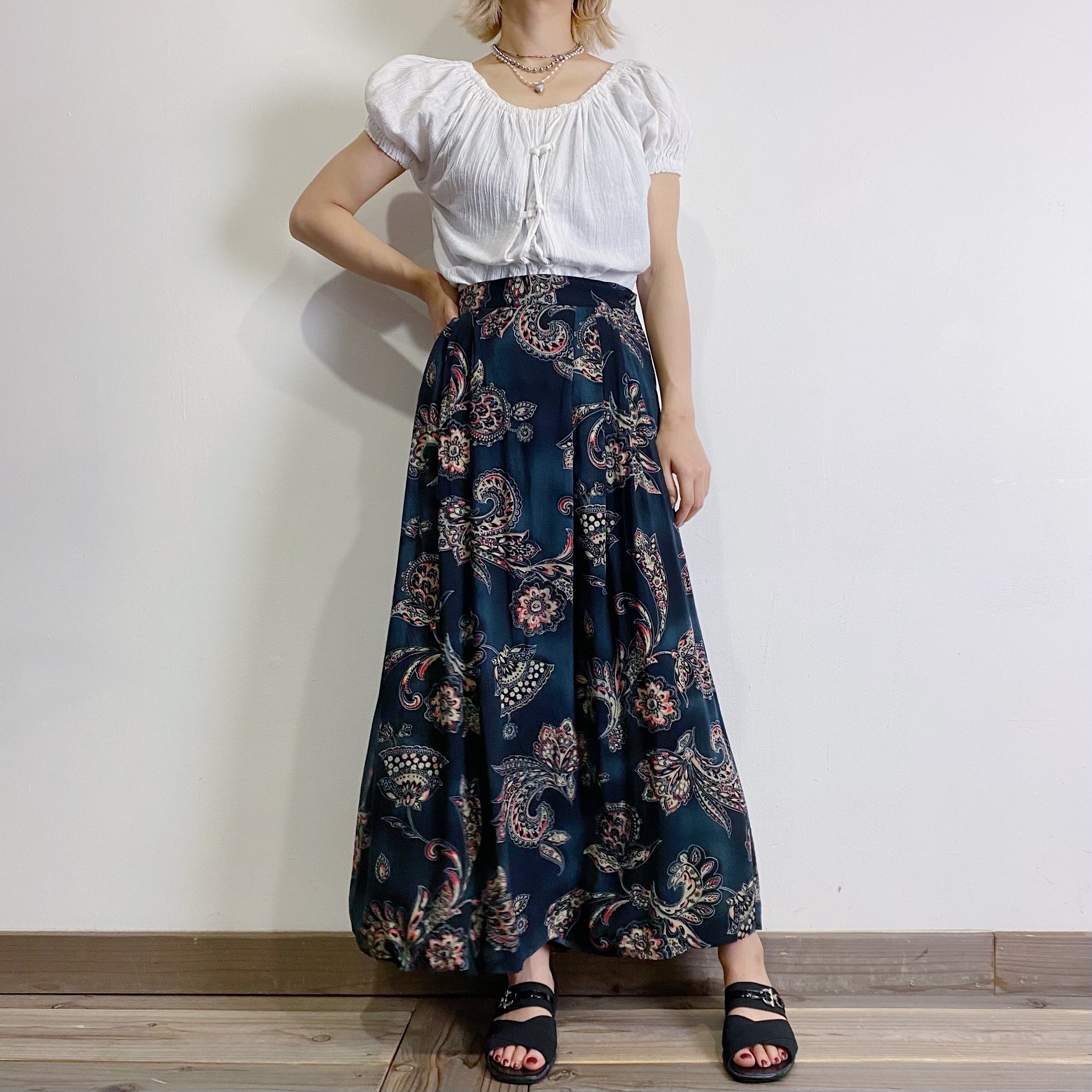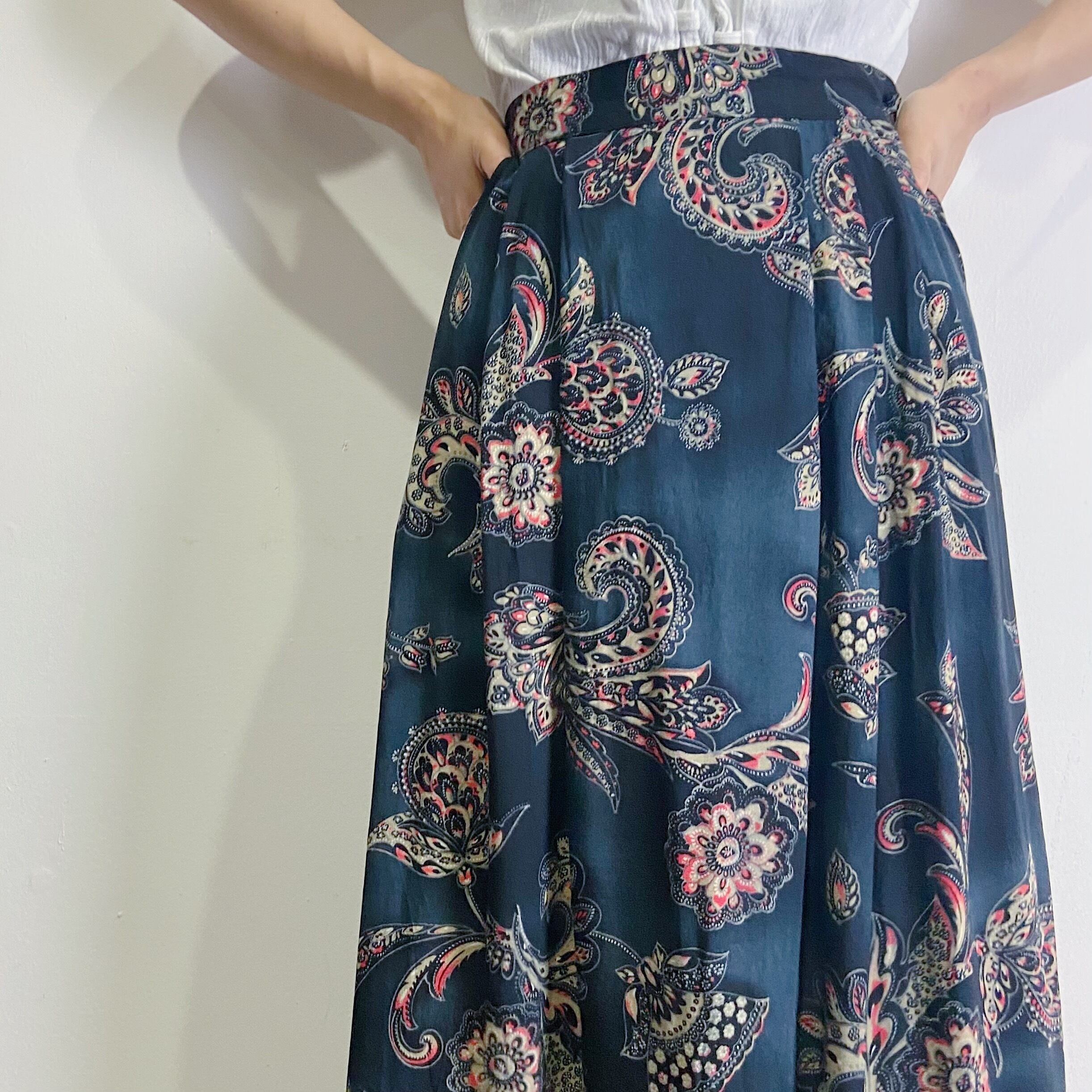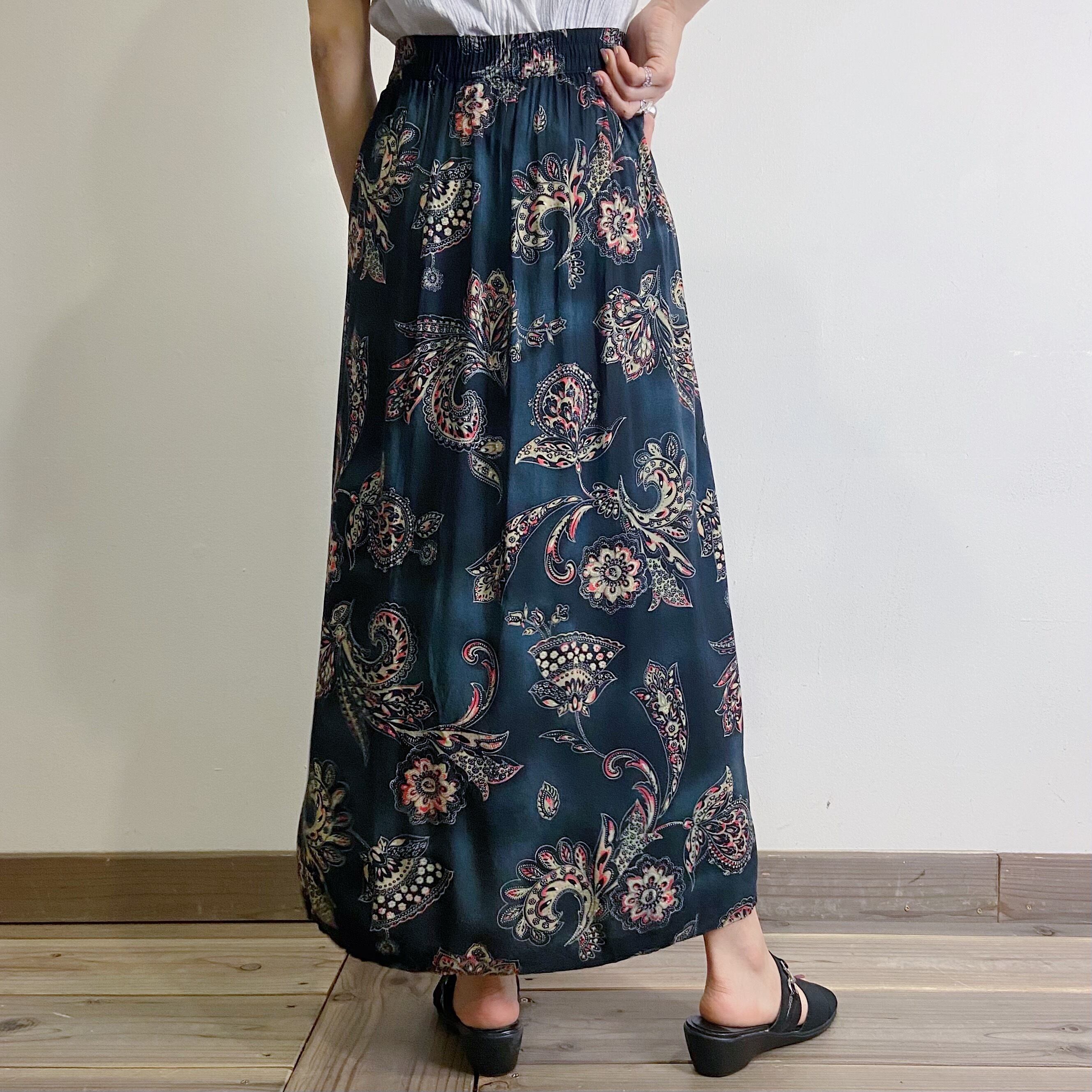 大人っぽい花柄が可愛い、ロング丈のレーヨンスカートです。