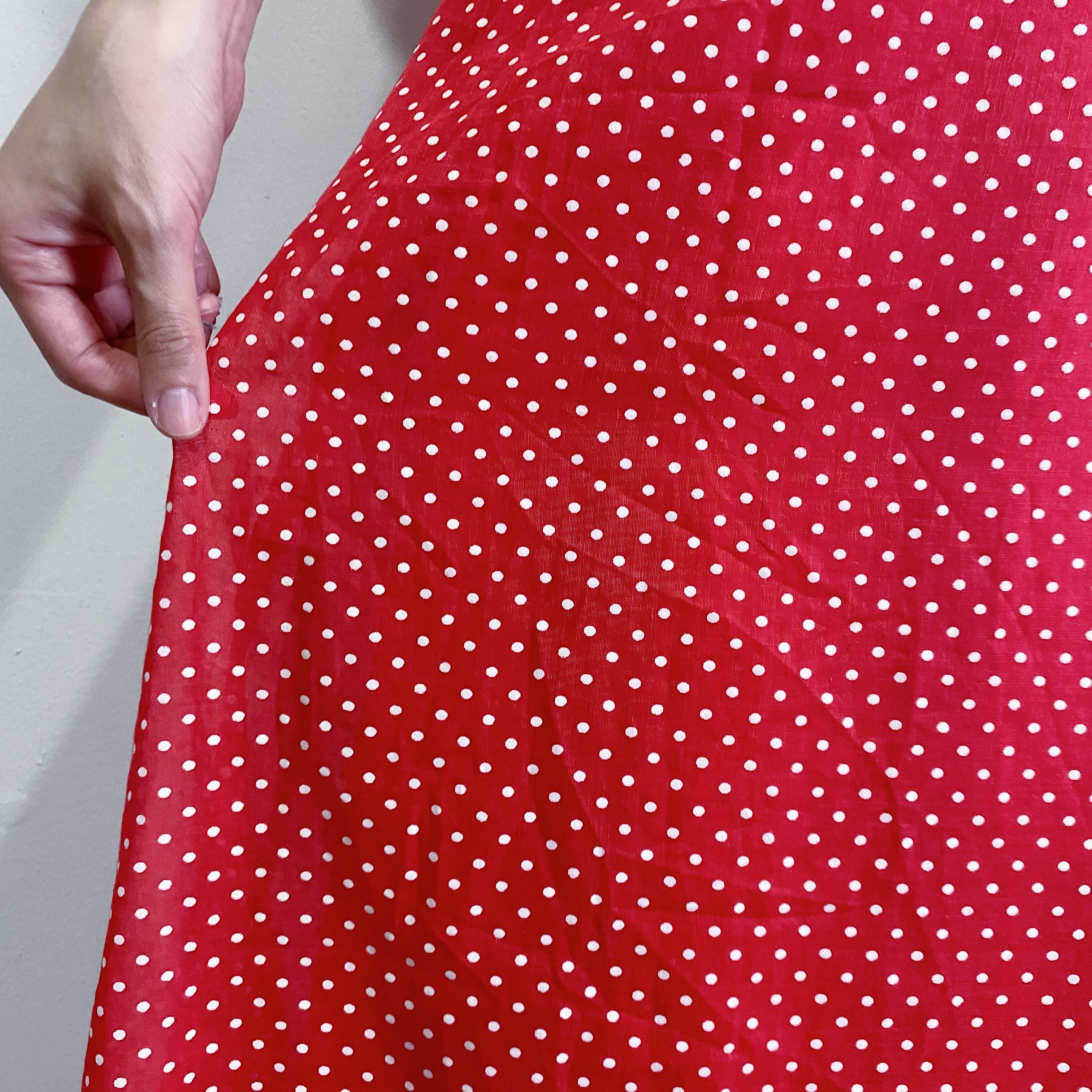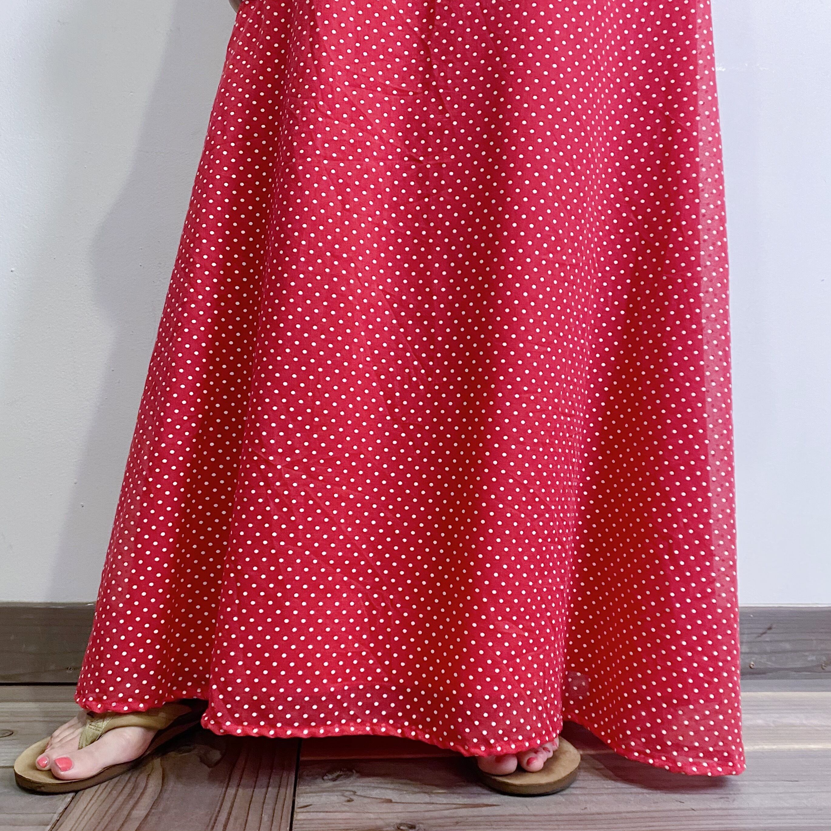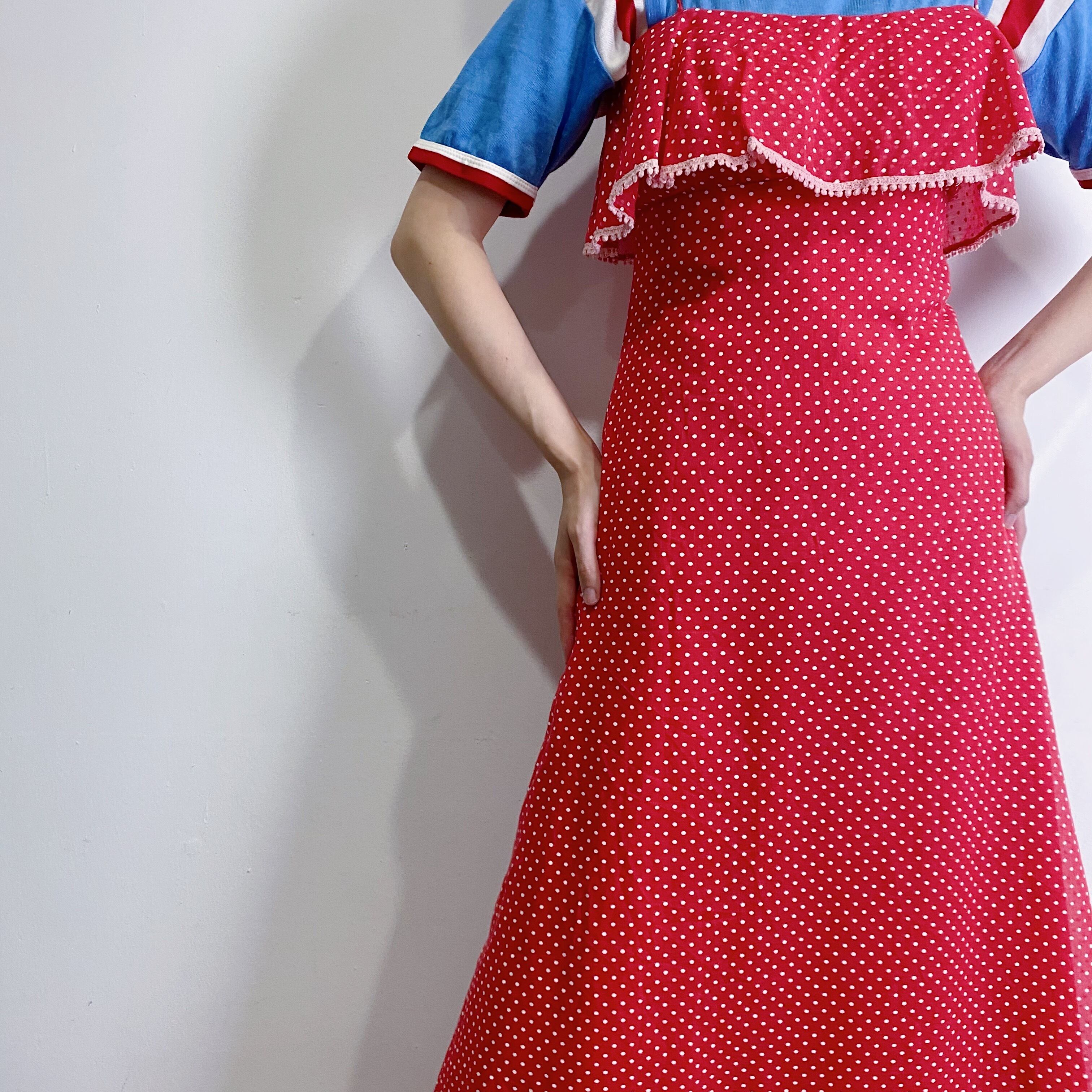 ピンドットのキャミとフリルが可愛い、70年代ワンピースです。