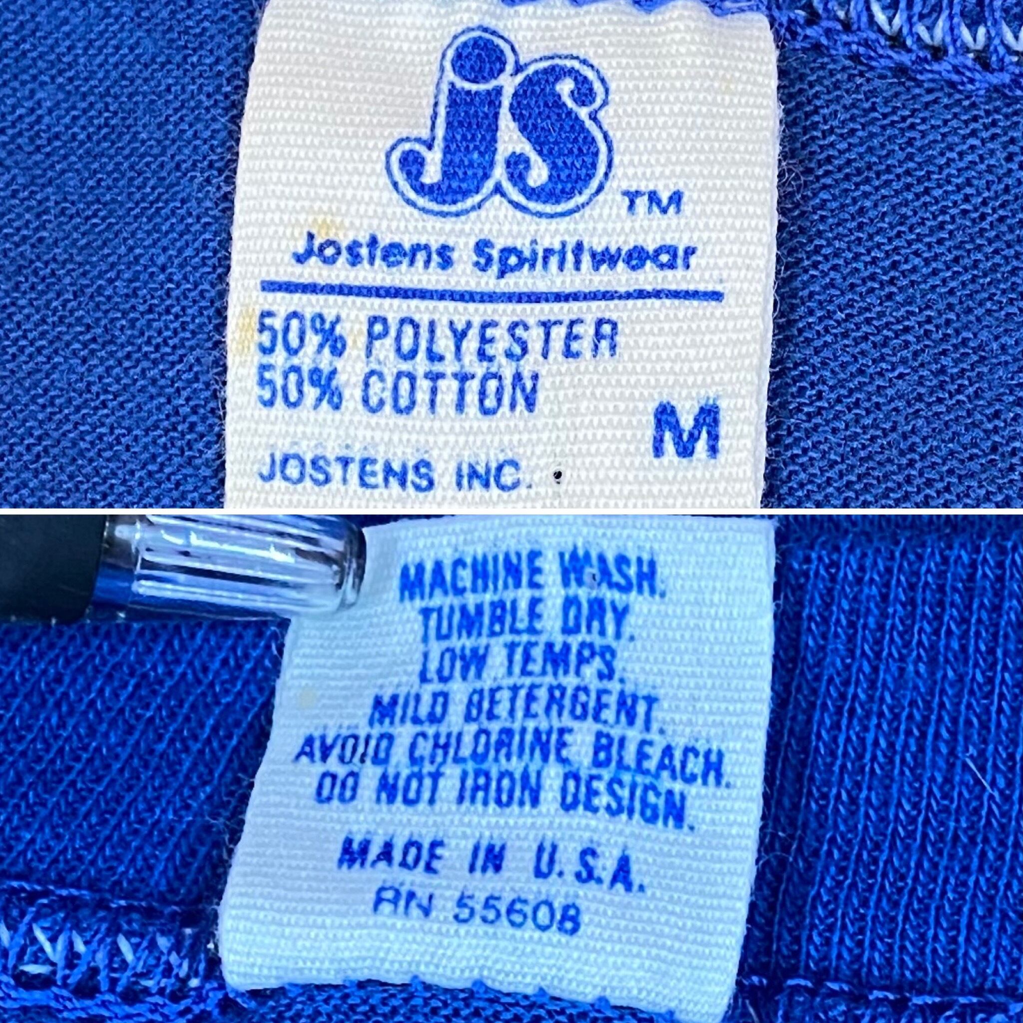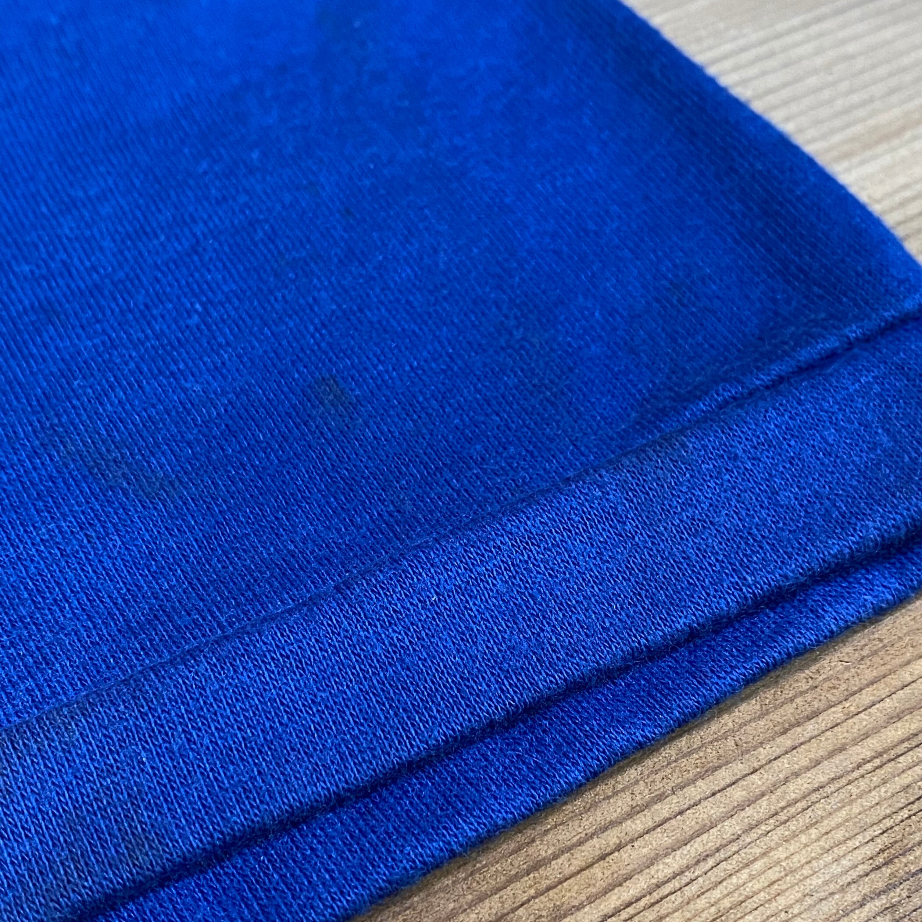 青に黄色のプリントが可愛い、程よいサイズ感の80年代のTシャツです。