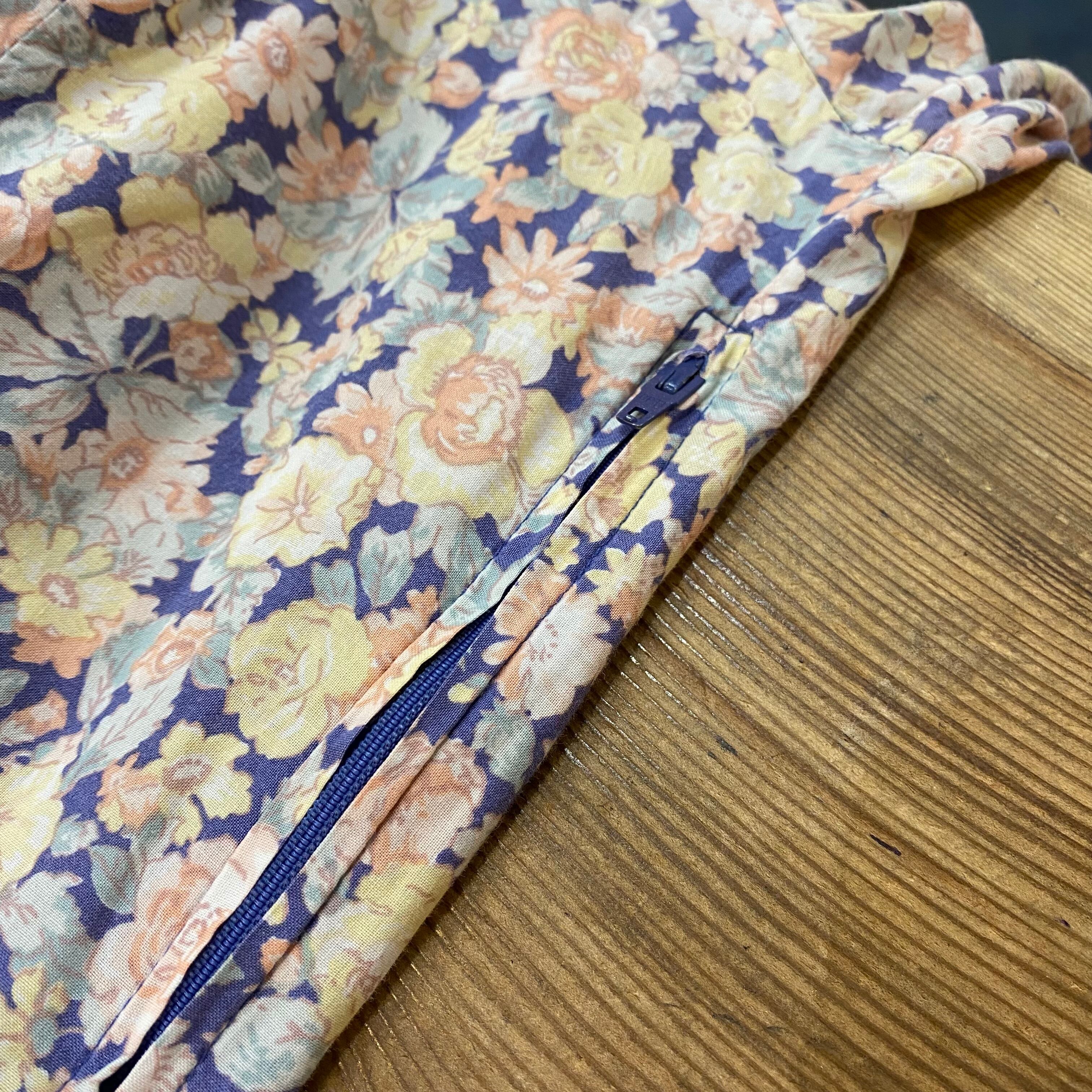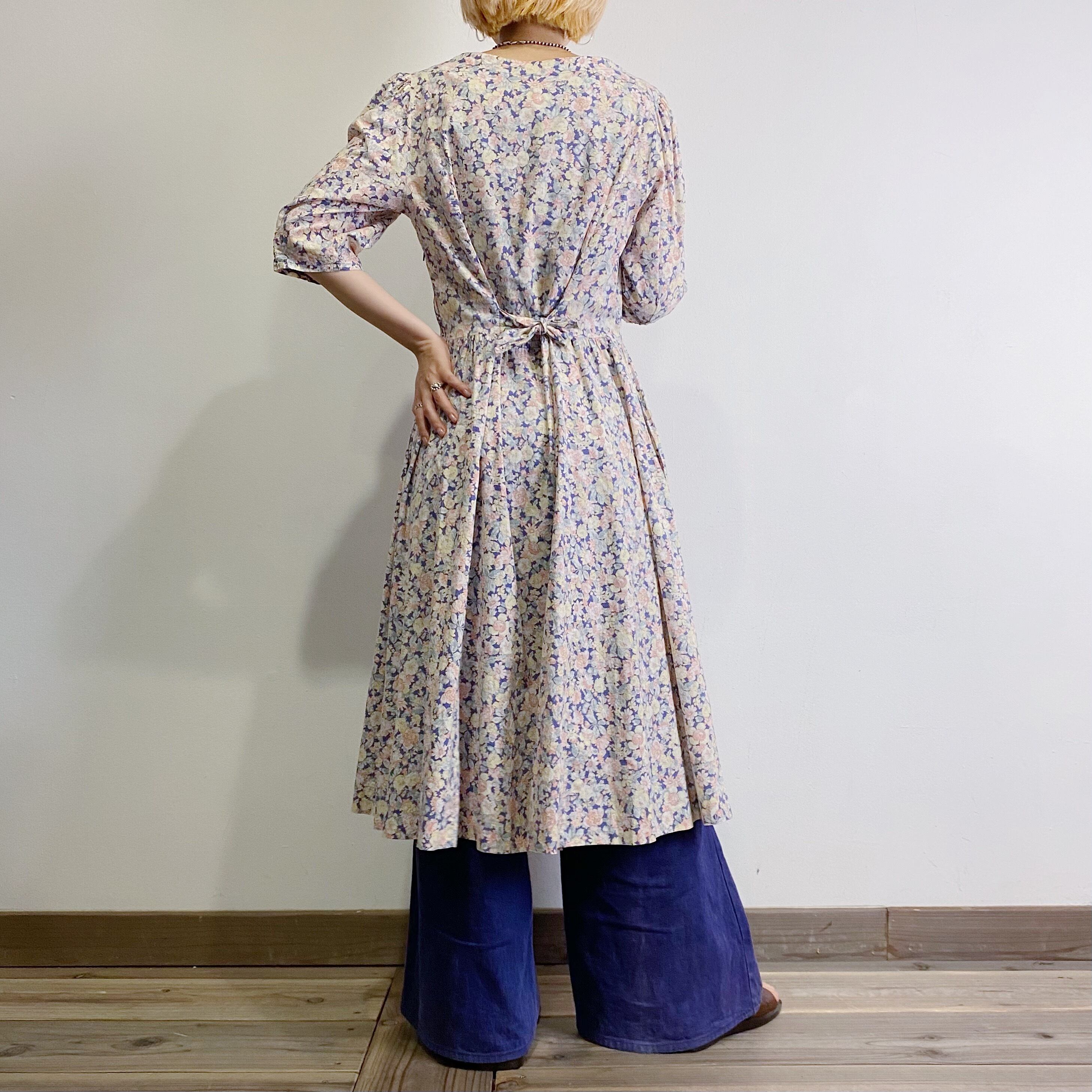 上品なリバティプリントに控え目なパフスリーブ、バックの小さなリボンがローラアシュレーさたっぷりな一枚。
