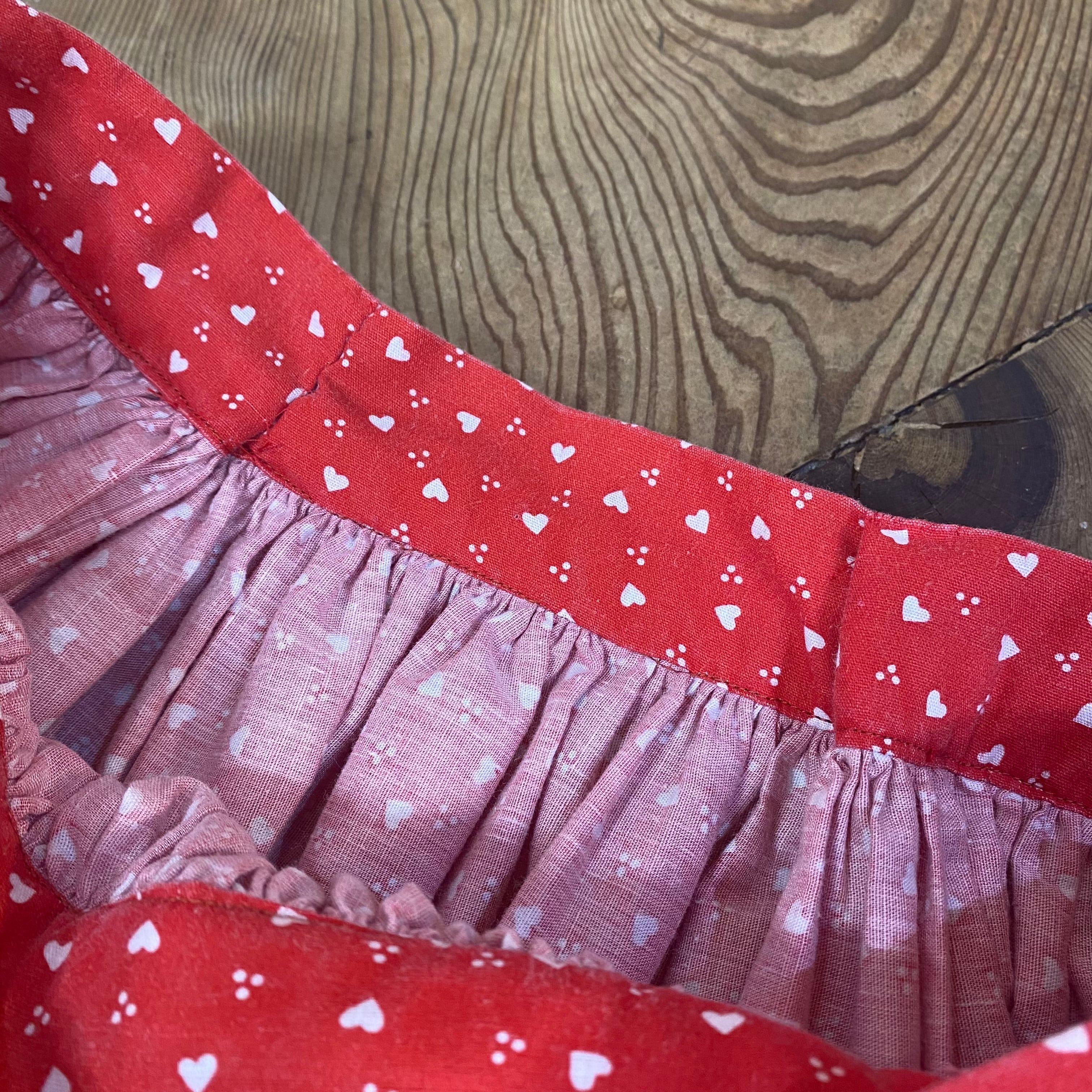 赤と白の色合いが可愛く、裾付近の山波テープもキュートな一枚。