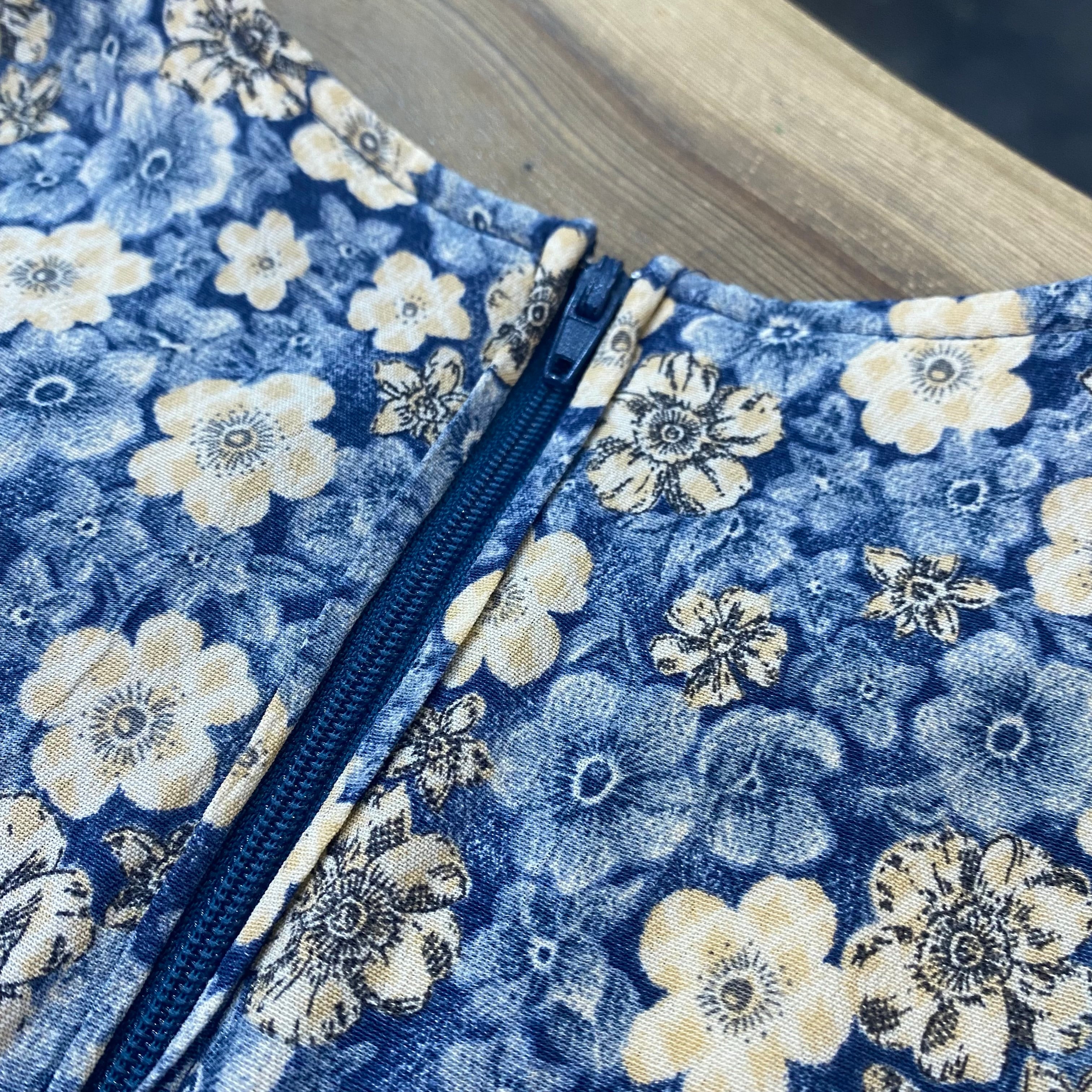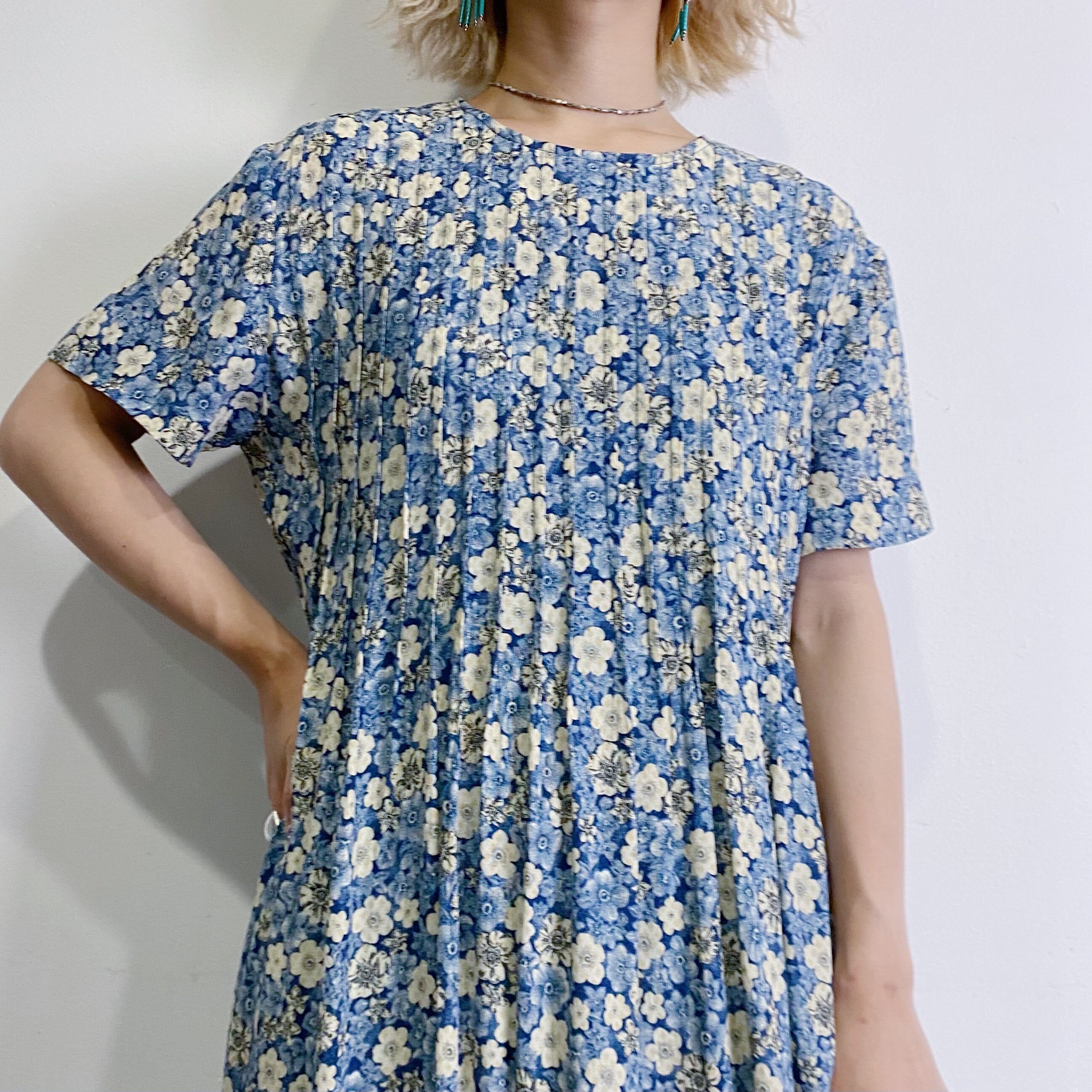 落ち着いた水色カラーが可愛い、花柄レーヨンワンピースです。