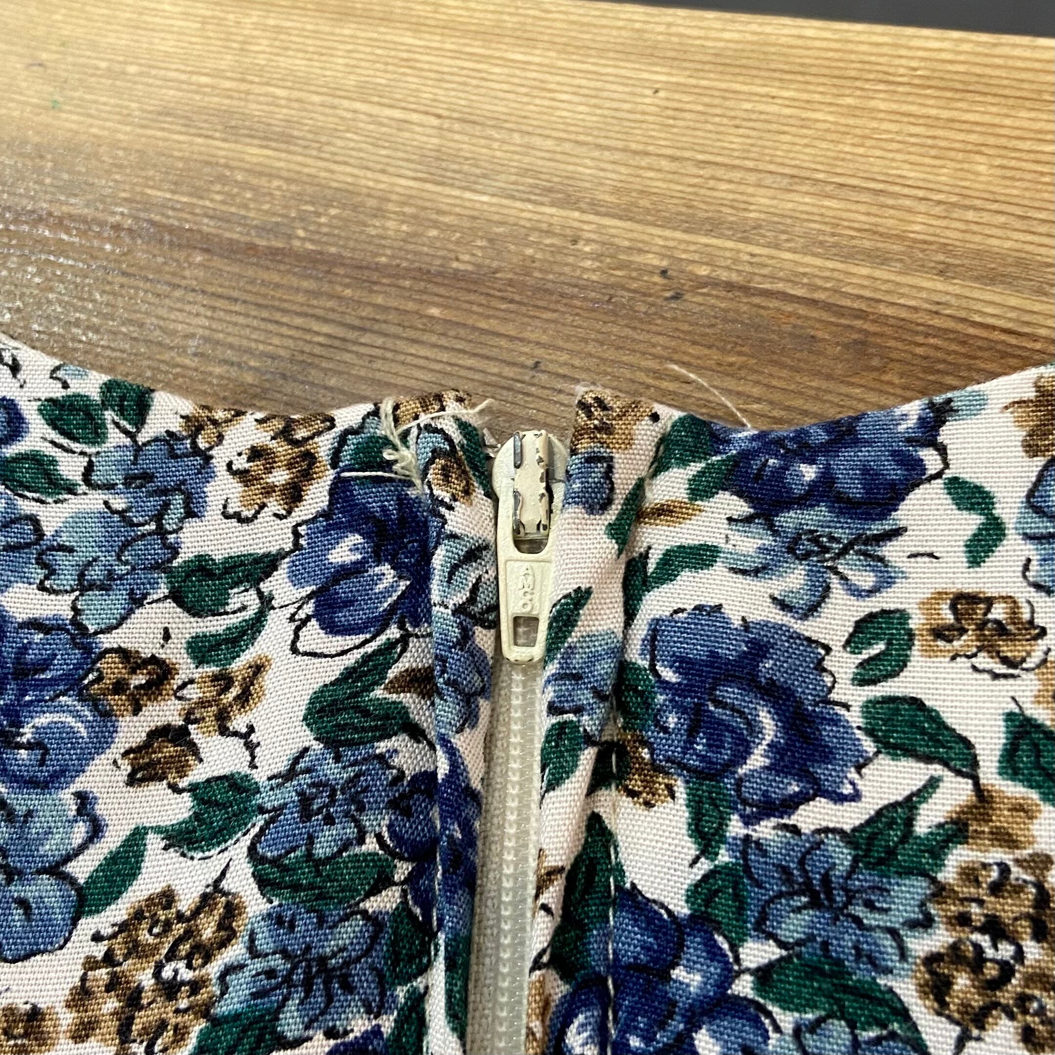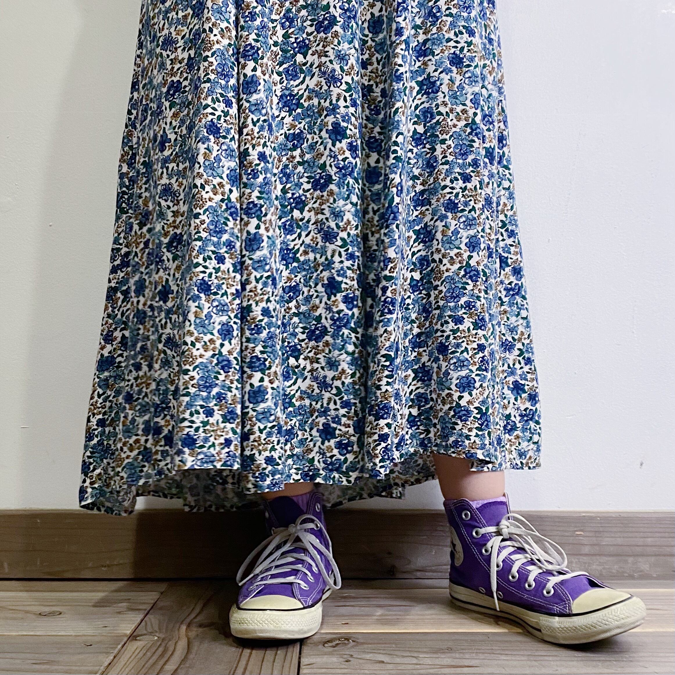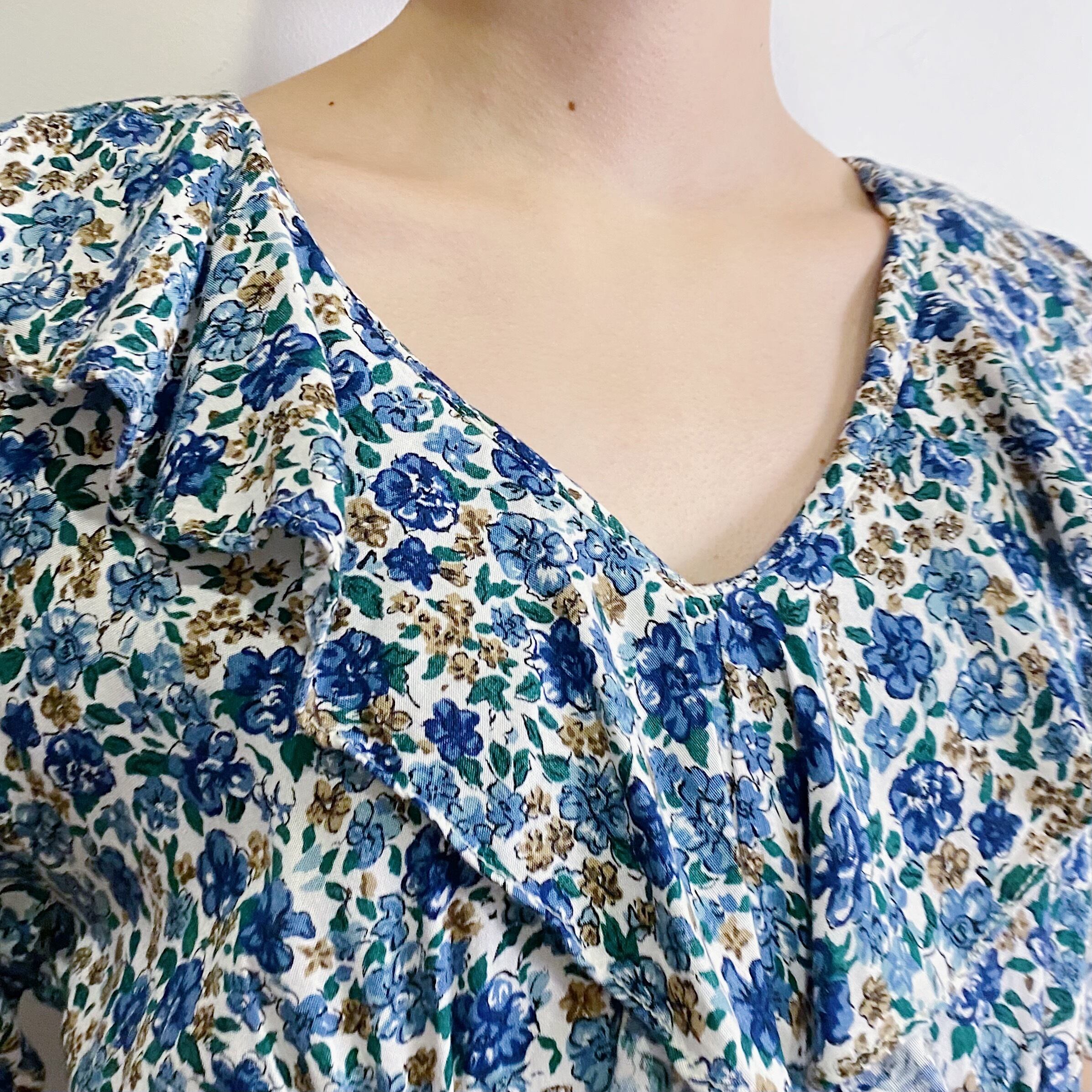 落ち着いたブルーの色味の小花柄が可愛く、デイリーに着こなしやすそうな一枚。