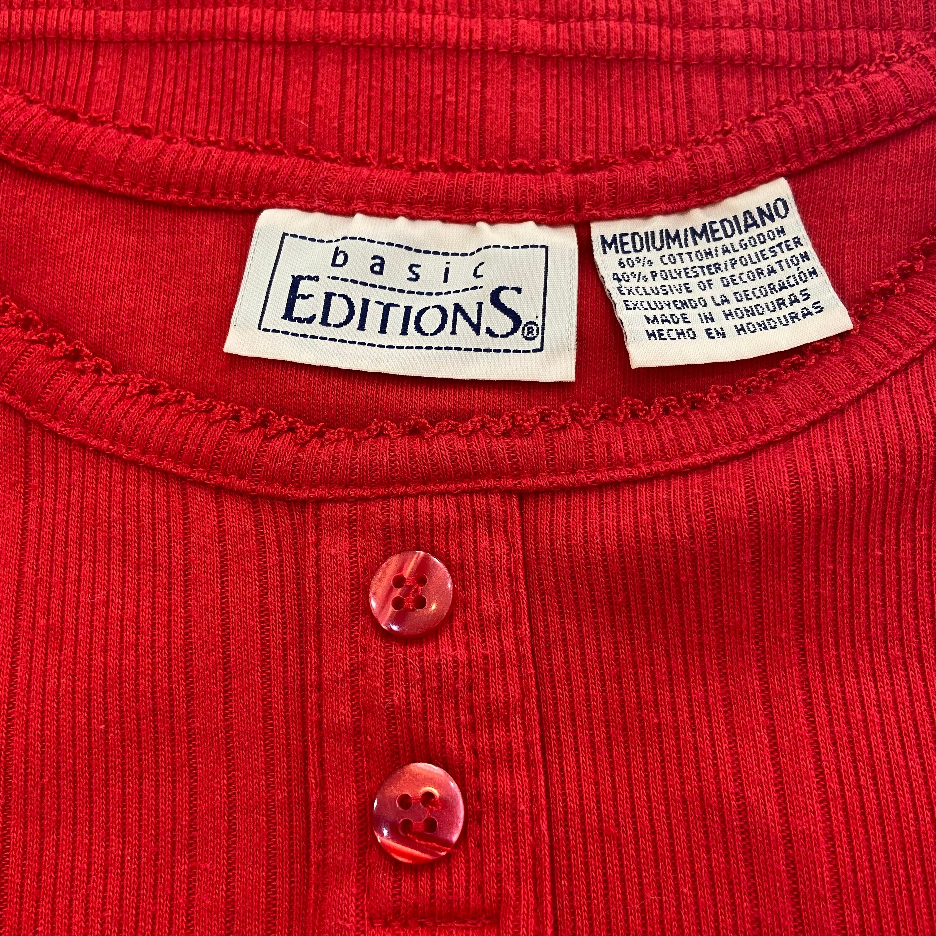 カットソー生地にヘンリーネックでカジュアル可愛い一枚。