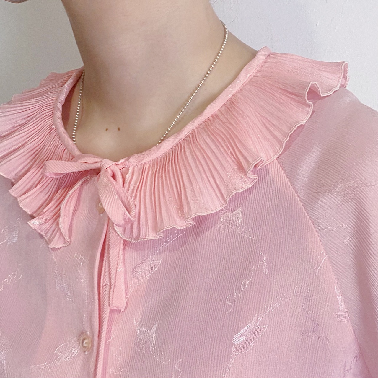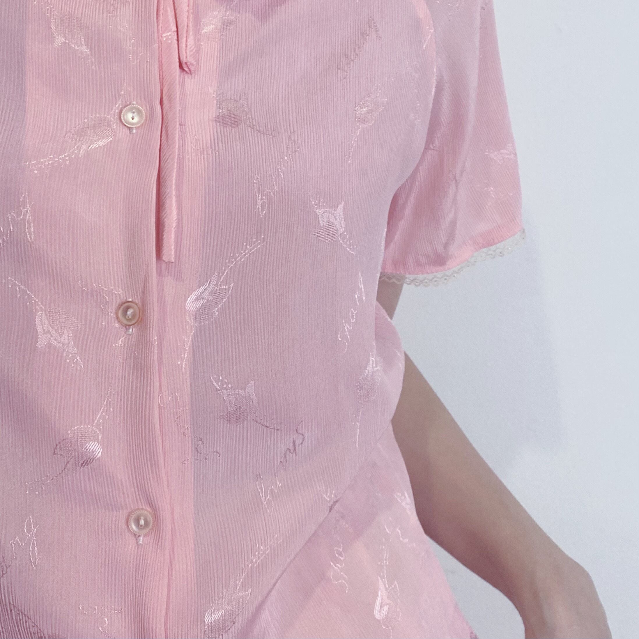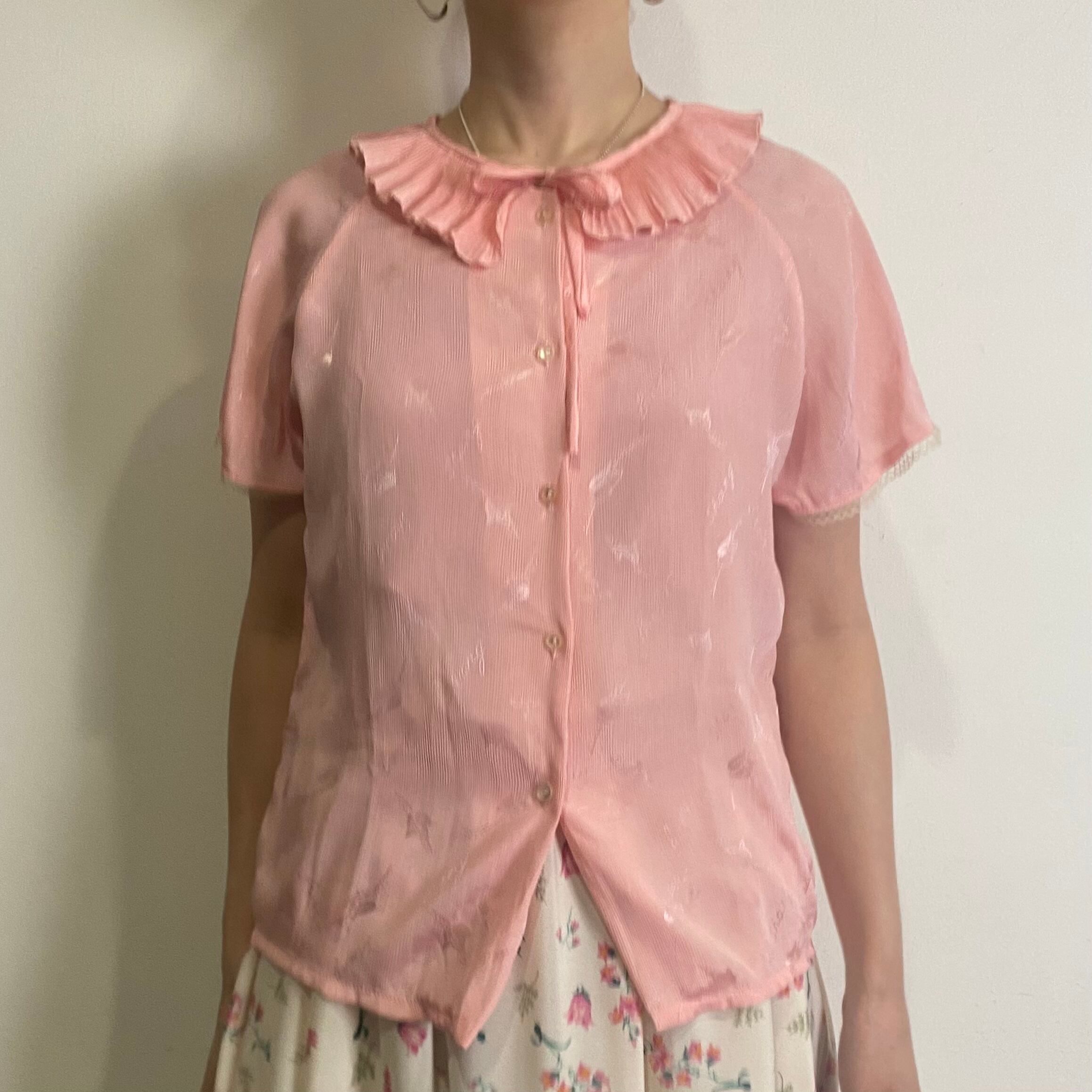 80年代らしいファンシーなピンクがポイントになるブラウスです。