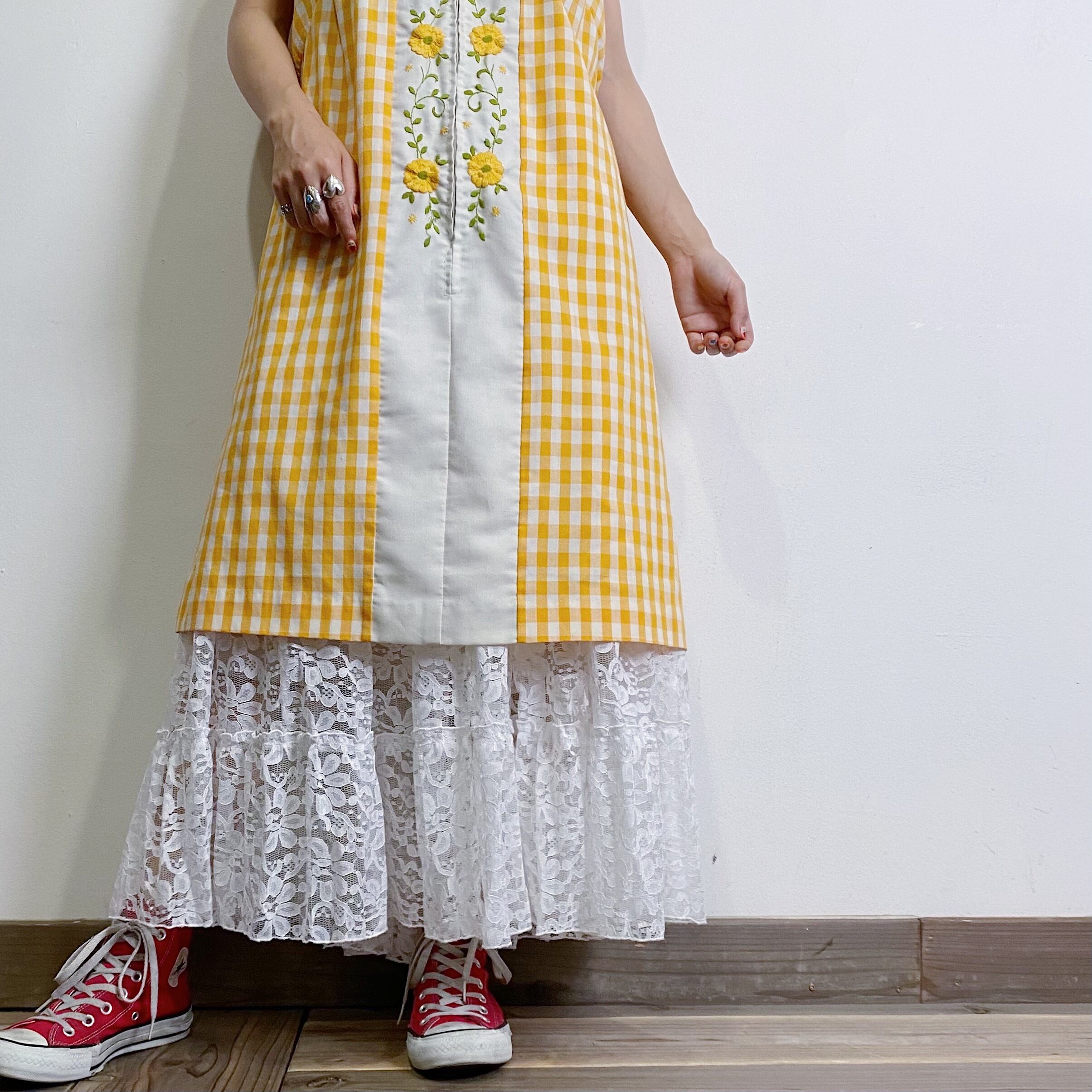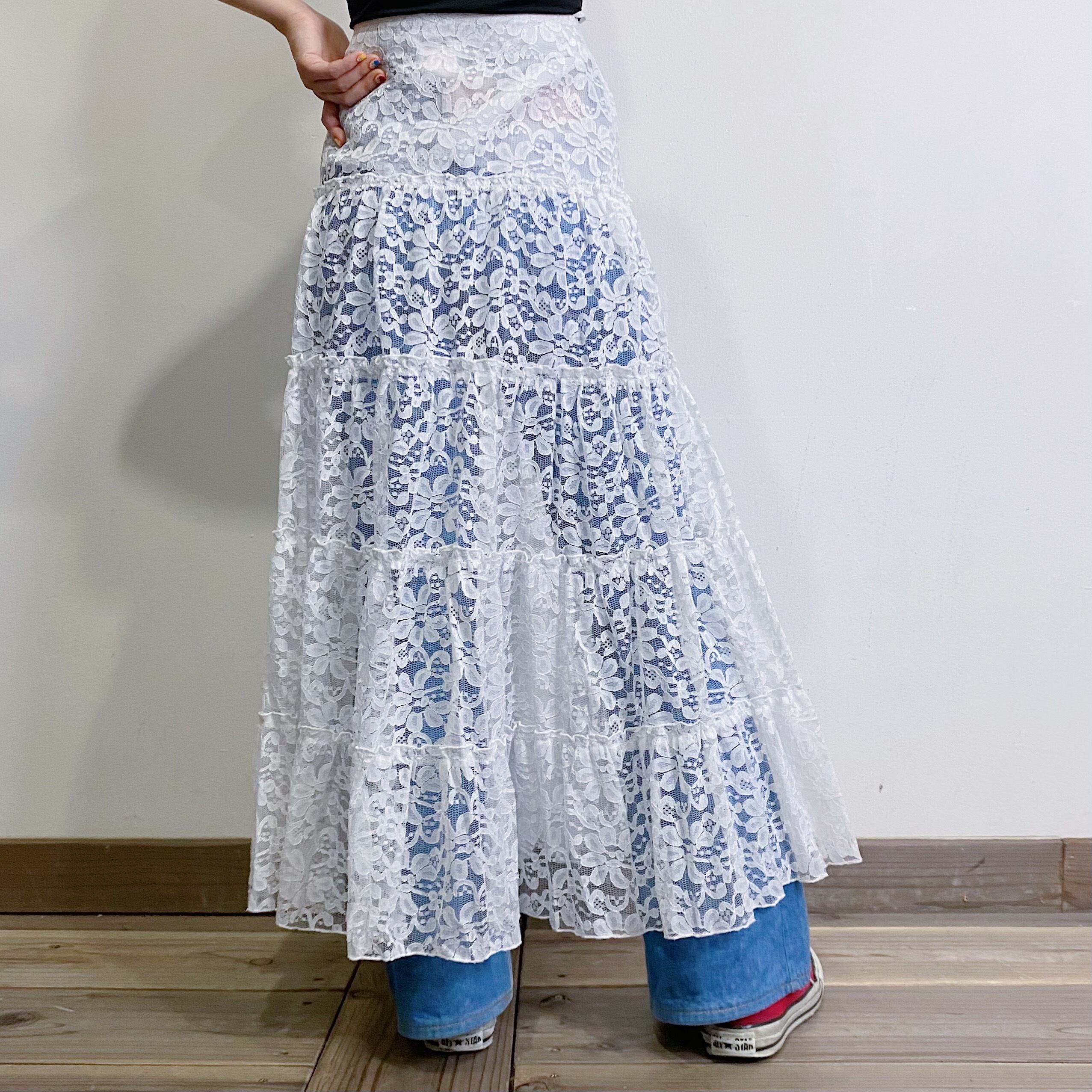 使い勝手が良さそうな、総レースのティアードロングスカートです。