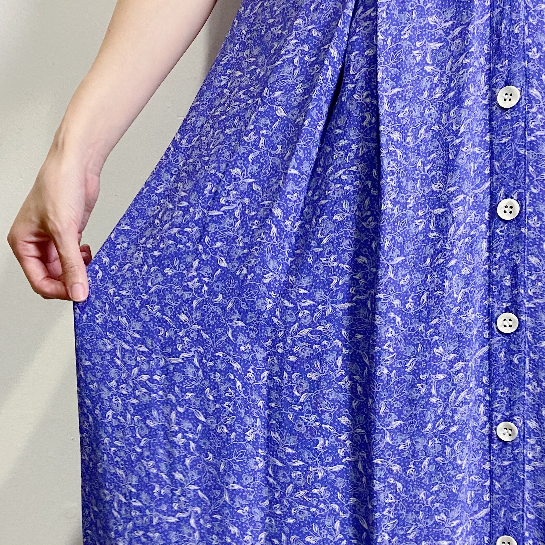 リーフ柄が可愛い、パープルカラーのシャツ型レーヨンワンピースです。