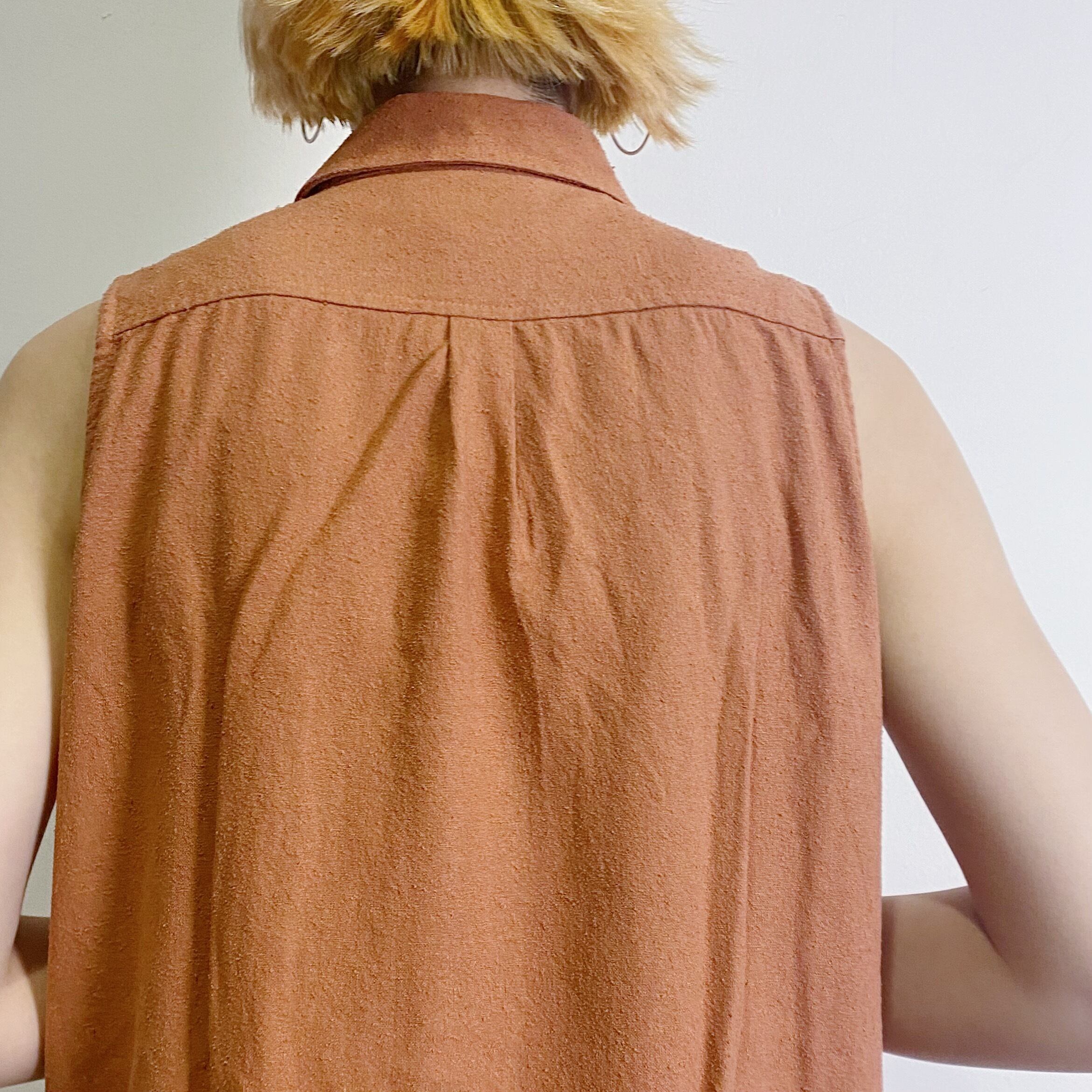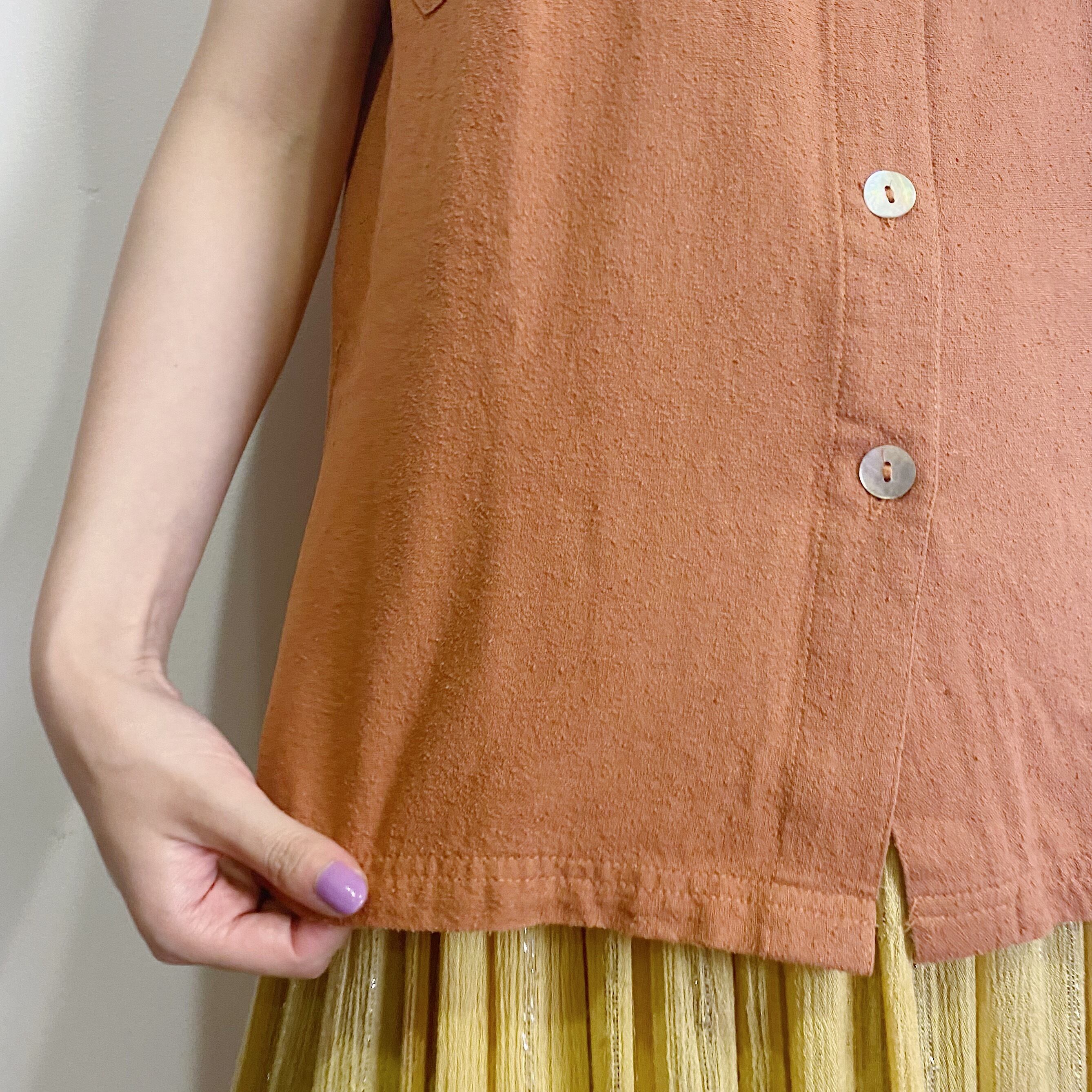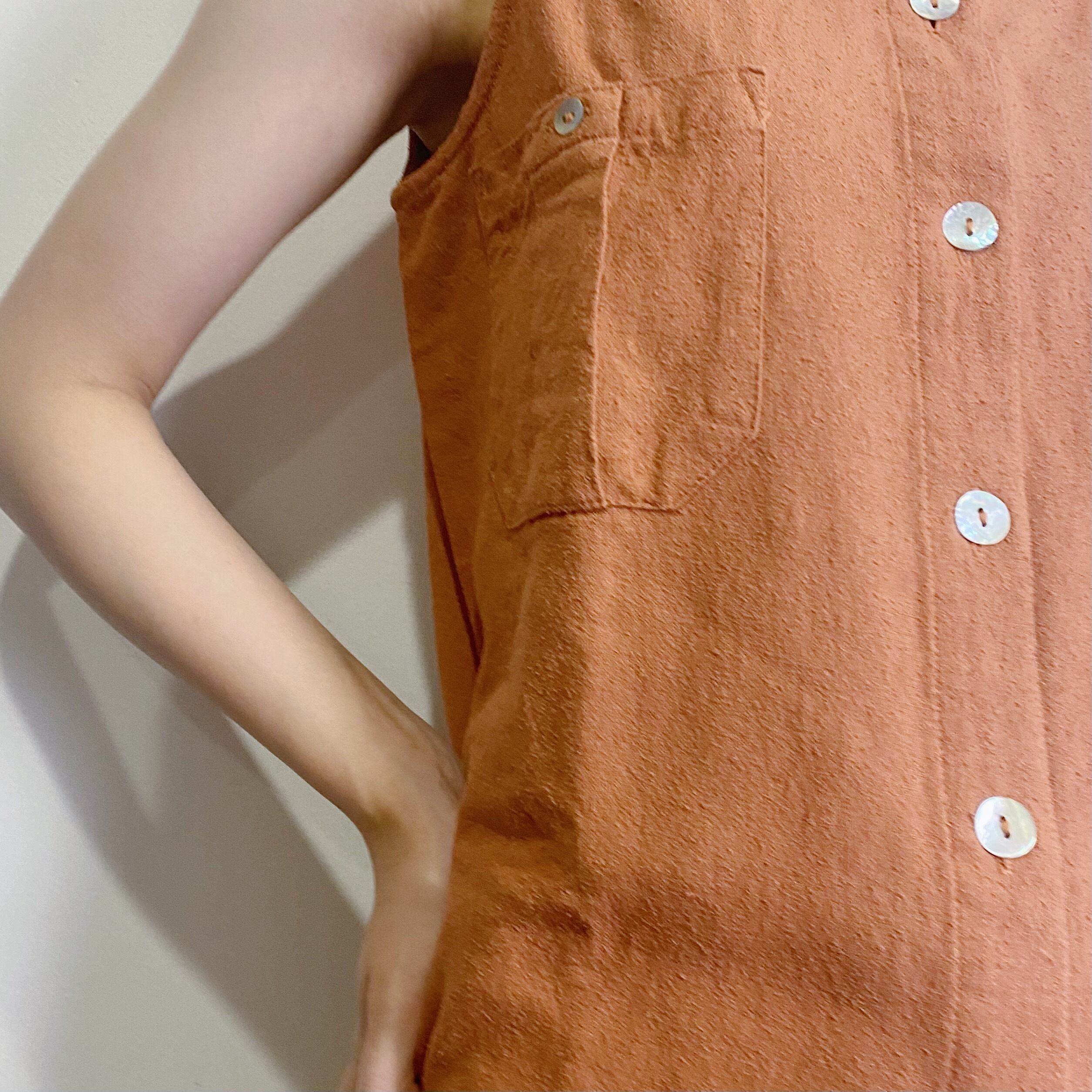 リネン素材のこっくりブラウンが可愛いノースリーブシャツです。