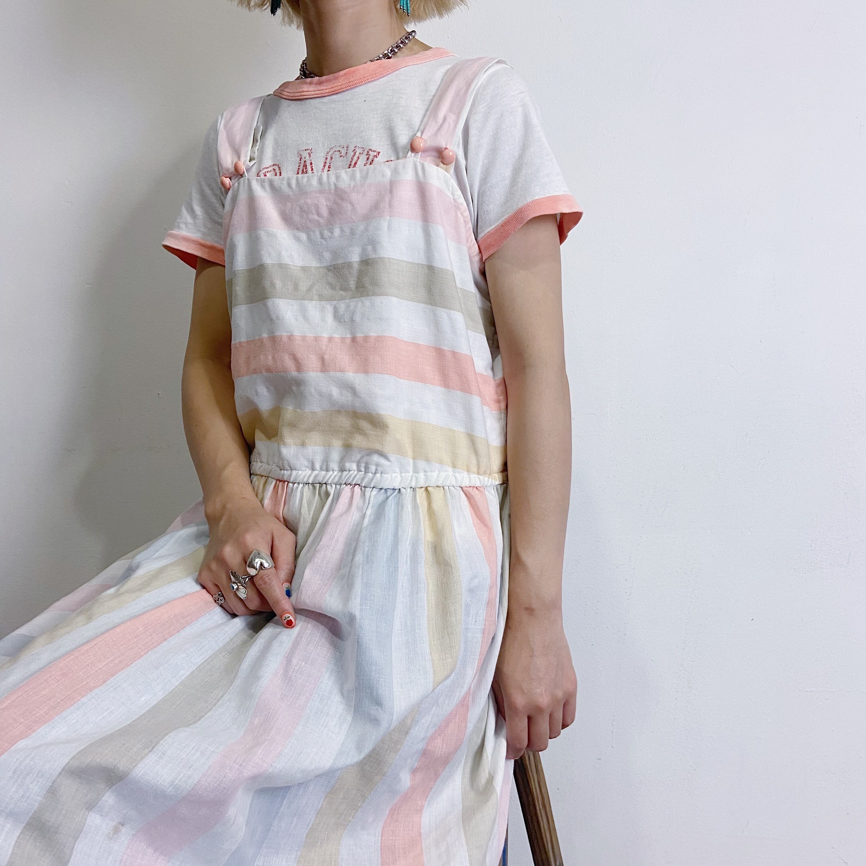 80年代の、キャンディストライプな雰囲気が可愛いジャンパーワンピースです。