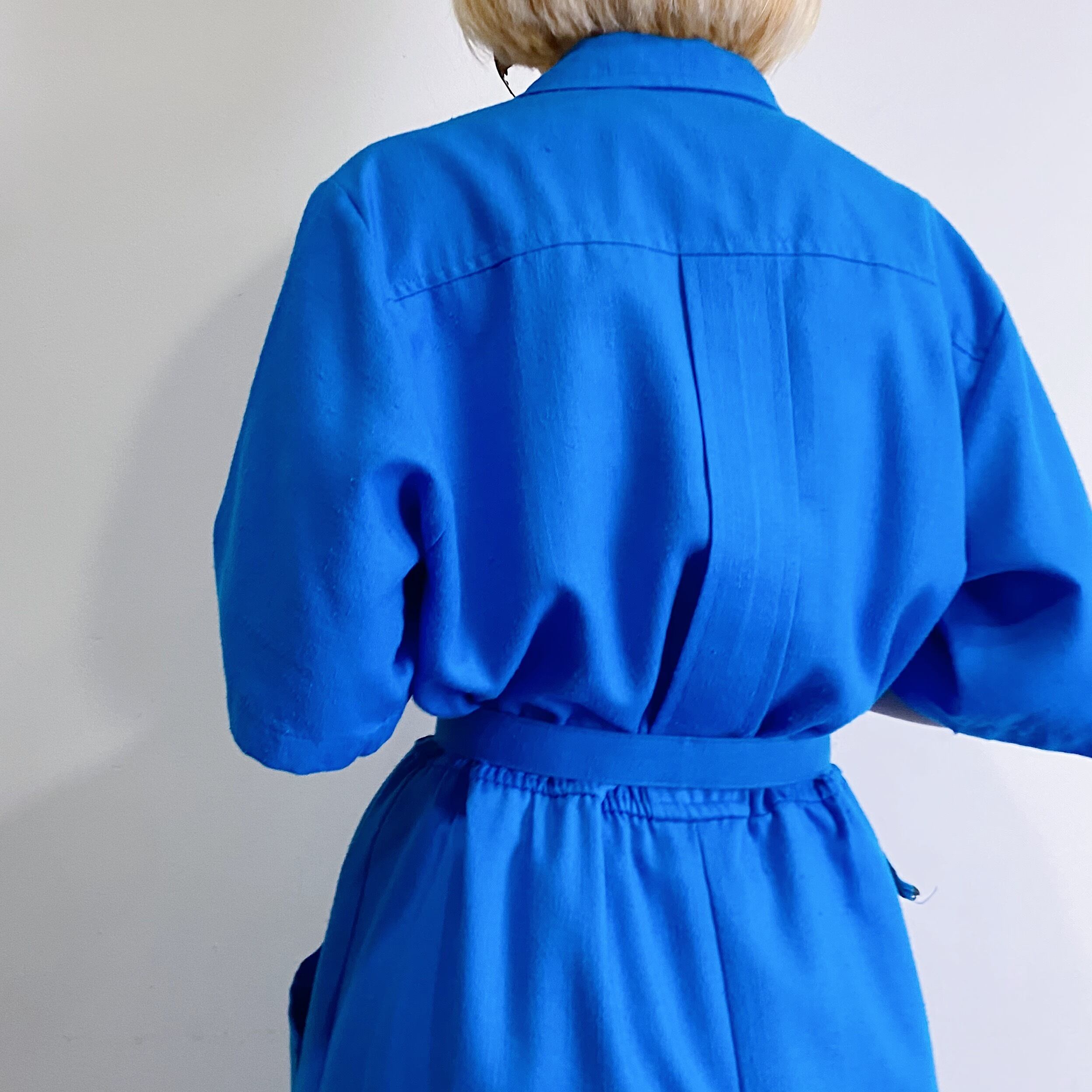 パッキリとしたブルーカラーが可愛い、80年代のシャツワンピースです。