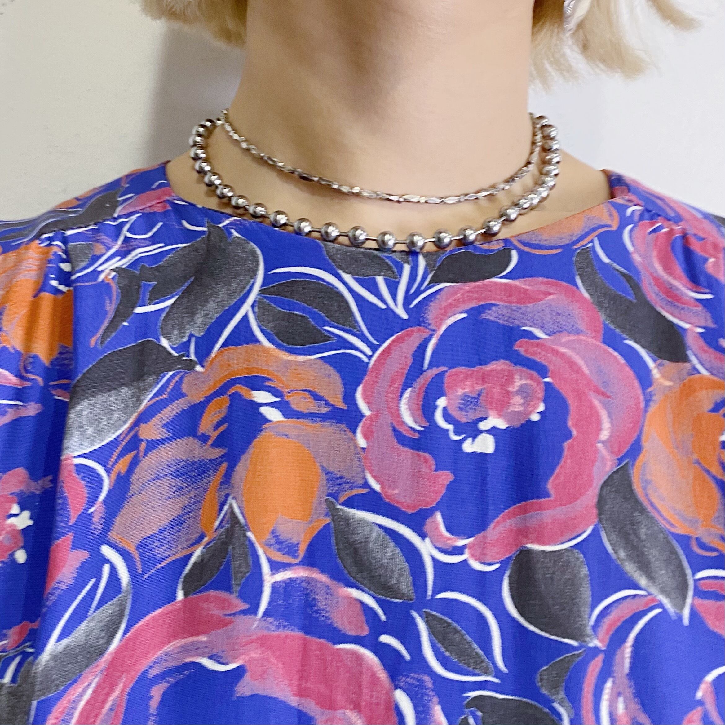 絵画タッチの花柄が可愛い、パープルベースの80年代ワンピースです。