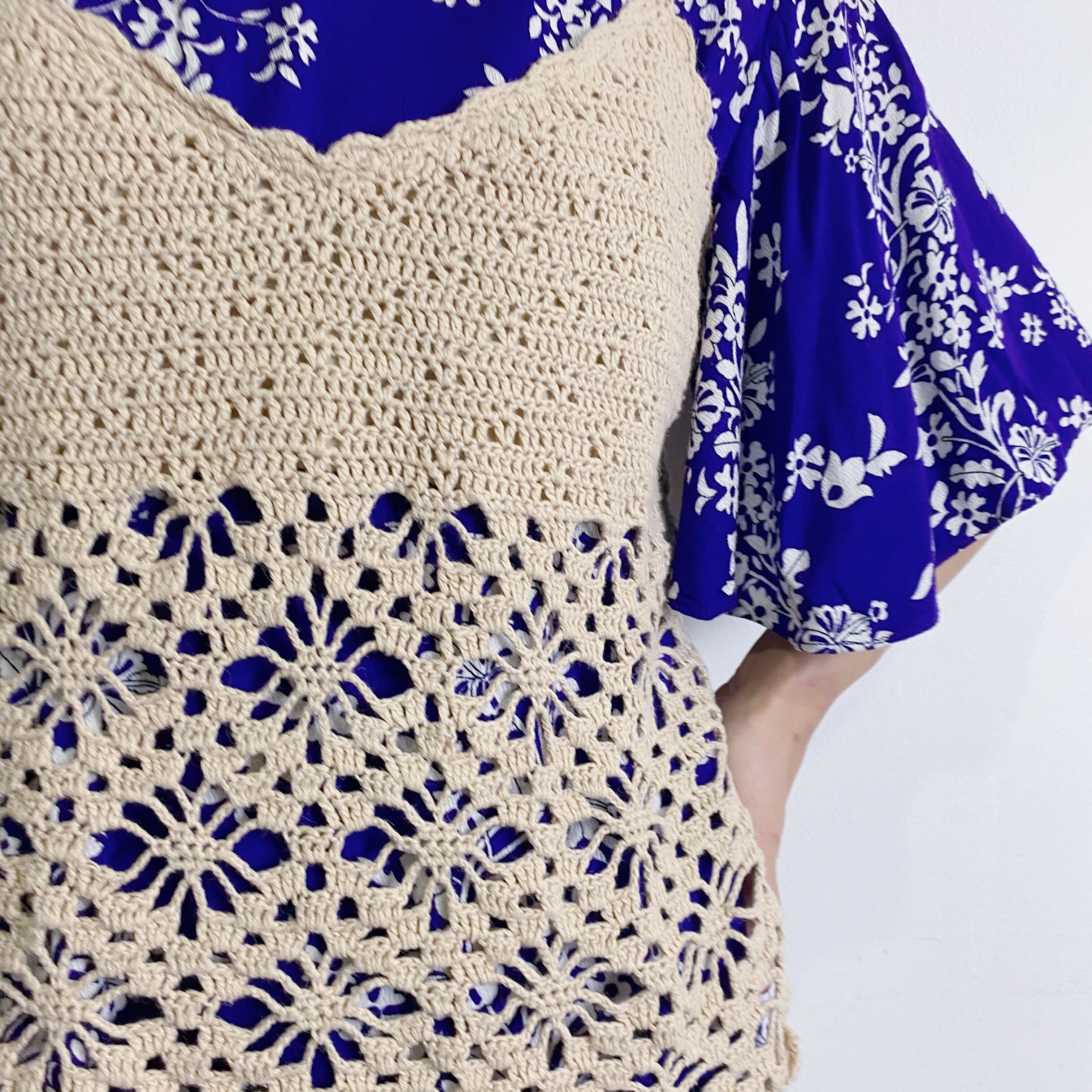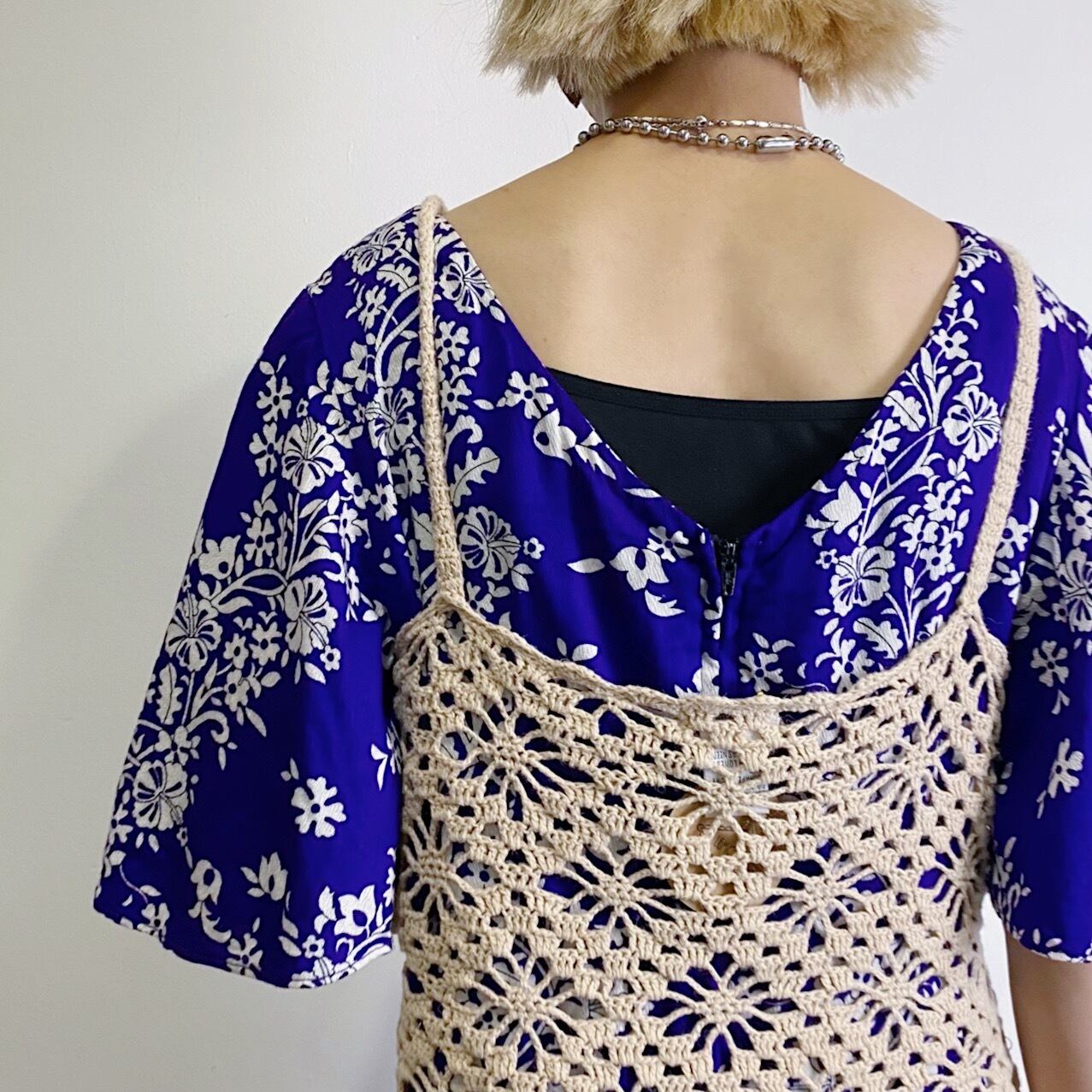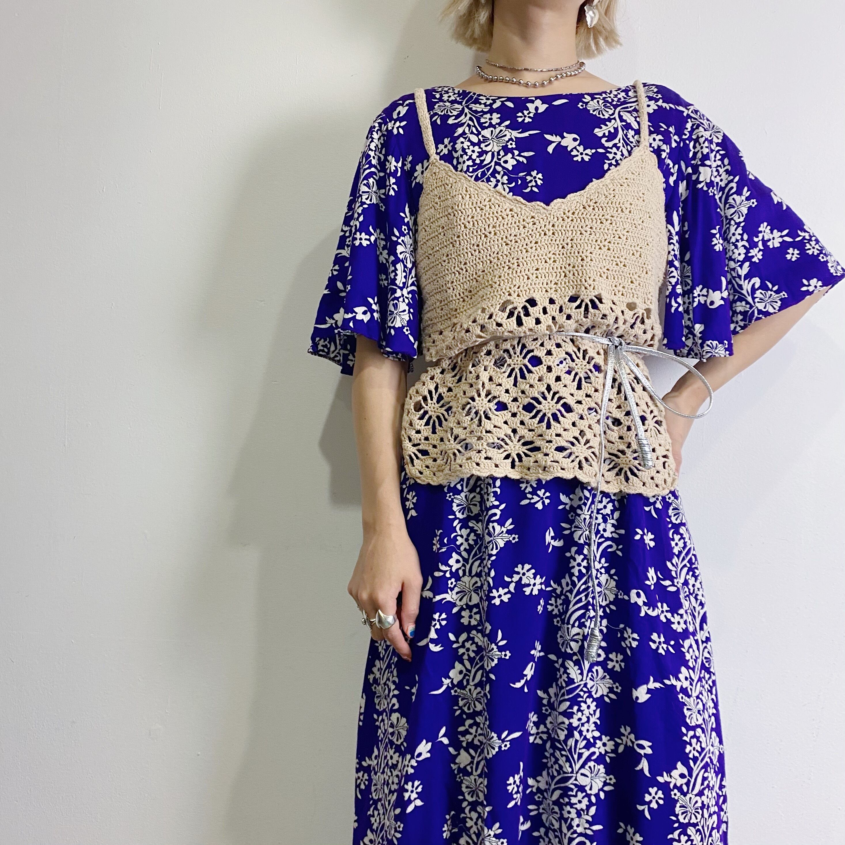 ベージュカラーで使い勝手が良さそうな、クロシェキャミです。