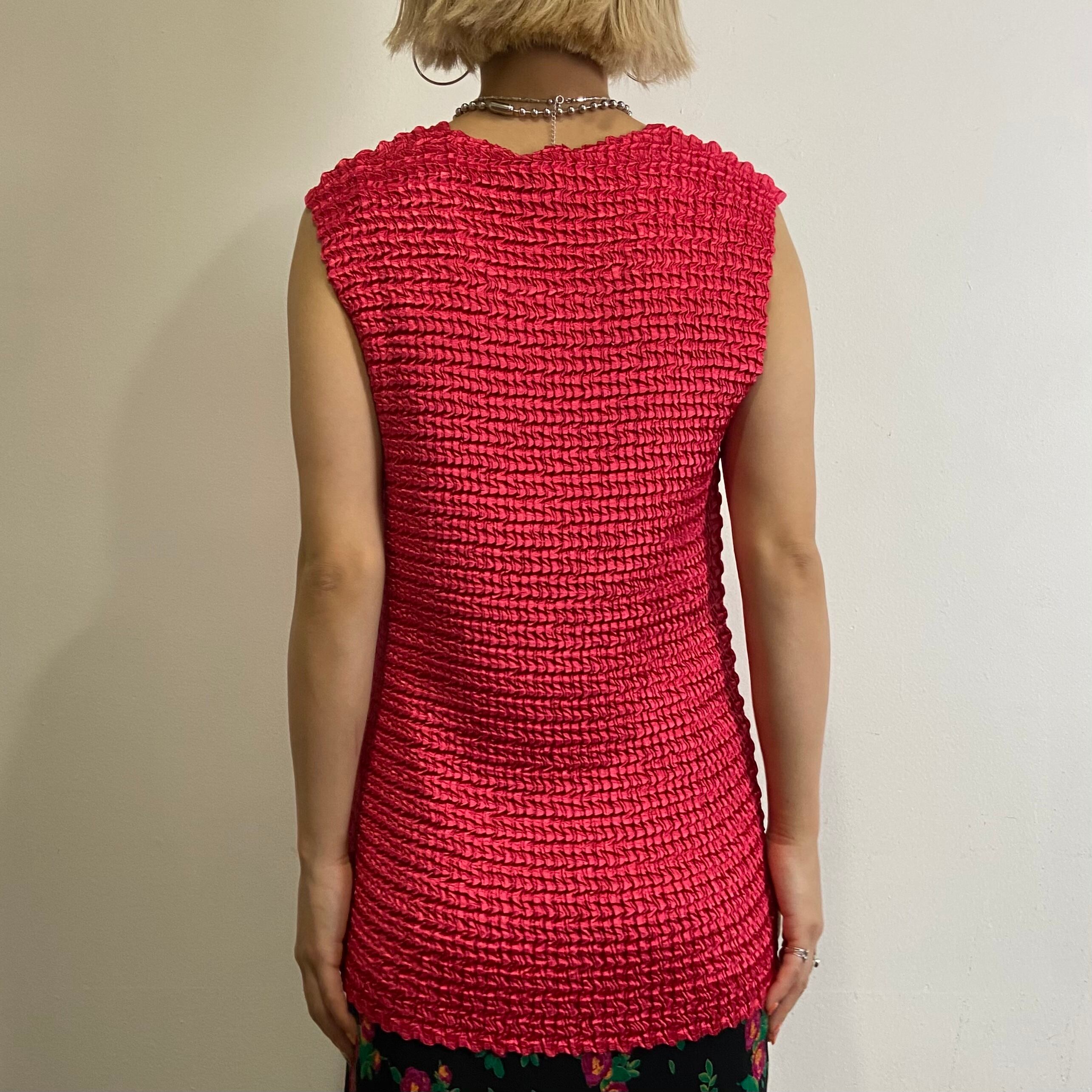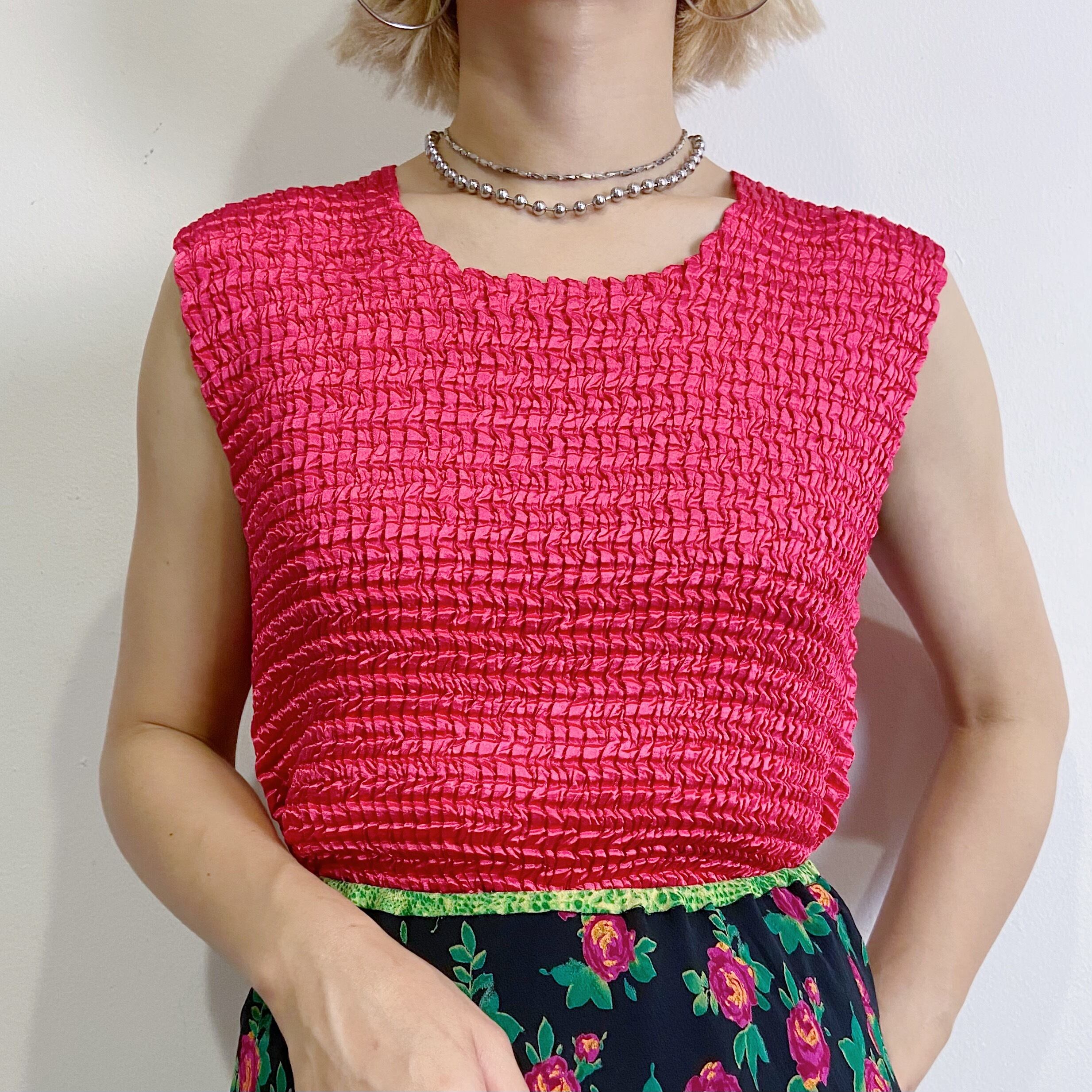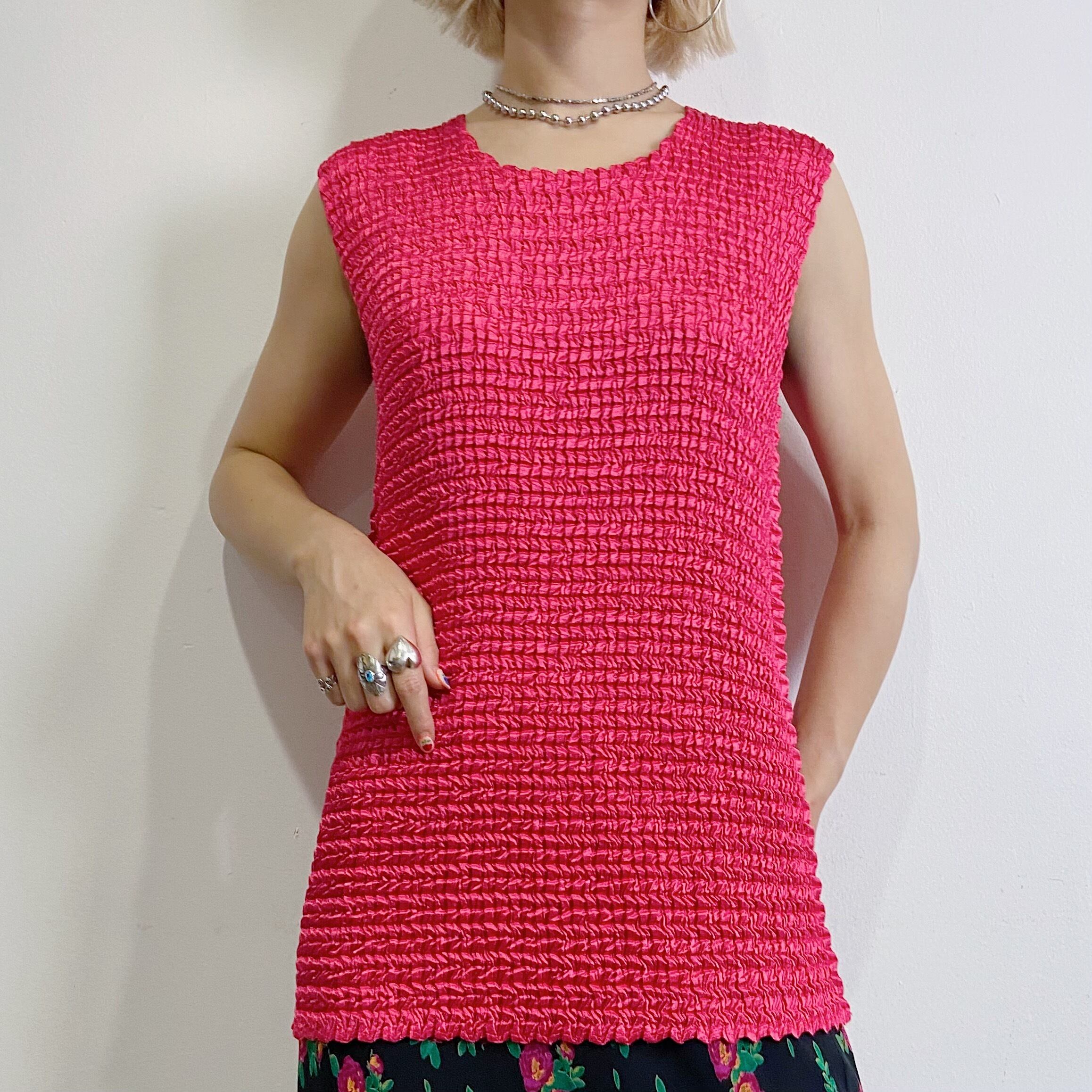 ぽこぽことした素材感が楽しい、フューシャピンクのノースリーブトップスです。