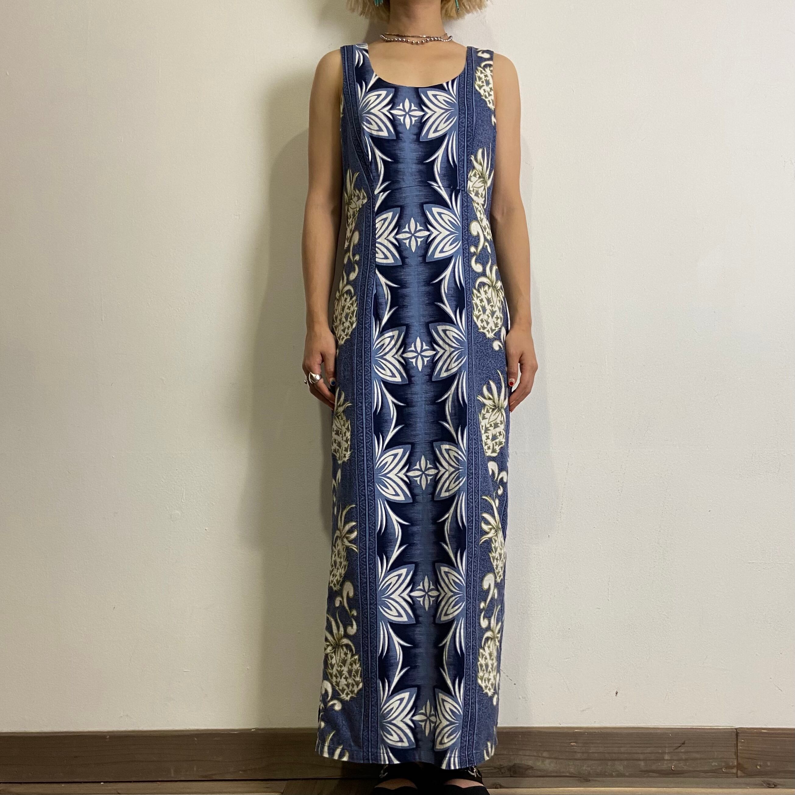 大振りな柄が可愛い、ノースリーブのハワイアンワンピースです。