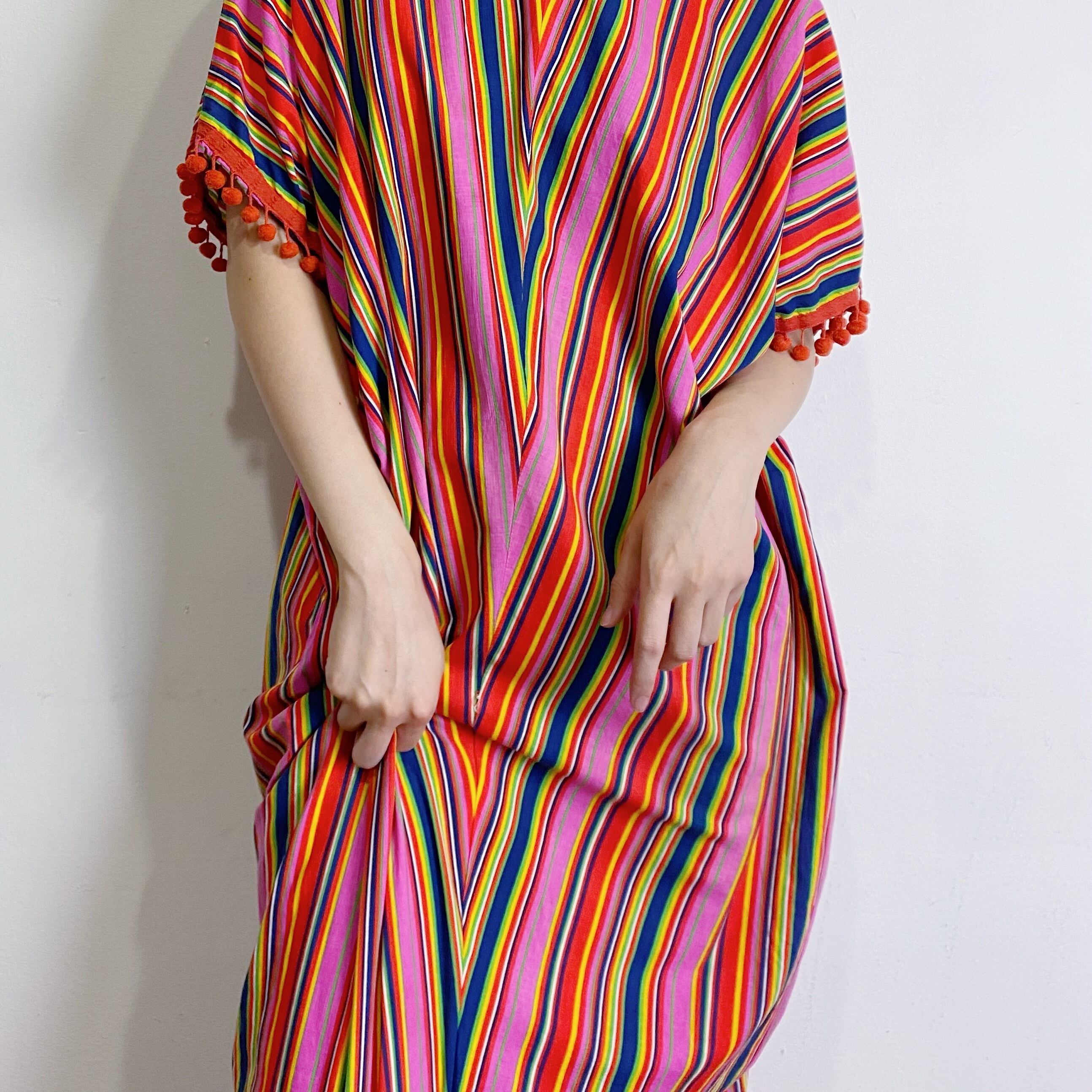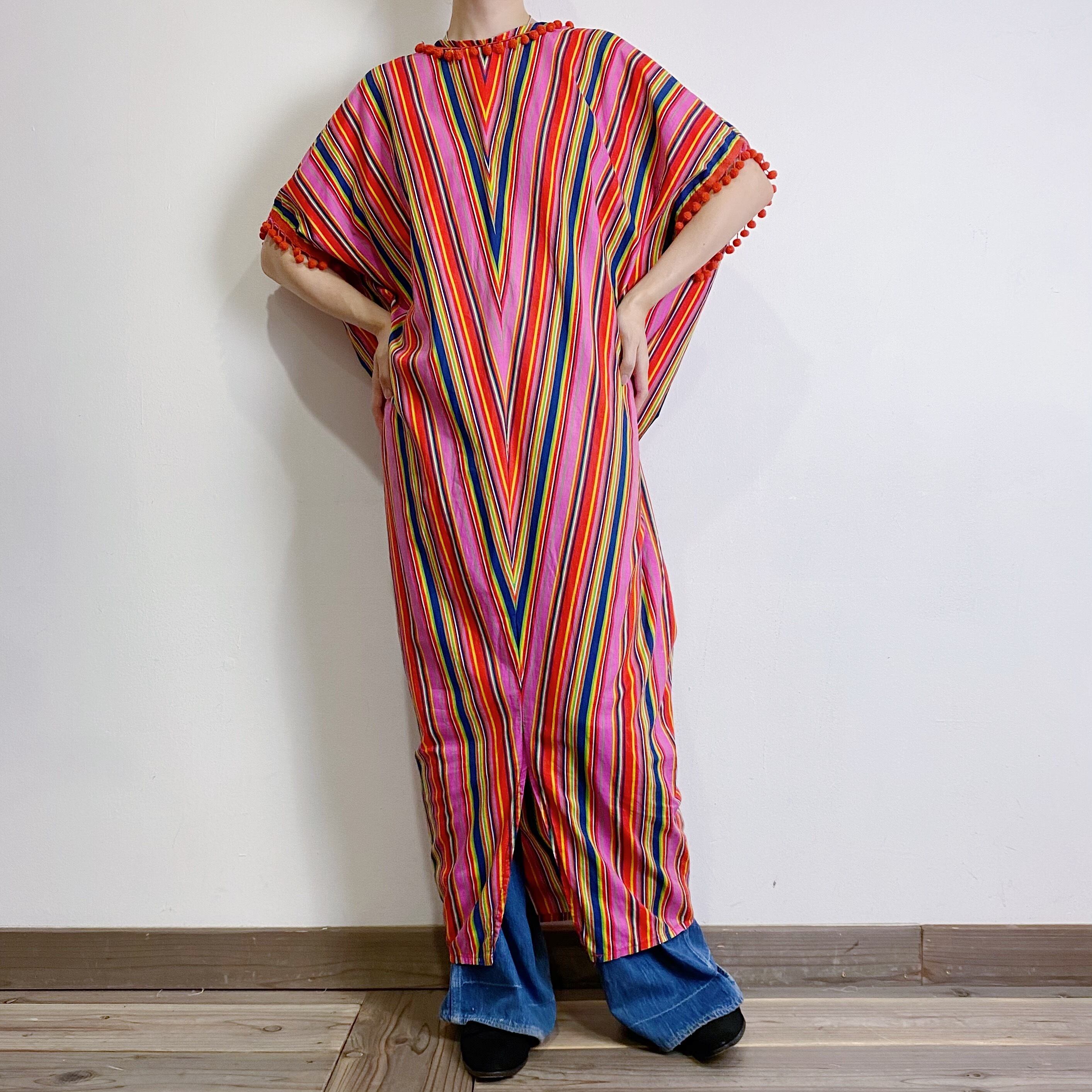 ユニークなシルエットが楽しい、60年代のストライプワンピースです。