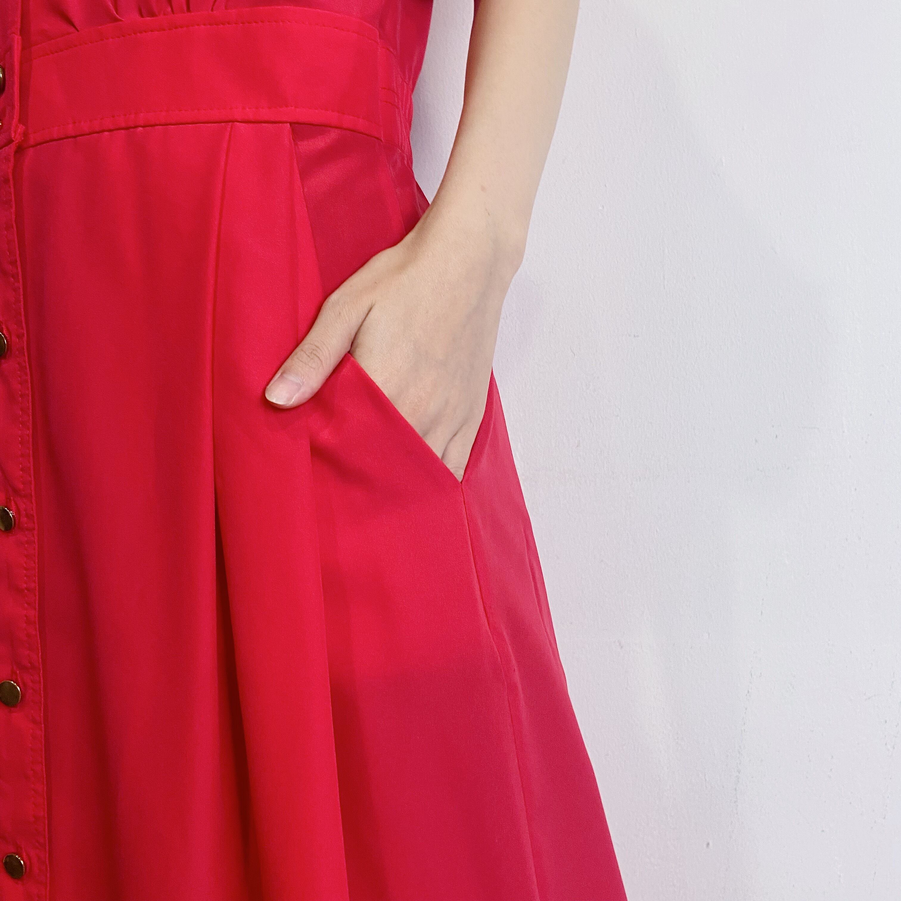 真っ赤な色合いが可愛い、80年代の半袖ワンピースです。