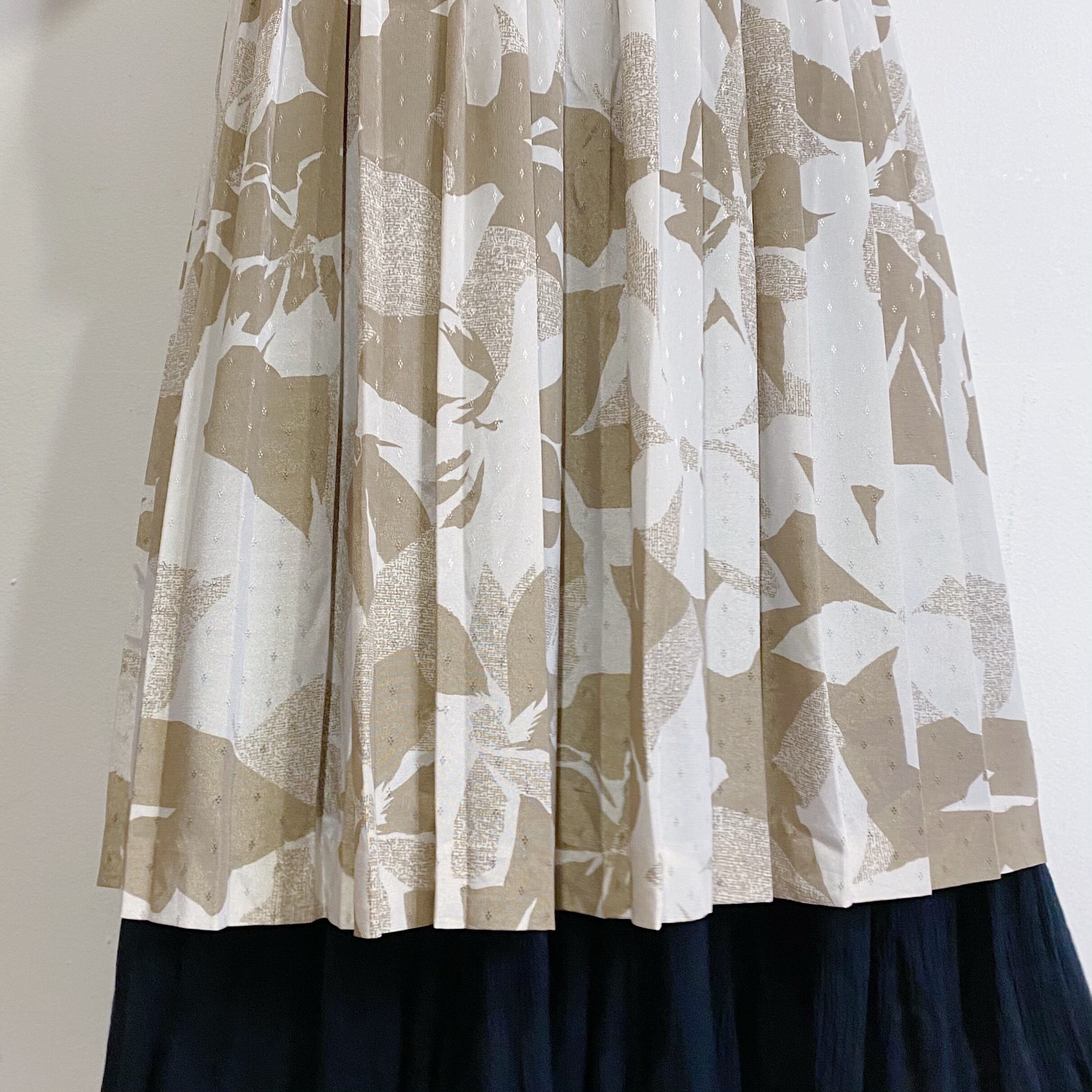 一見何柄か分からない抽象的な柄のようなのにじっくり見ると花柄、というところがユニークな一枚。